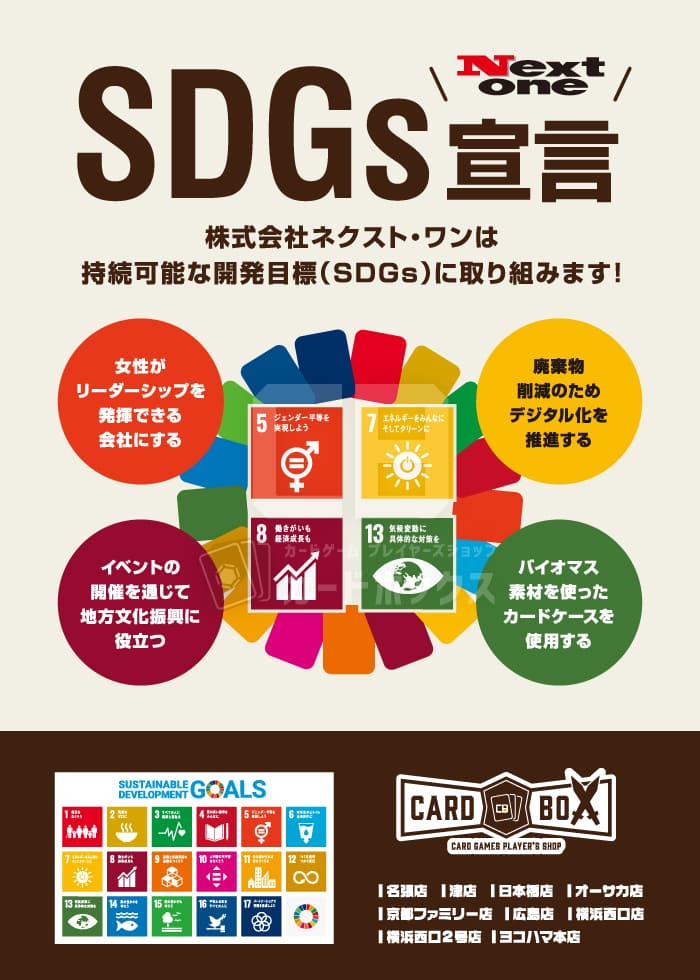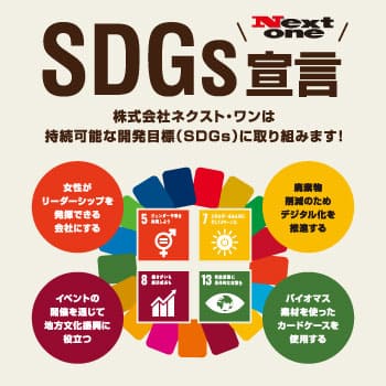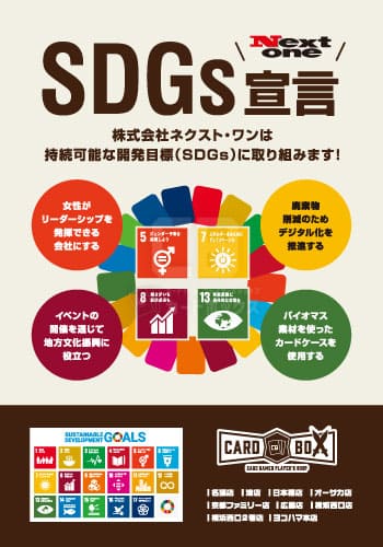 カードボックスの母体である㈱ネクスト・ワンは、持続可能な開発目標(SDGs)の達成に向けた取り組みを積極的に推進しています。