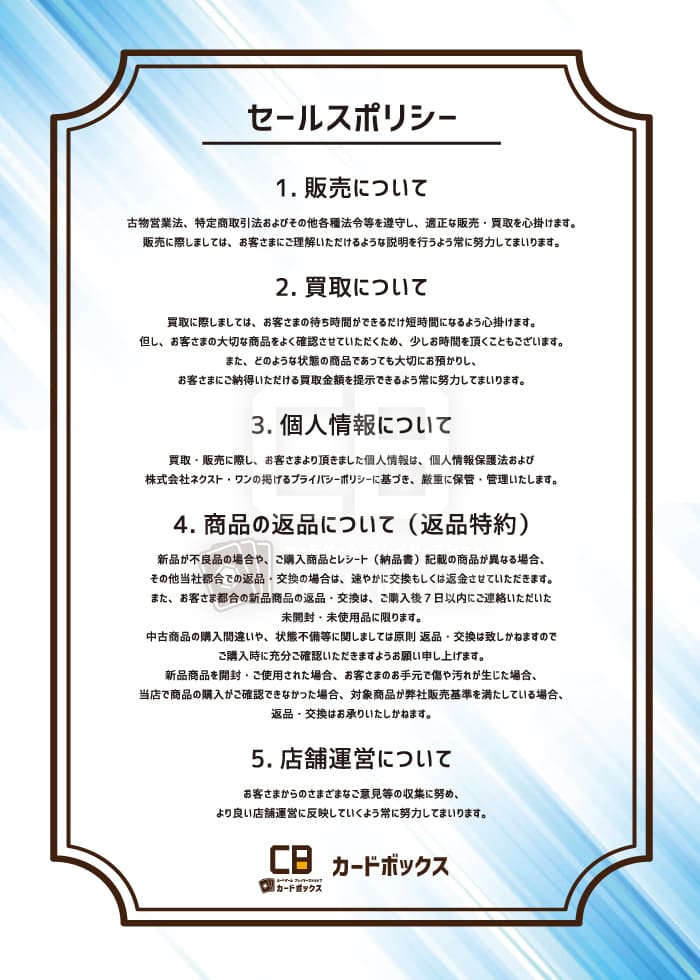 カードボックスでは以下のセールスポリシーに則り店舗運営を行っています。