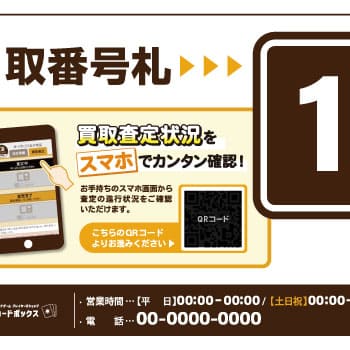 スタッフが「買取番号札」をお渡しします、準備ができたら番号札のナンバーが呼び出しモニターに表示されます。