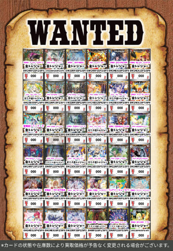 取扱タイトルのシングルカード、また一部店舗ではスリーブや未開封パックの買取が可能です。