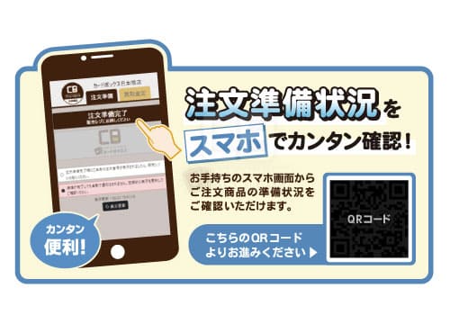 店頭でご案内している専用QRコードを読み込むと、お手持ちのスマホ画面でも進捗状況を確認することができます。