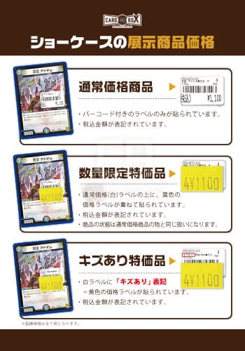 ラベル別展示商品価格「通常」「数量限定」「キズあり」