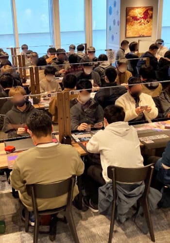 土日祝は主に日中、平日は17時以降の時間帯にも開催しているため、お子様や学生さんの他仕事終わりの社会人の方まで幅広く楽しんで頂いています。内容も遊戯王やポケモン、ワンピース等の人気作品を筆頭に、さまざまなタイトルのイベントを展開中。各種上位賞・参加賞もあり、対戦により熱が入ります。