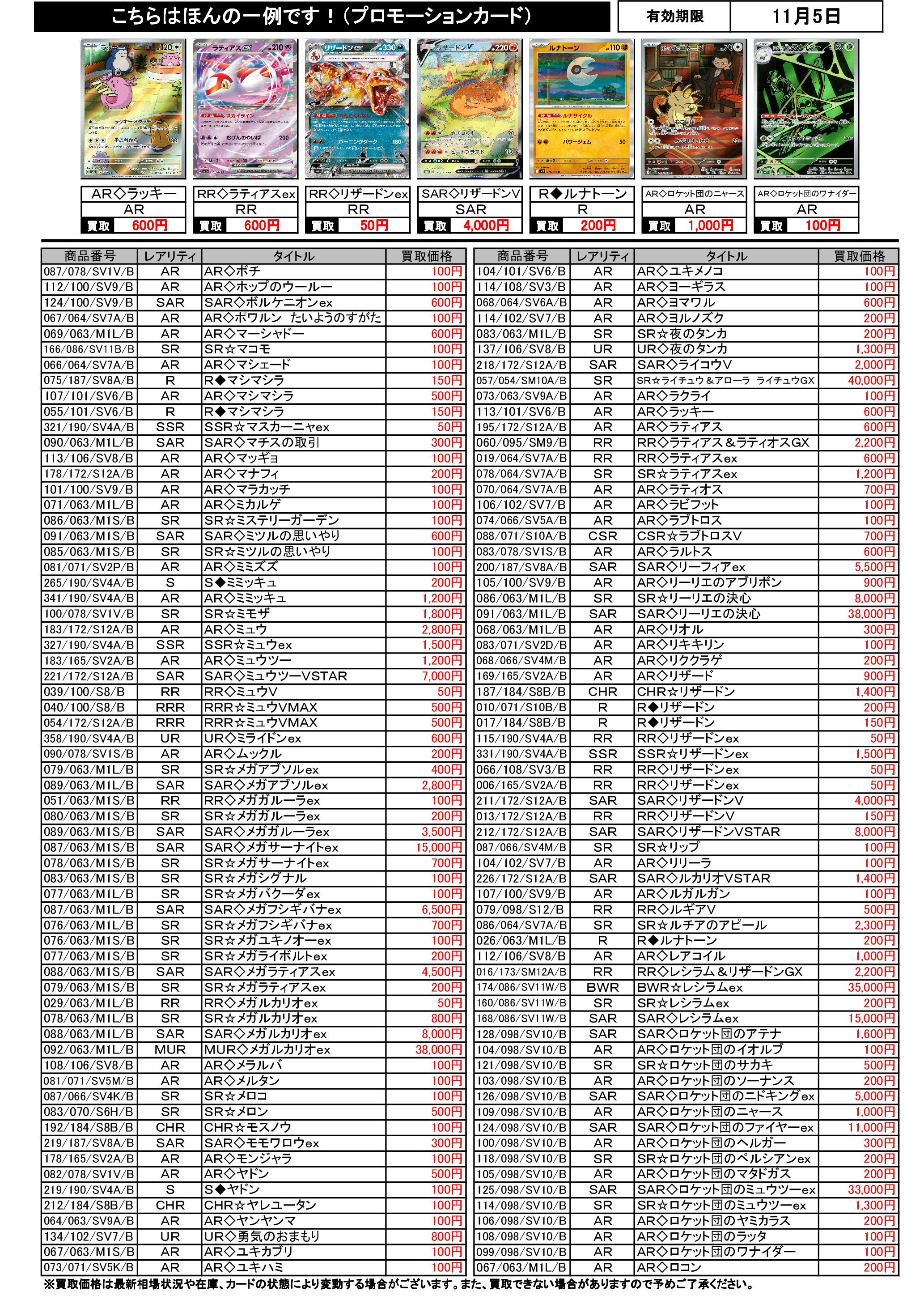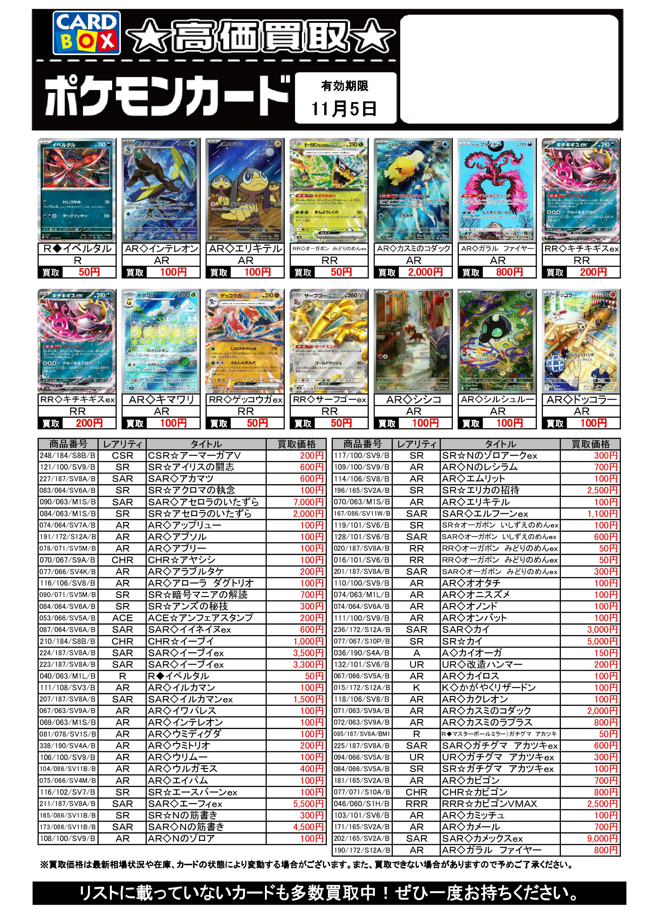 買取価格は最新相場状況や在庫、カードの状態により変動する場合がございます。また、買取できない場合がありますので予めご了承ください。