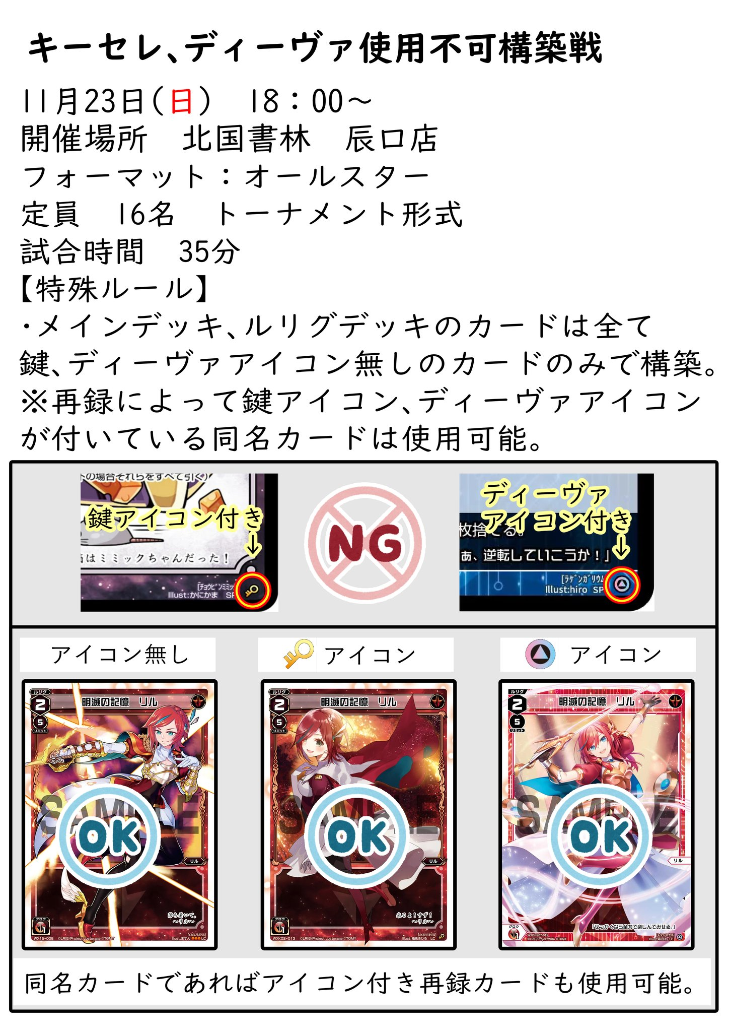 11/23(日)開催 WIXOSSユーザーコミニティ白窓の部屋イベント「キーセレ、ディーヴァ使用不可構築戦」