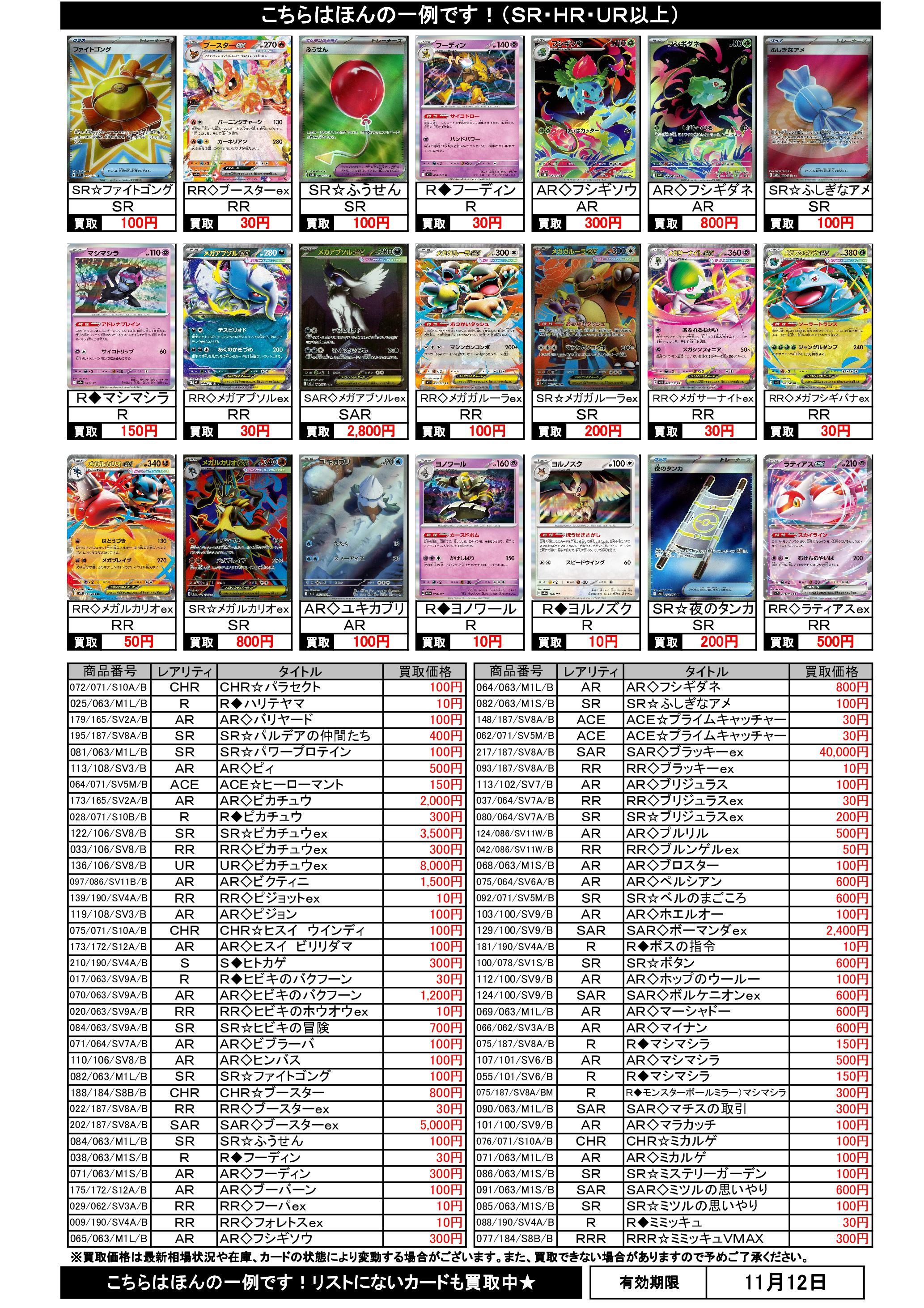 ※こちらの買取表は買取価格を保証するものではありません。カードの在庫枚数や状態によって価格が変動する場合がございます。また、表に掲載の30,000円を超えるカードにつきましては買取しておりません。