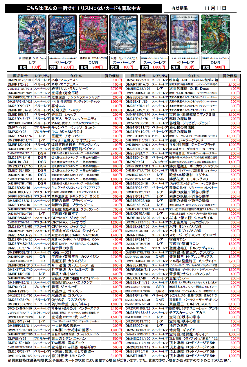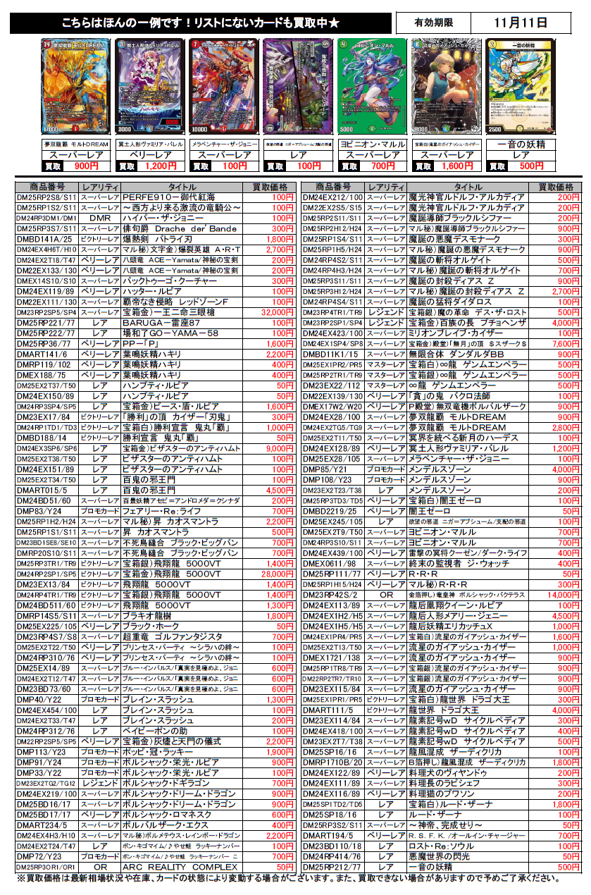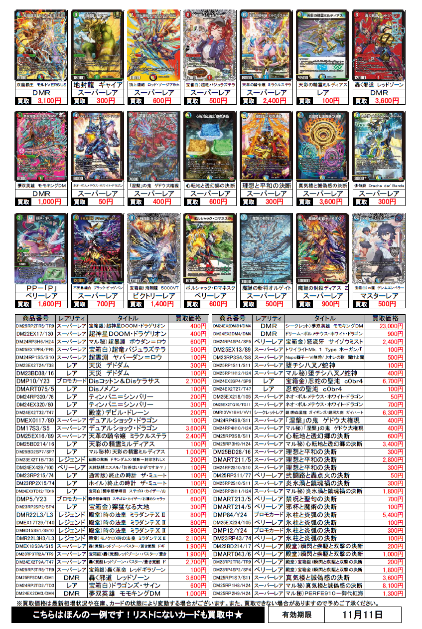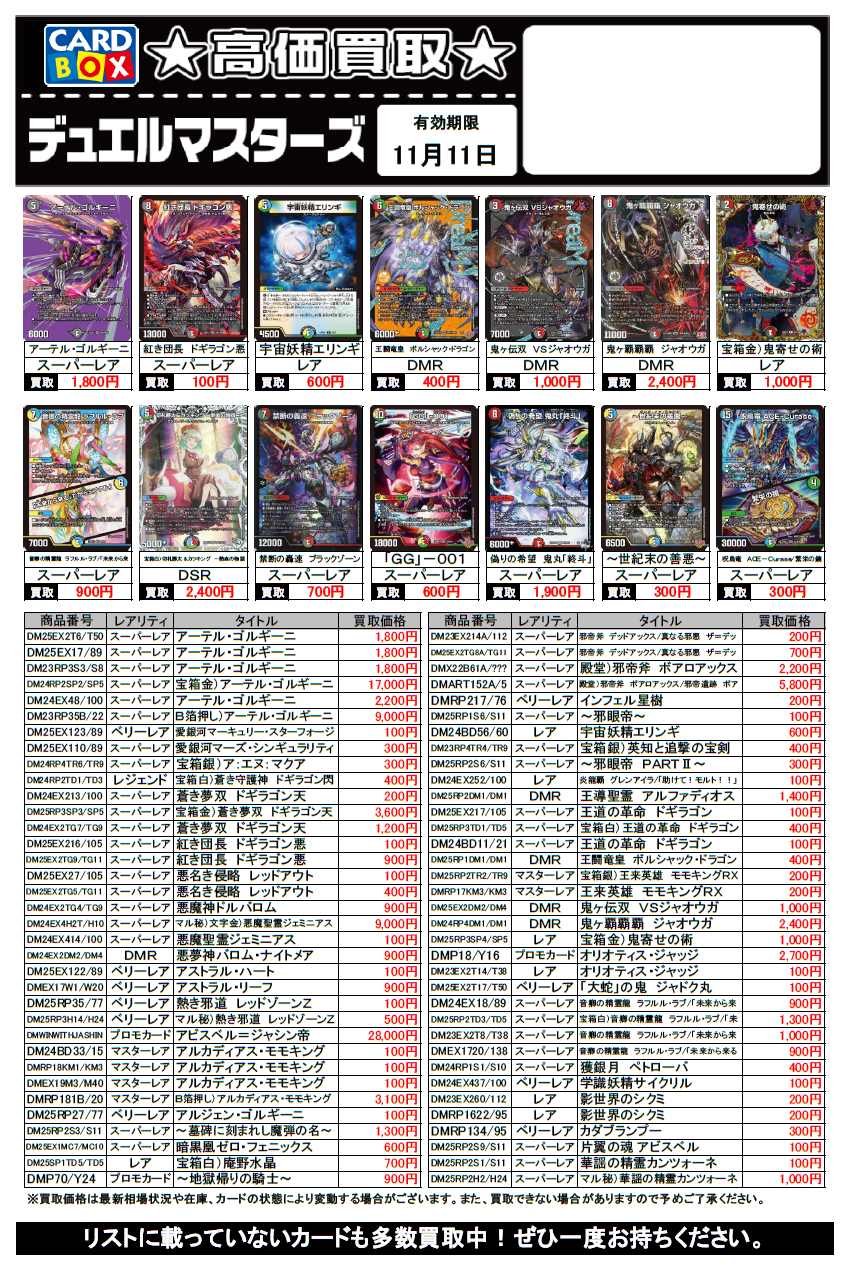 デュエルマスターズ買取チラシ更新(11/11まで)