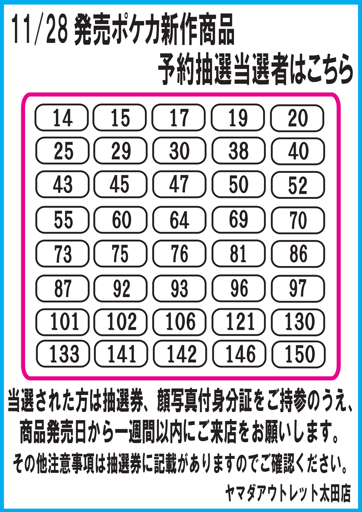 先日店頭にて行いました11/28発売のポケモンカードゲーム新品商品の予約抽選について、
