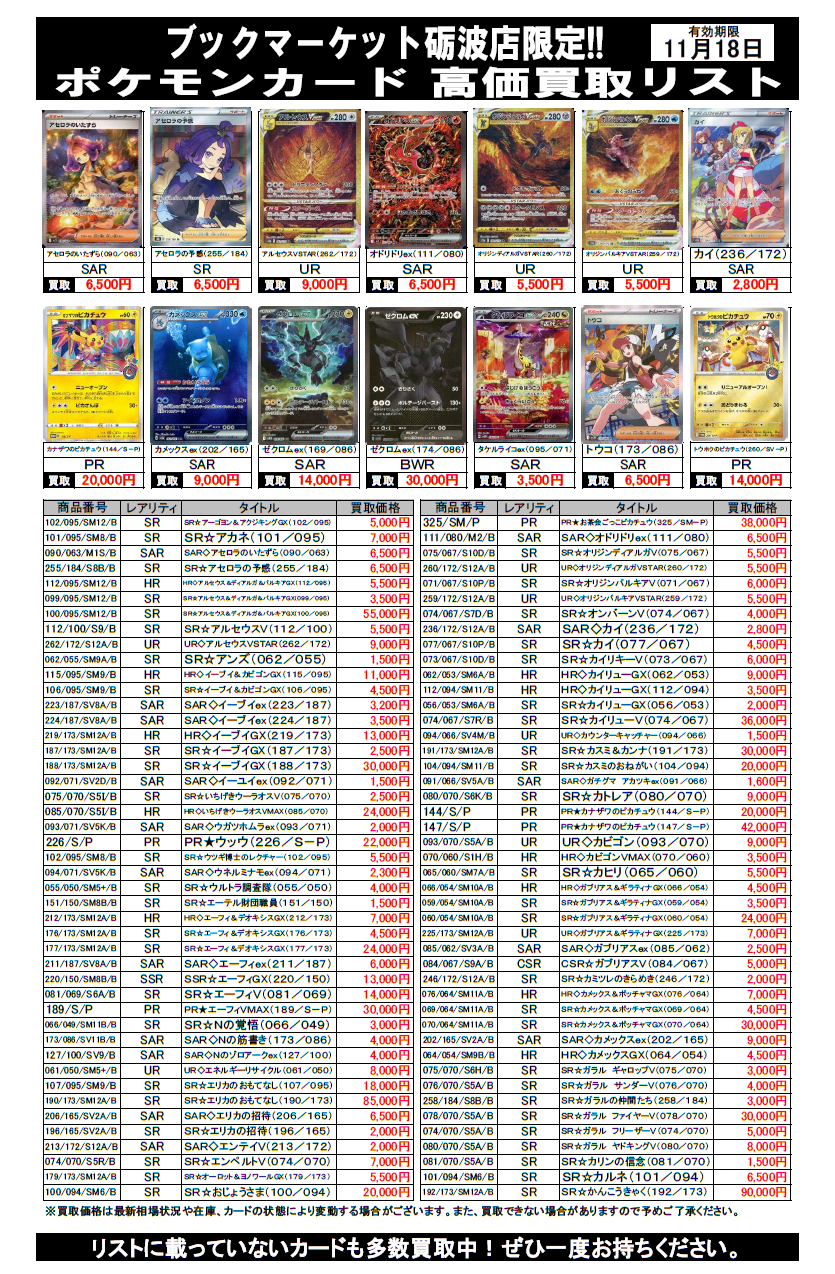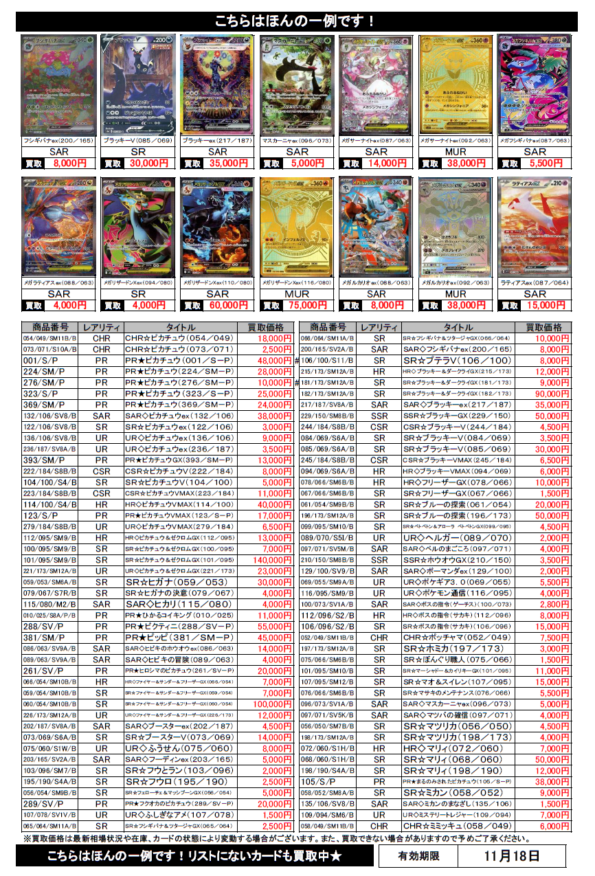 ポケモンカード買取チラシ更新&買取保証キャンペーン中!!(11/18まで)