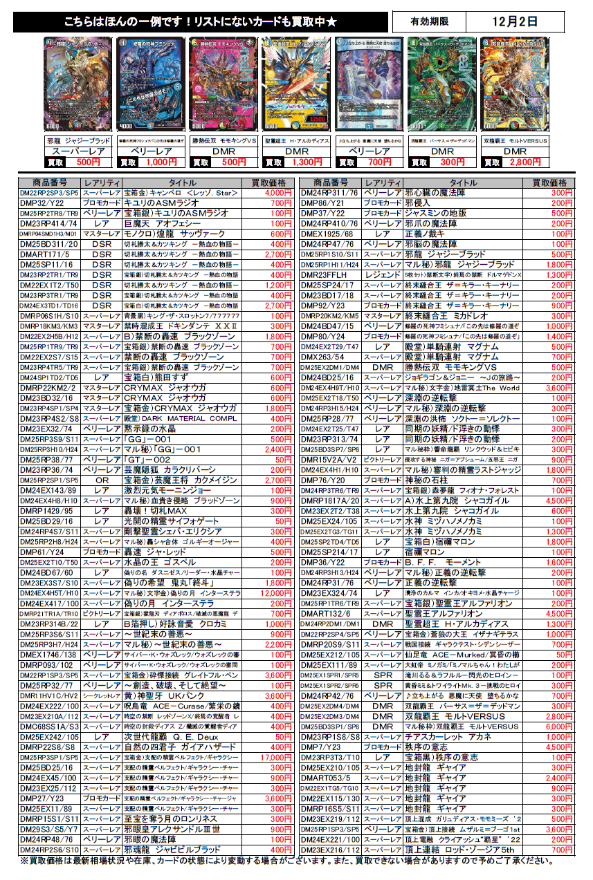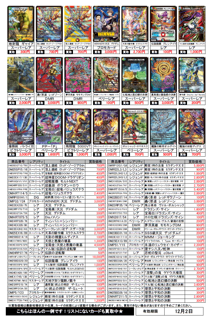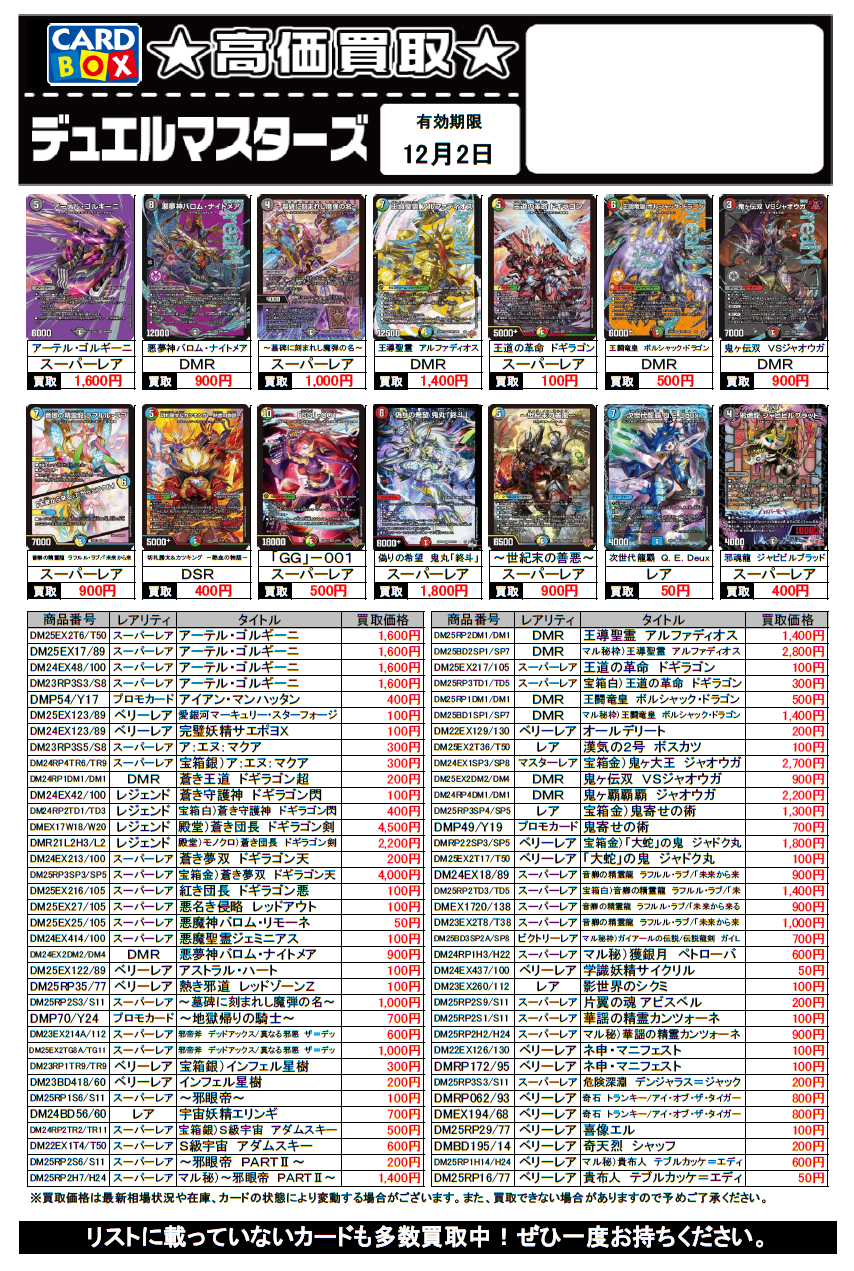 デュエルマスターズ買取チラシ更新(12/2まで)