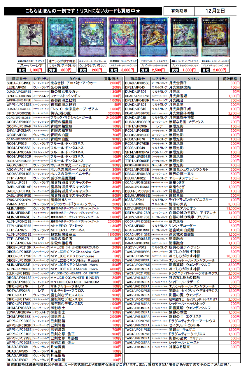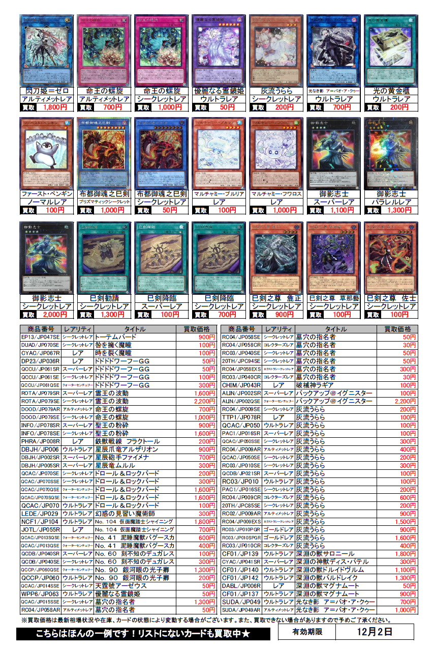 ※※買取価格は最新相場状況や在庫、カードの状態により変動する場合がございます。