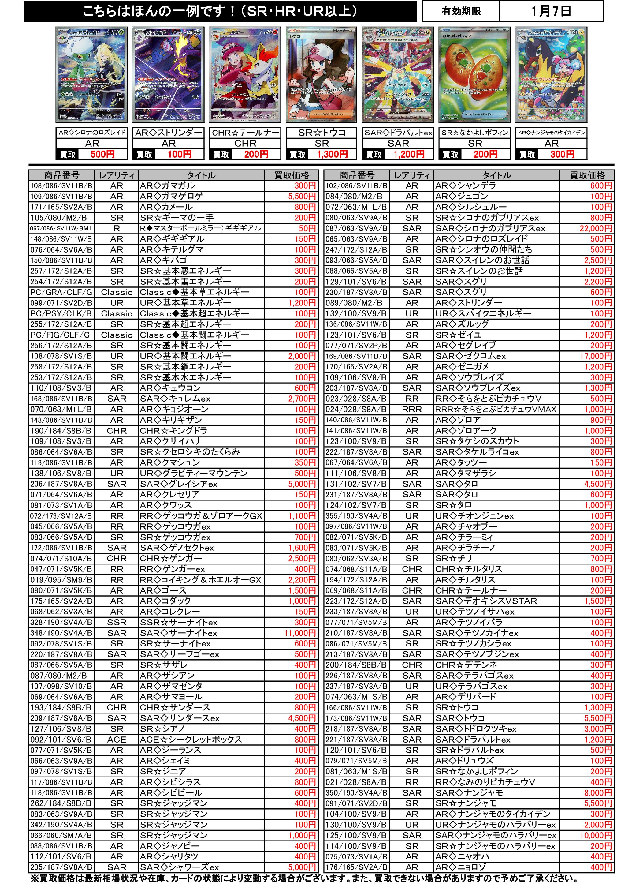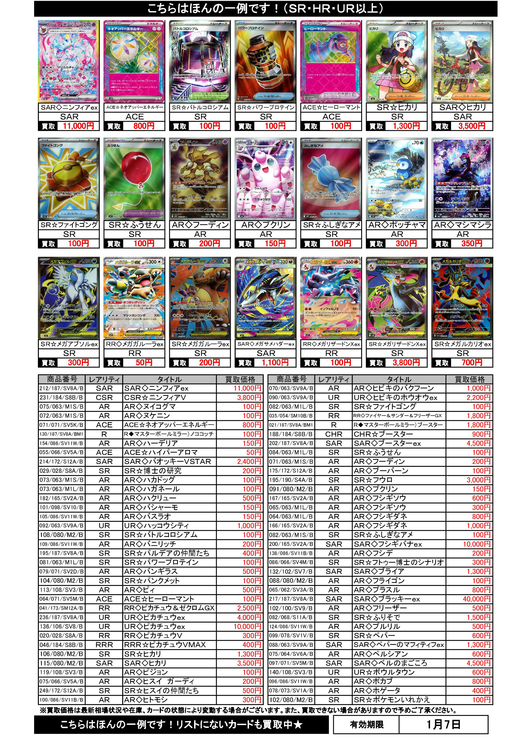 ※こちらの買取表は買取価格を保証するものではありません。カードの在庫枚数や状態によって価格が変動する場合がございます。また、表に掲載の30,000円を超えるカードにつきましては買取しておりません。