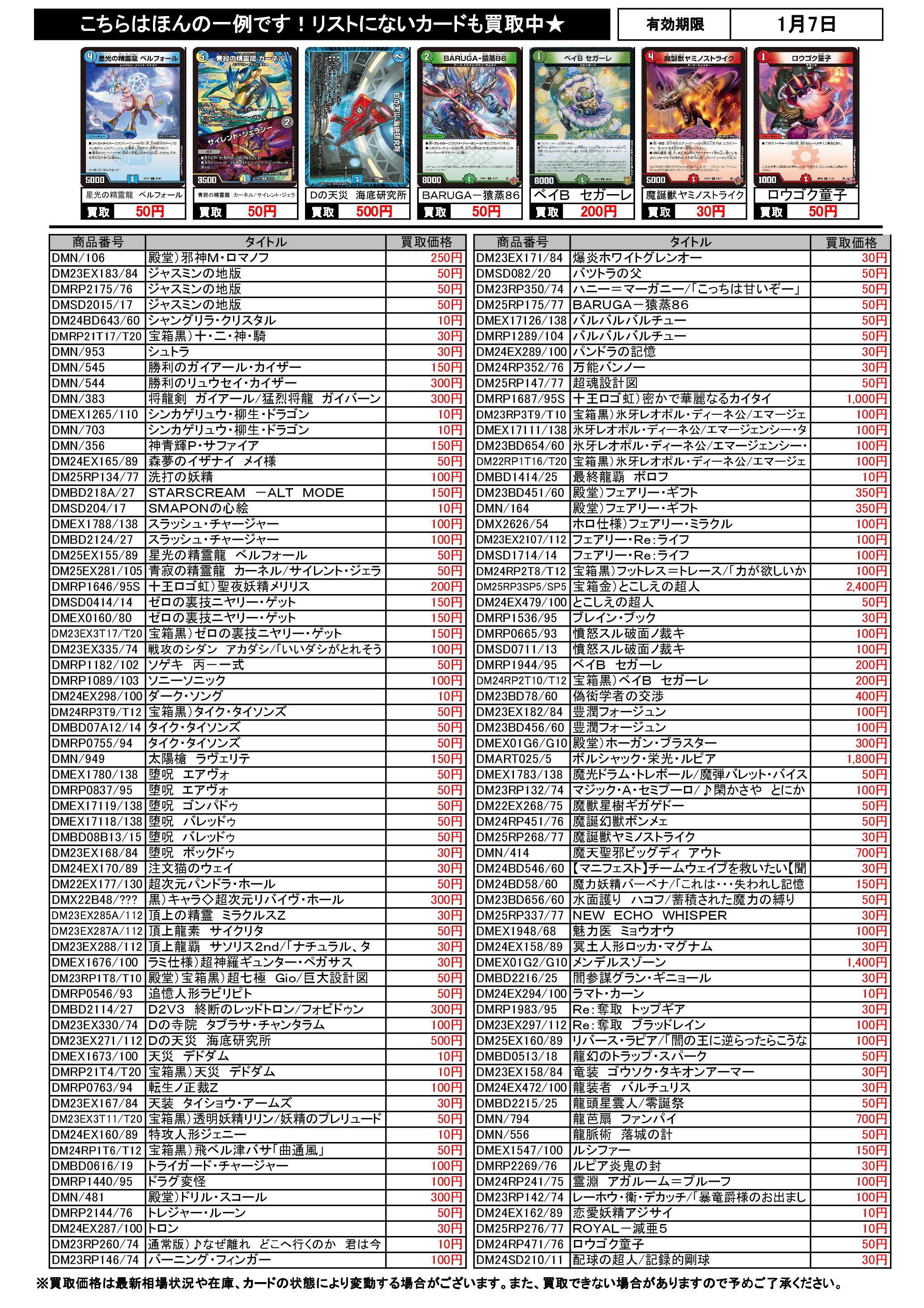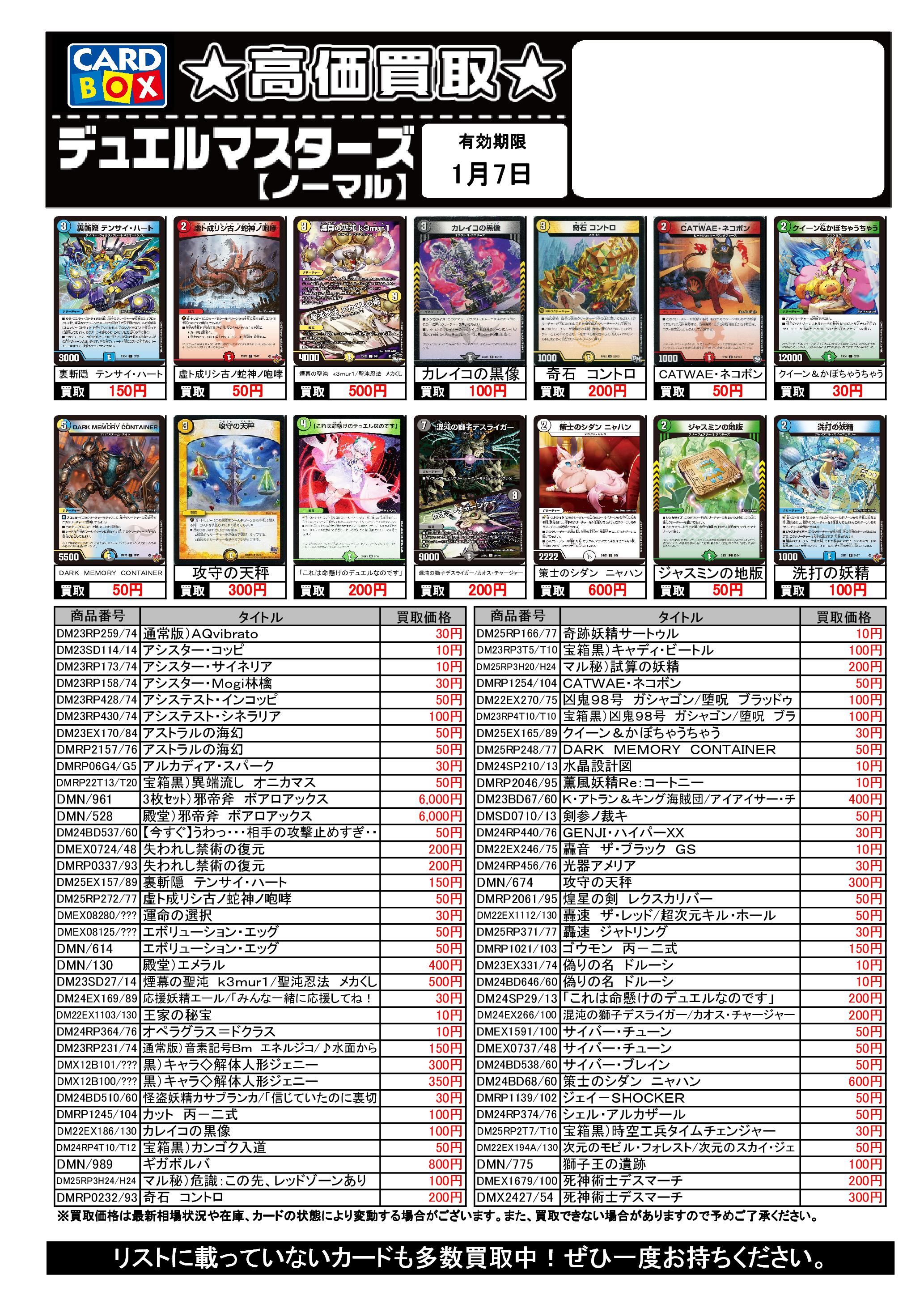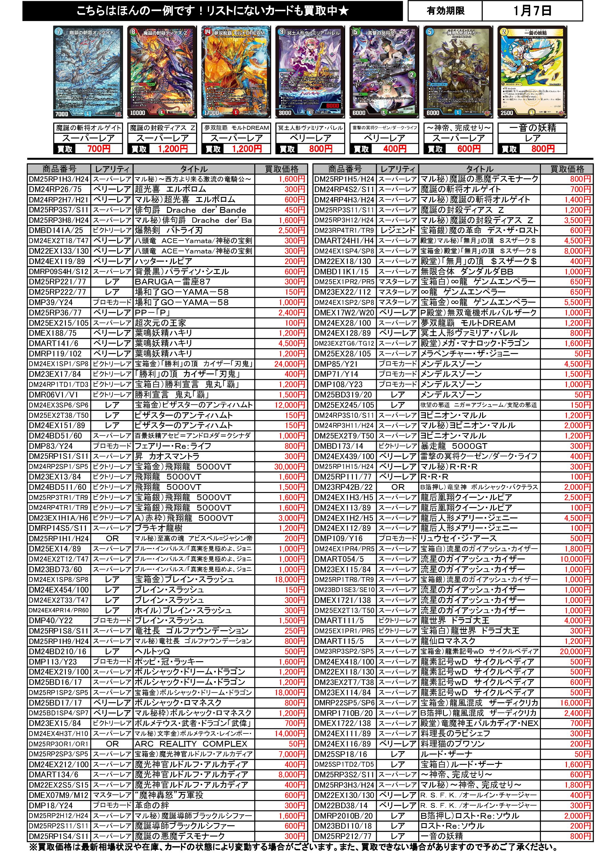 ※こちらの買取表は買取価格を保証するものではありません。カードの在庫枚数や状態によって価格が変動する場合がございます。また、表に掲載の30,000円を超えるカードにつきましては買取しておりません。