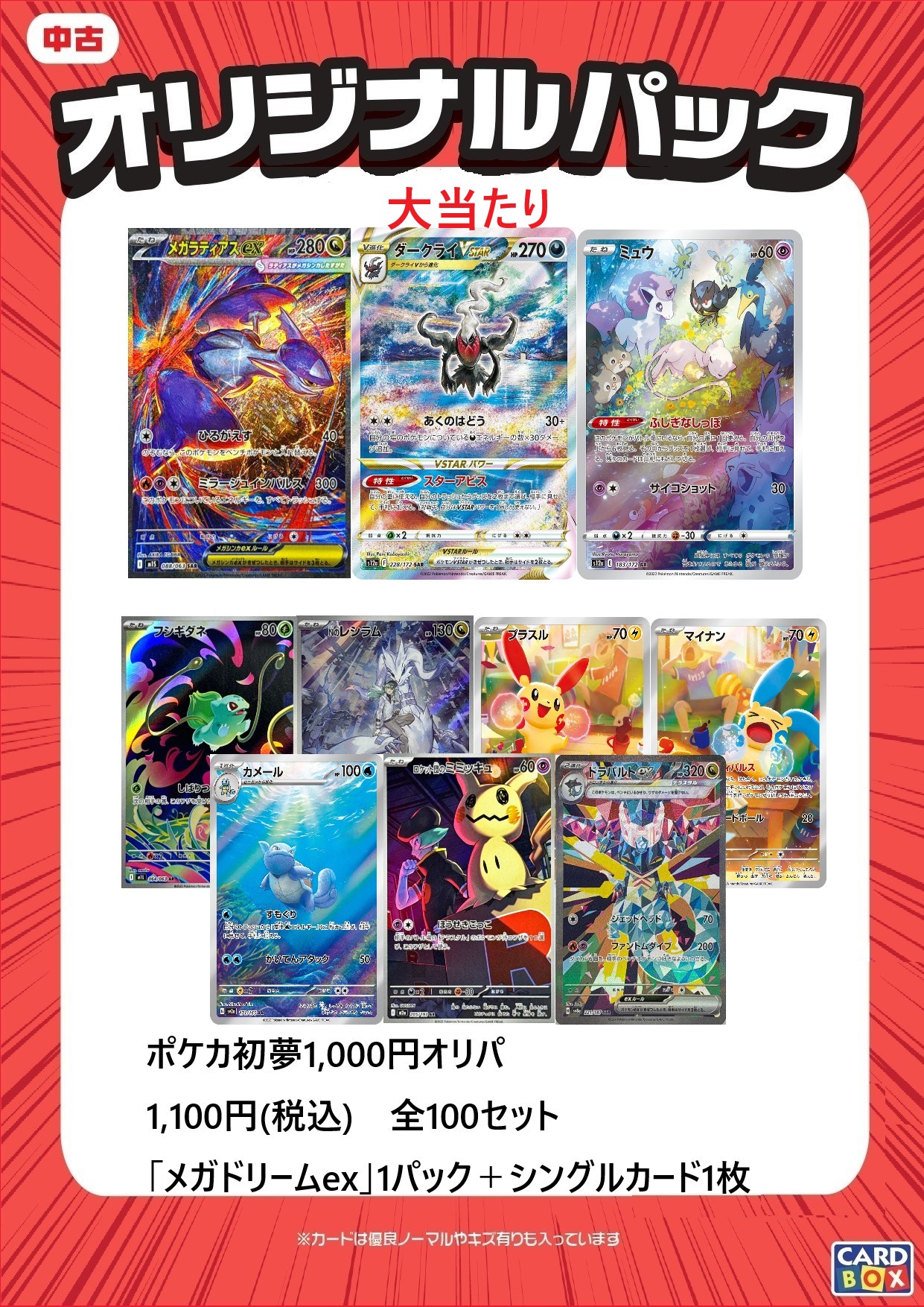 1,100円(税込) 全100セット 「メガドリームex」1パック + シングルカード1枚