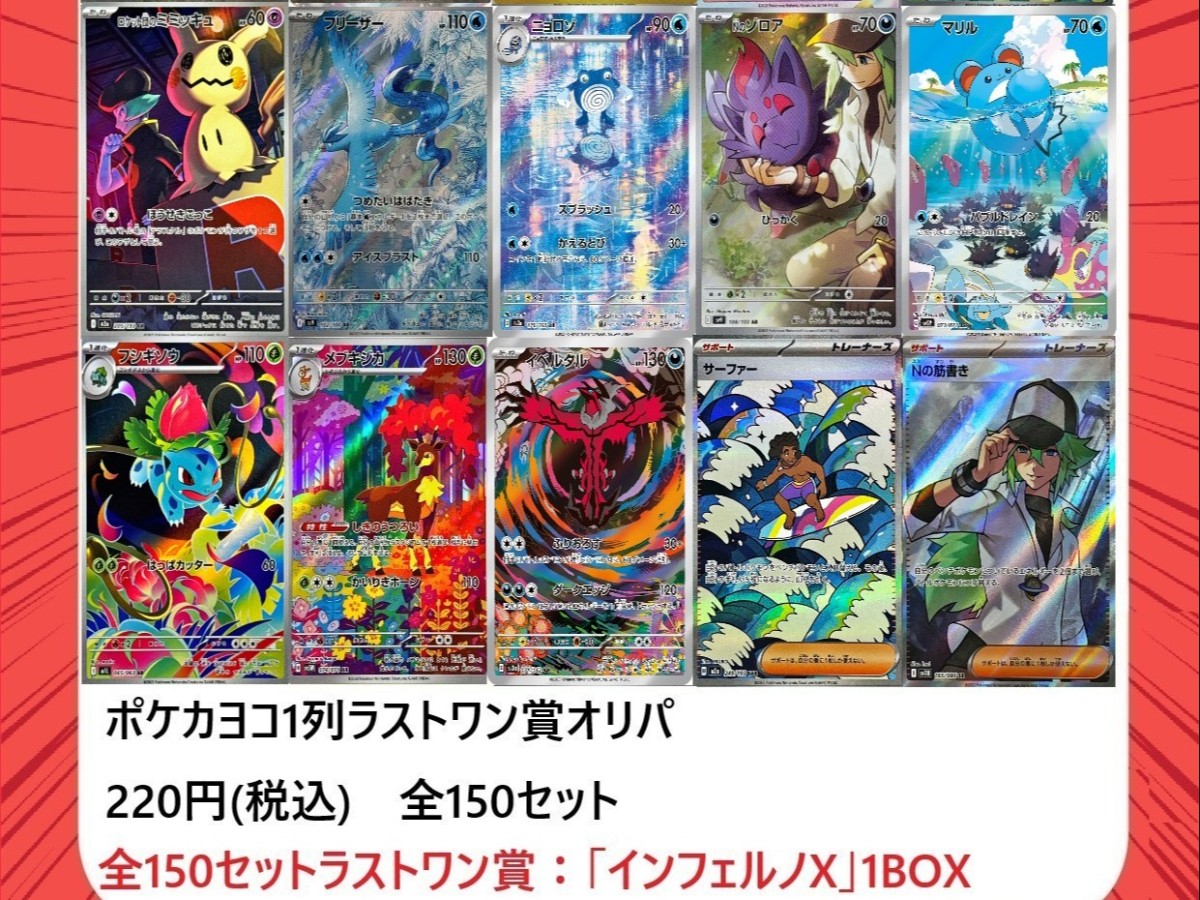 長らく完売しておりましたポケカのヨコ1列ごとにラストワン賞のあるオリパを補充しました!
