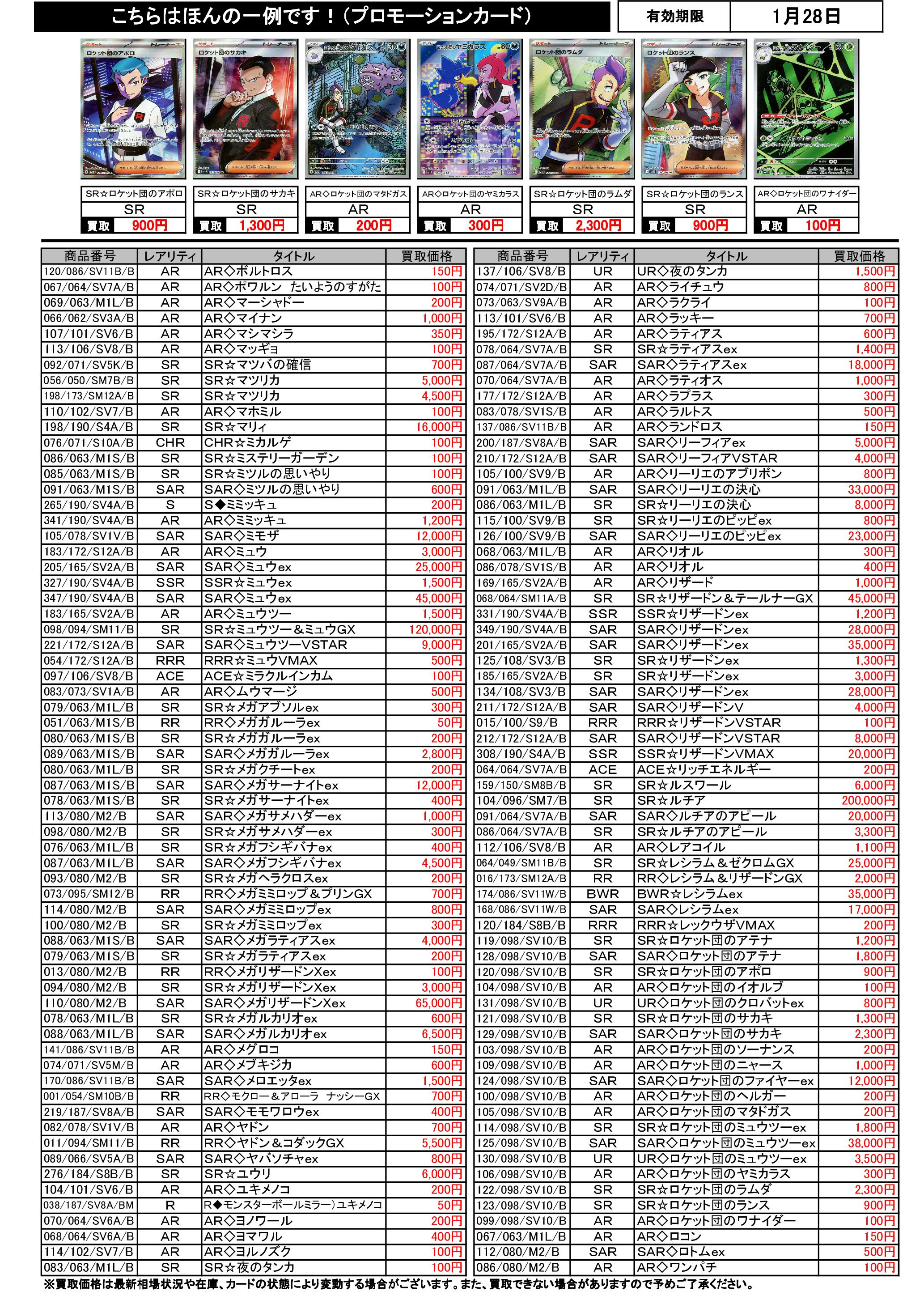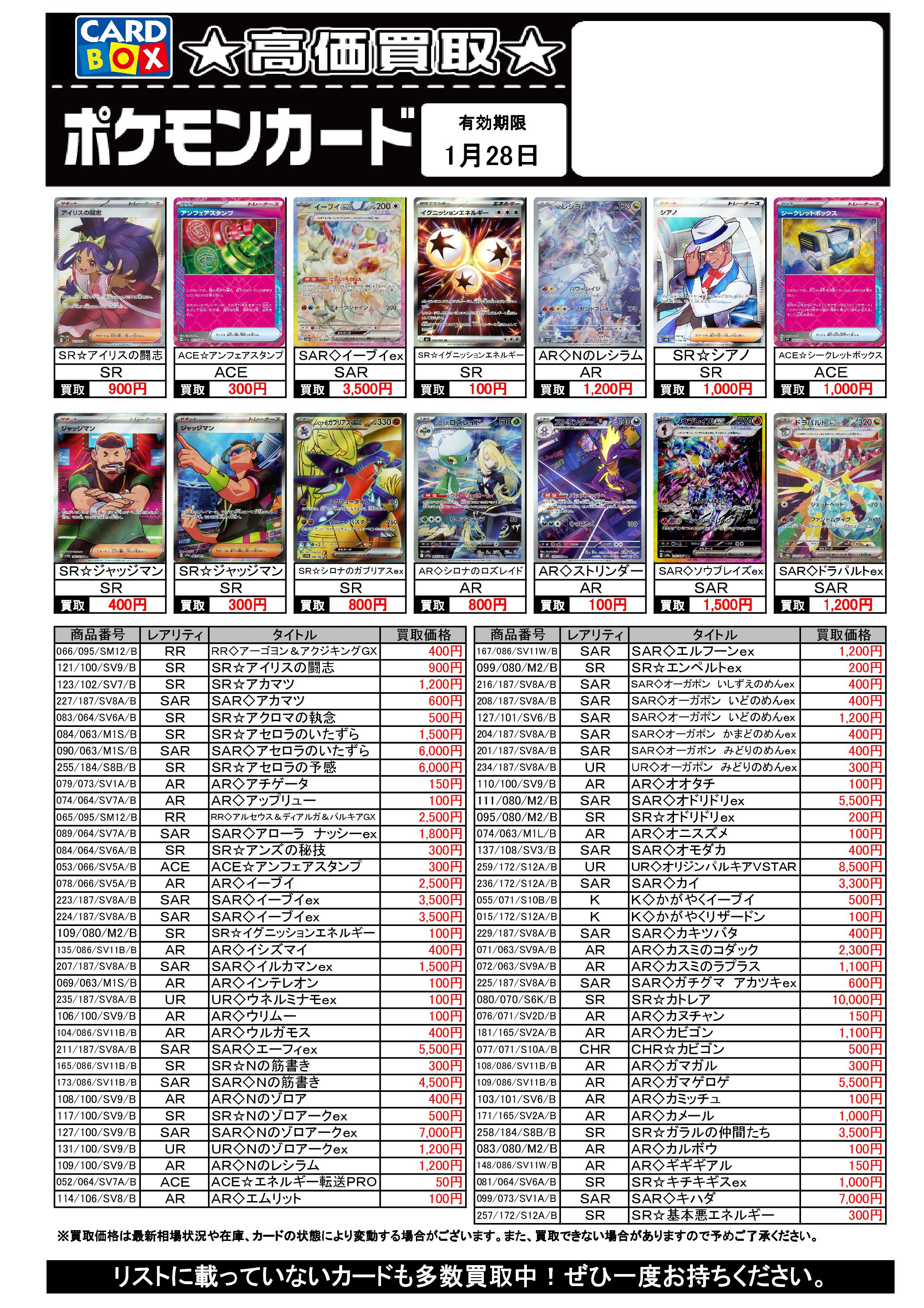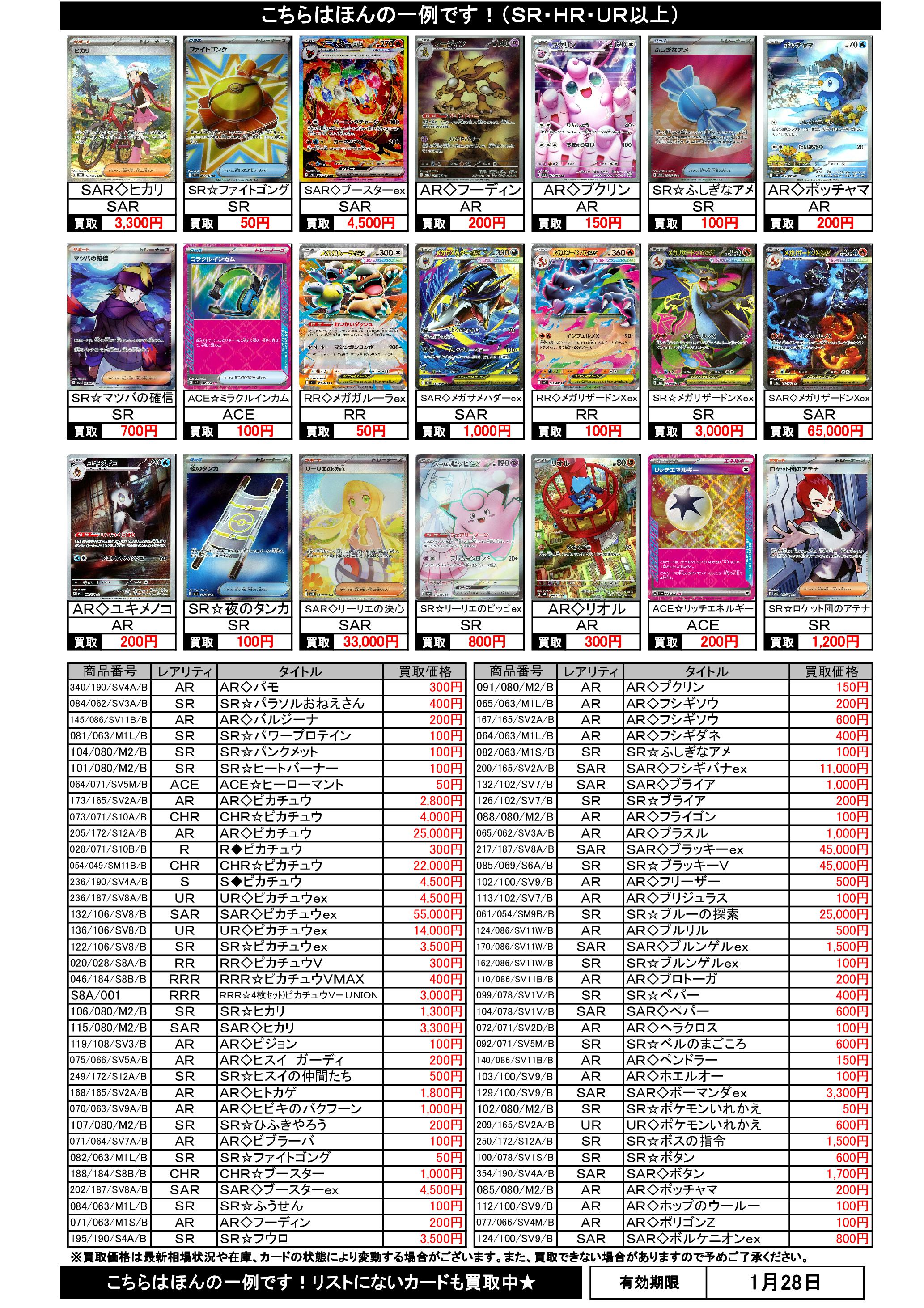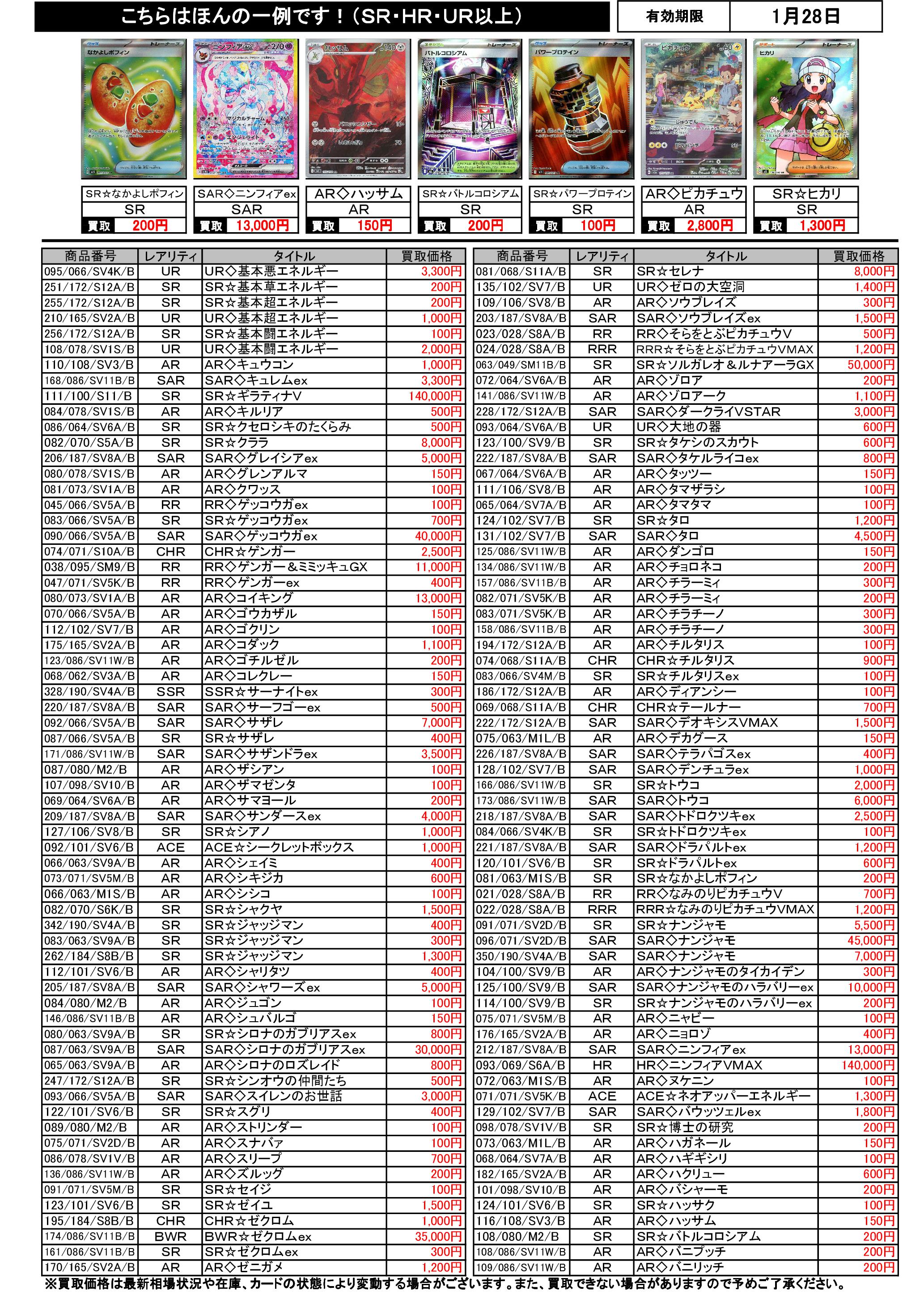 1/22~1/28のポケカ買取表です