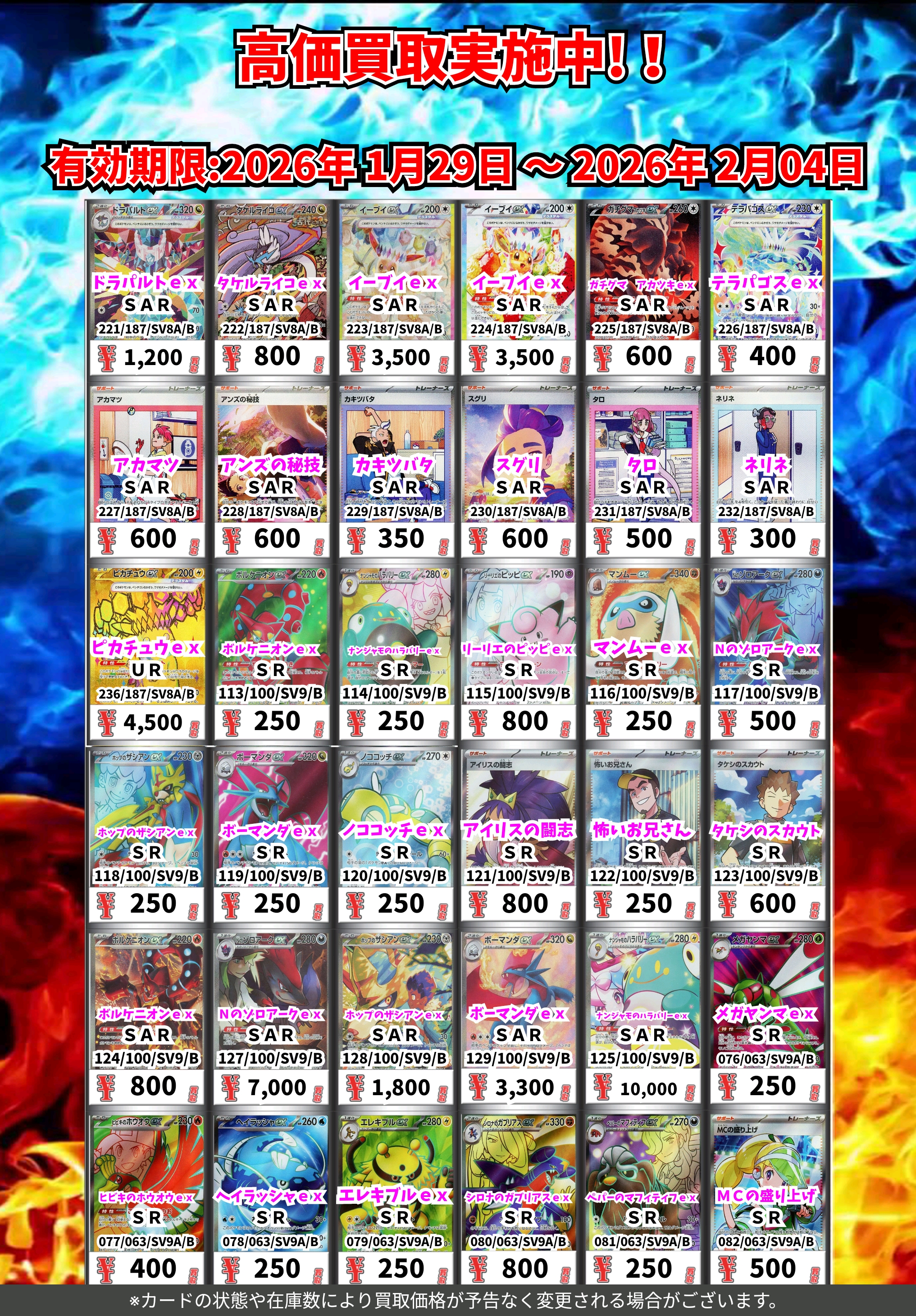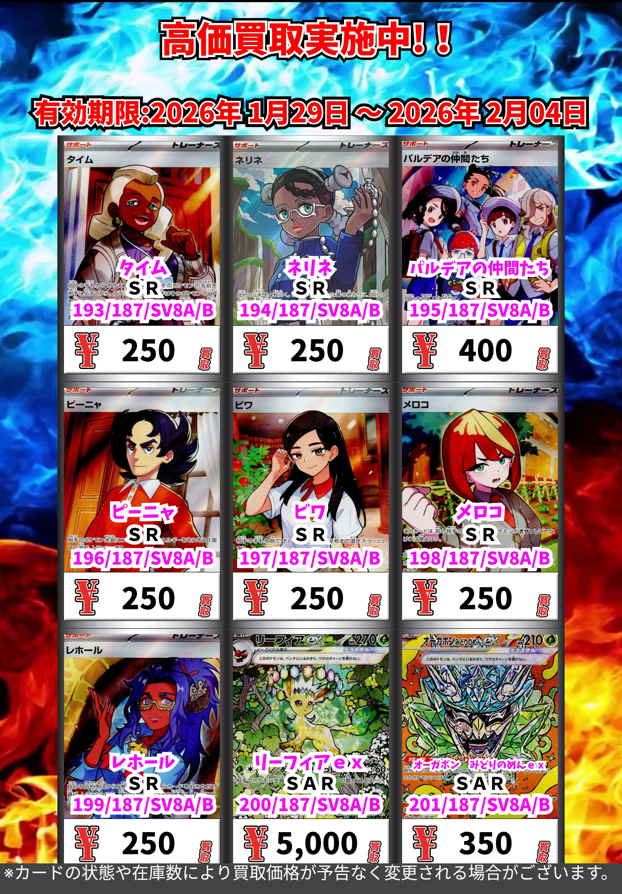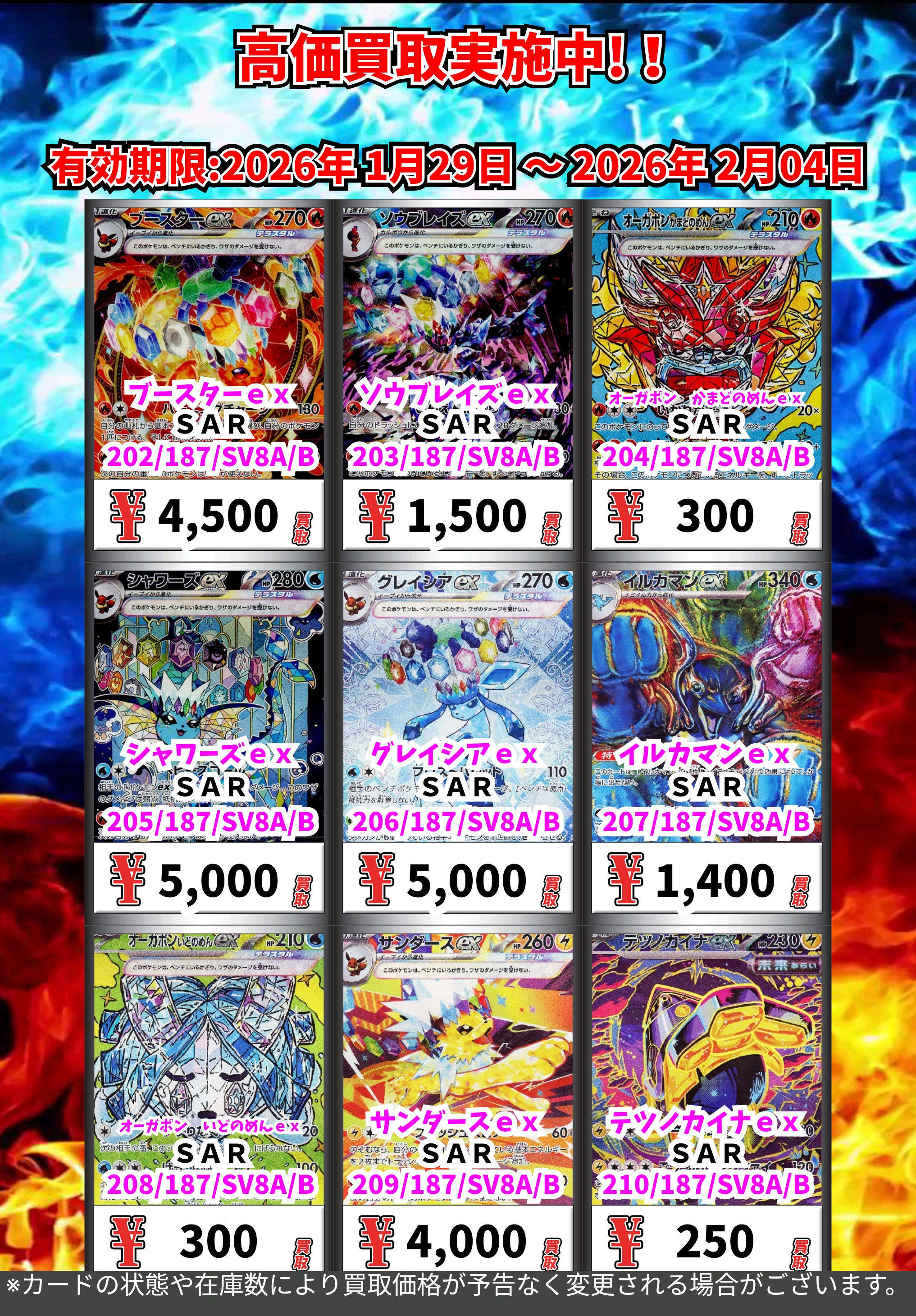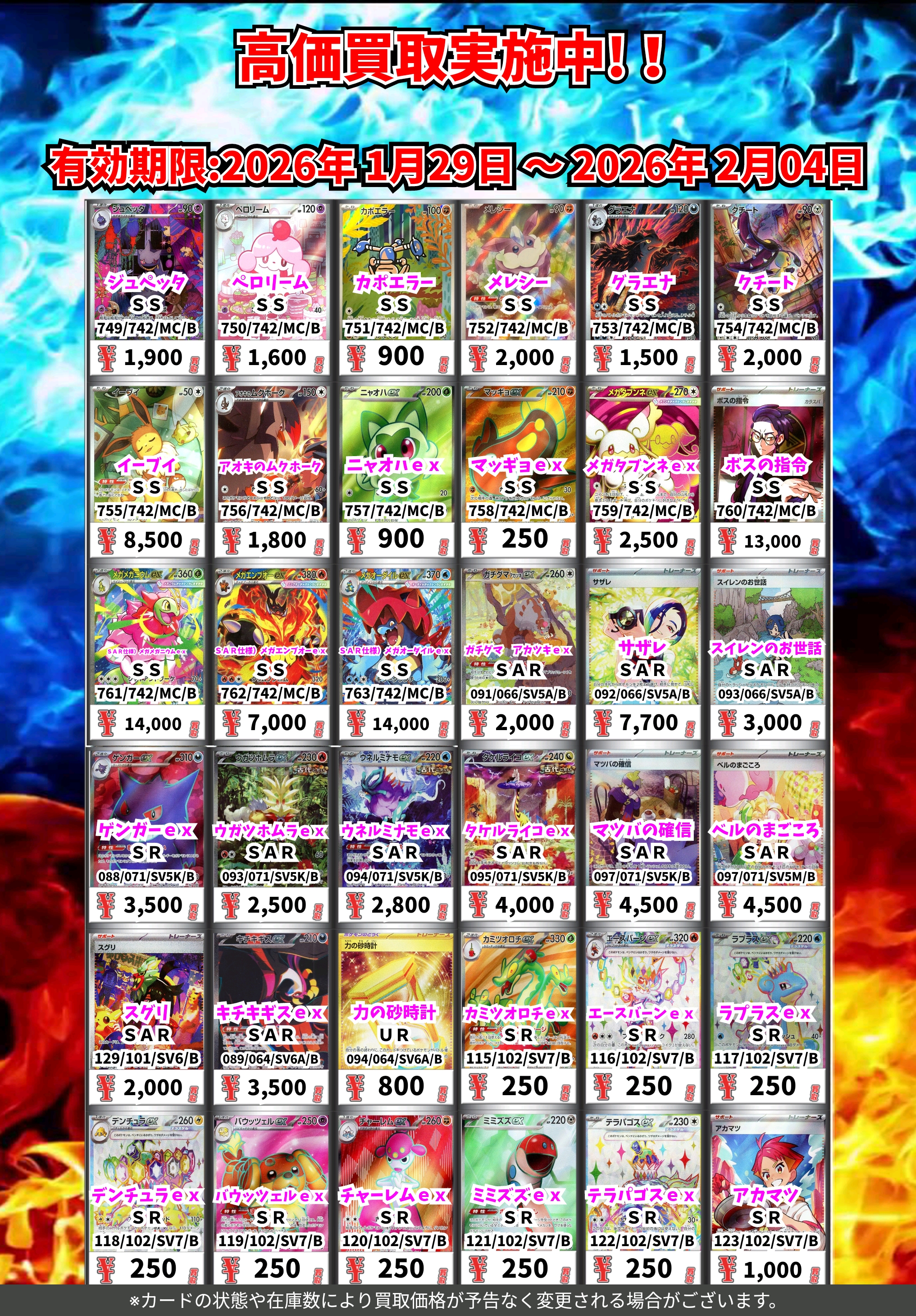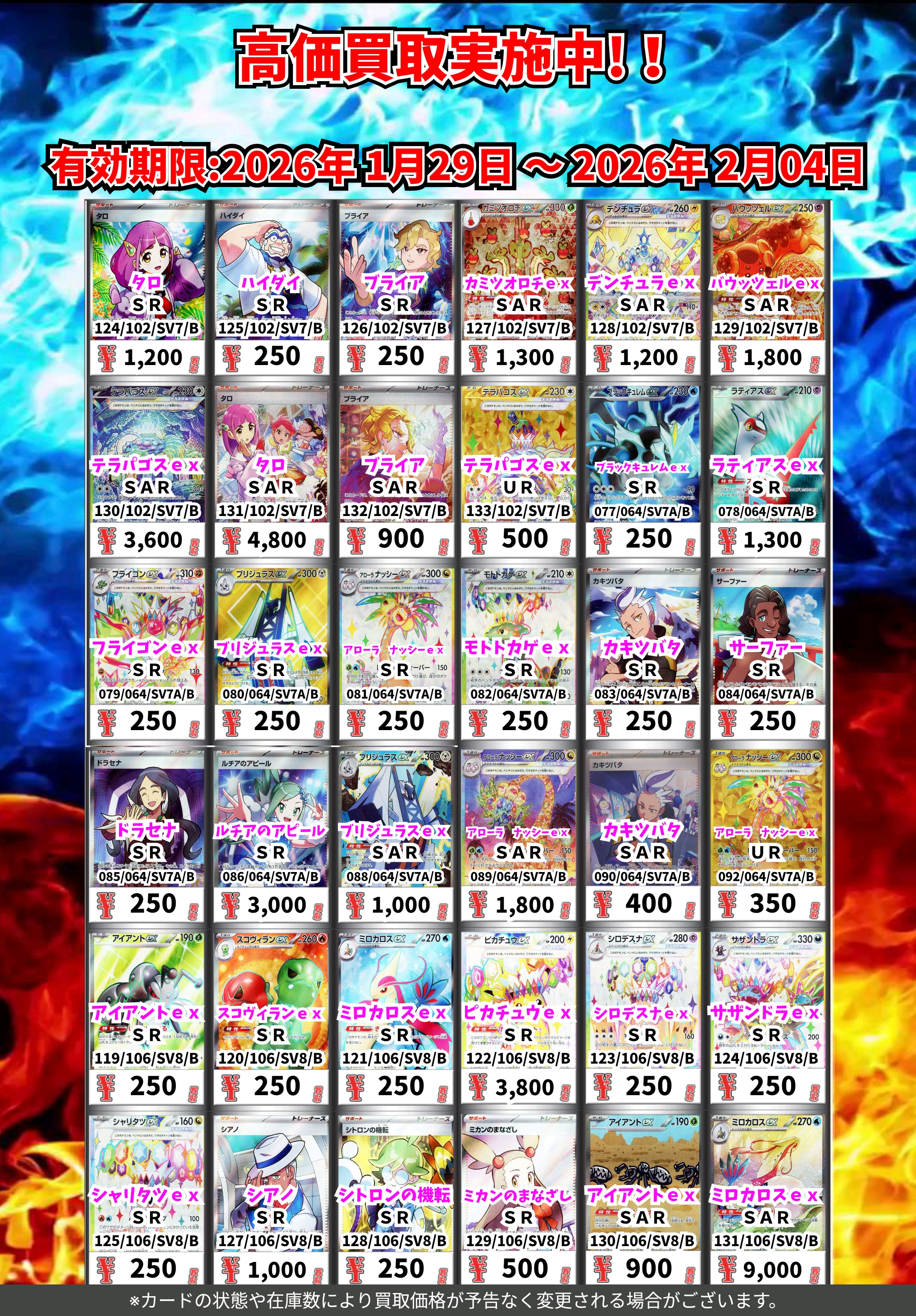 今日はこちらに一足先に明日からのポケカ超高価買取表を掲載します。