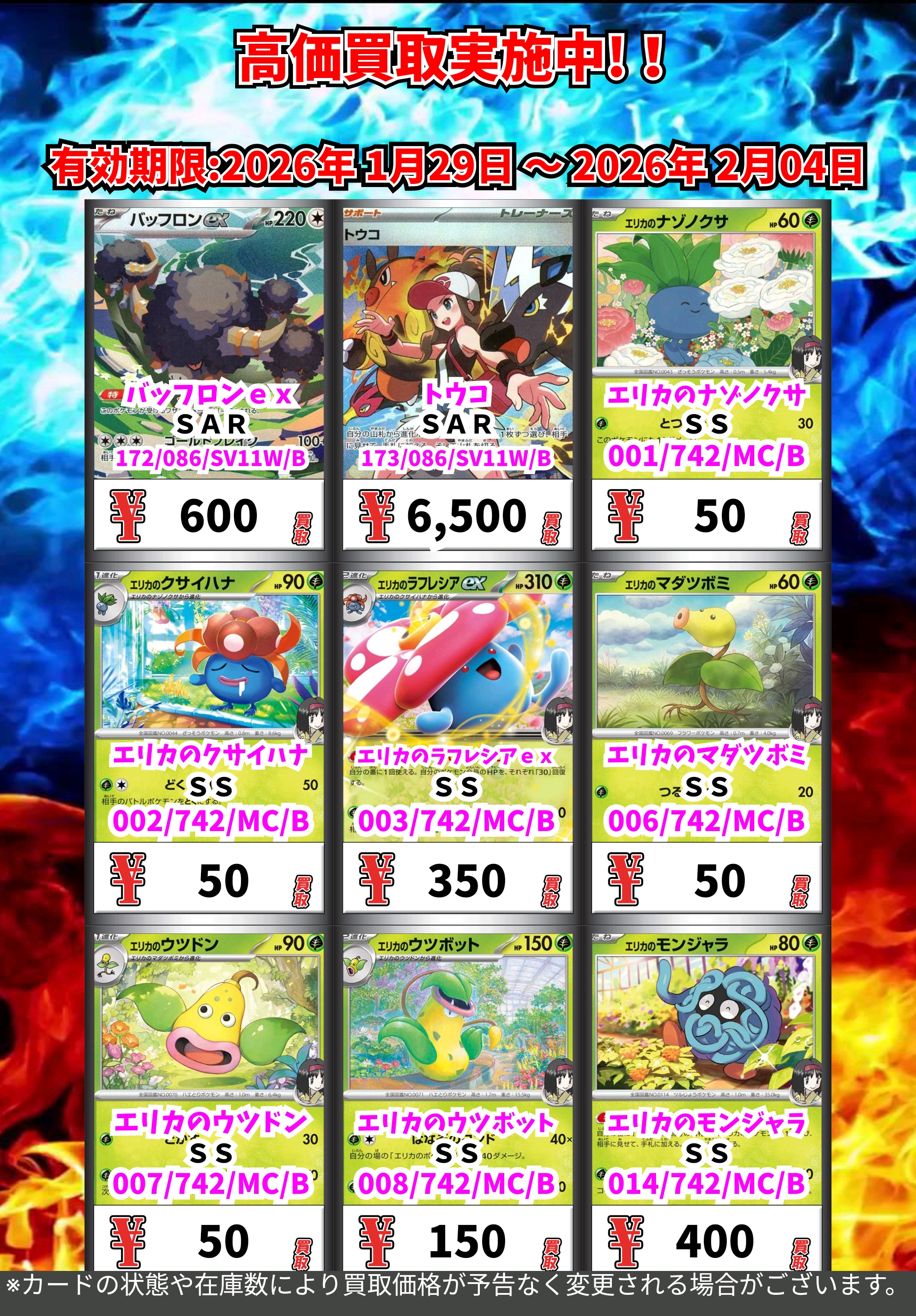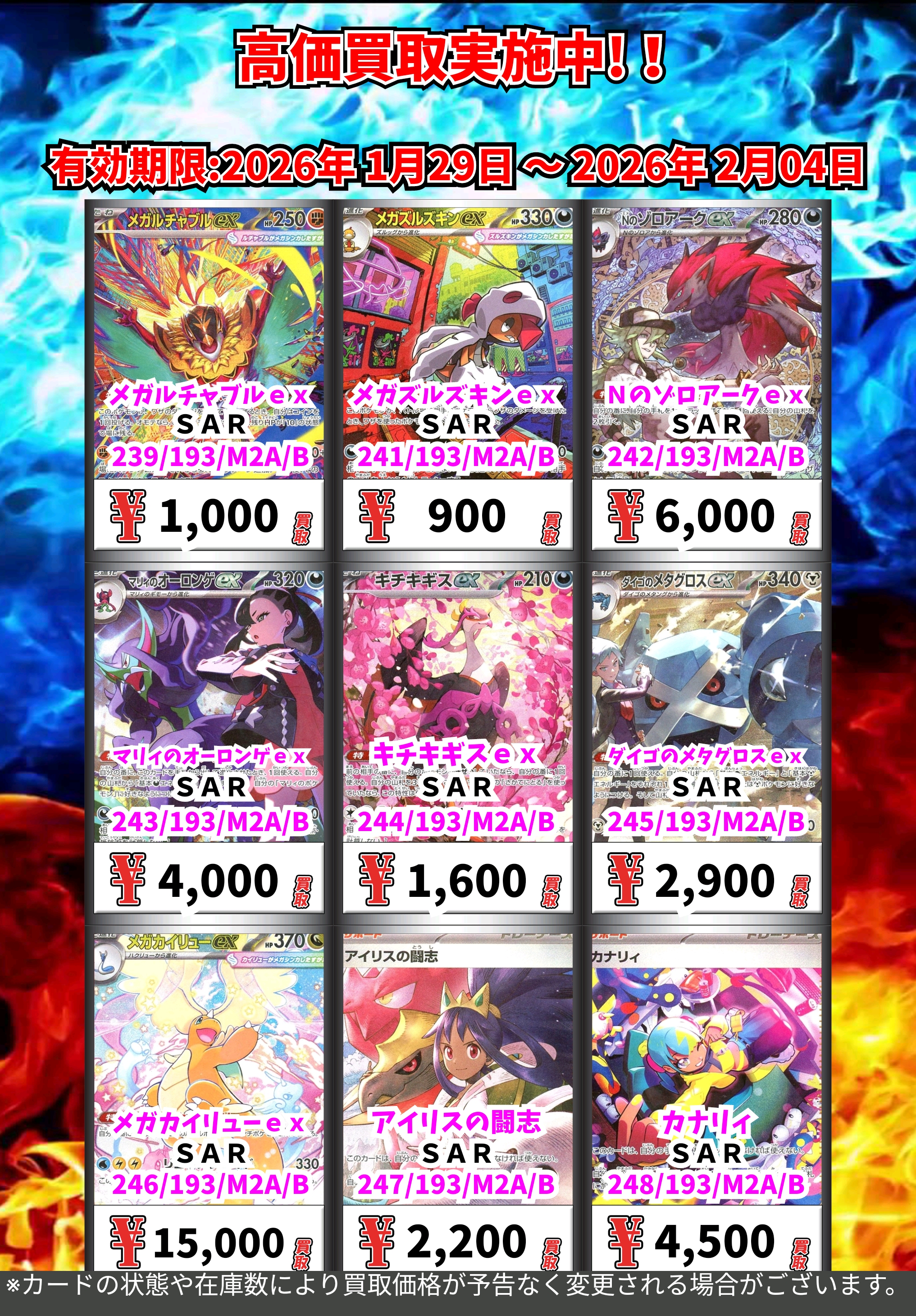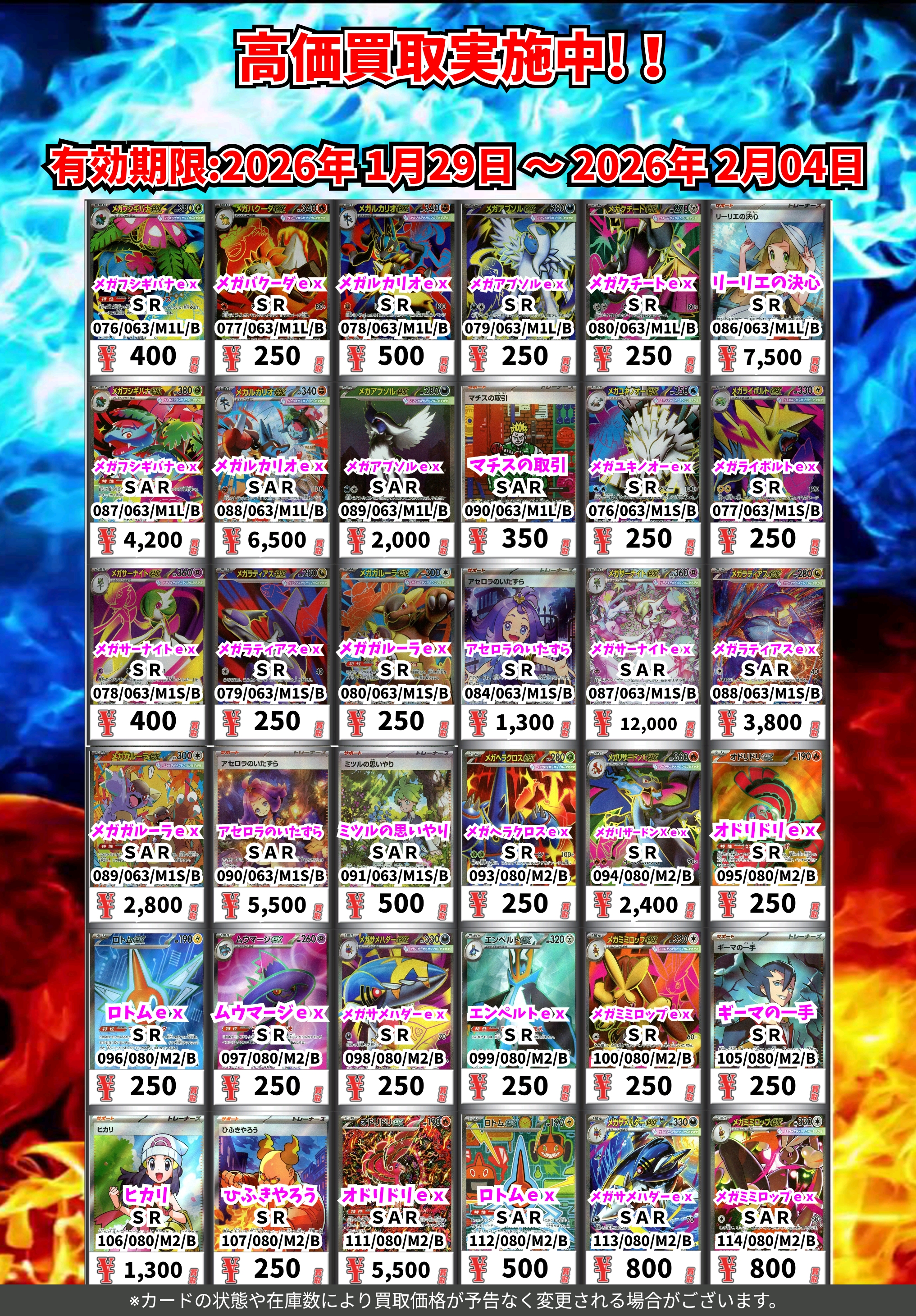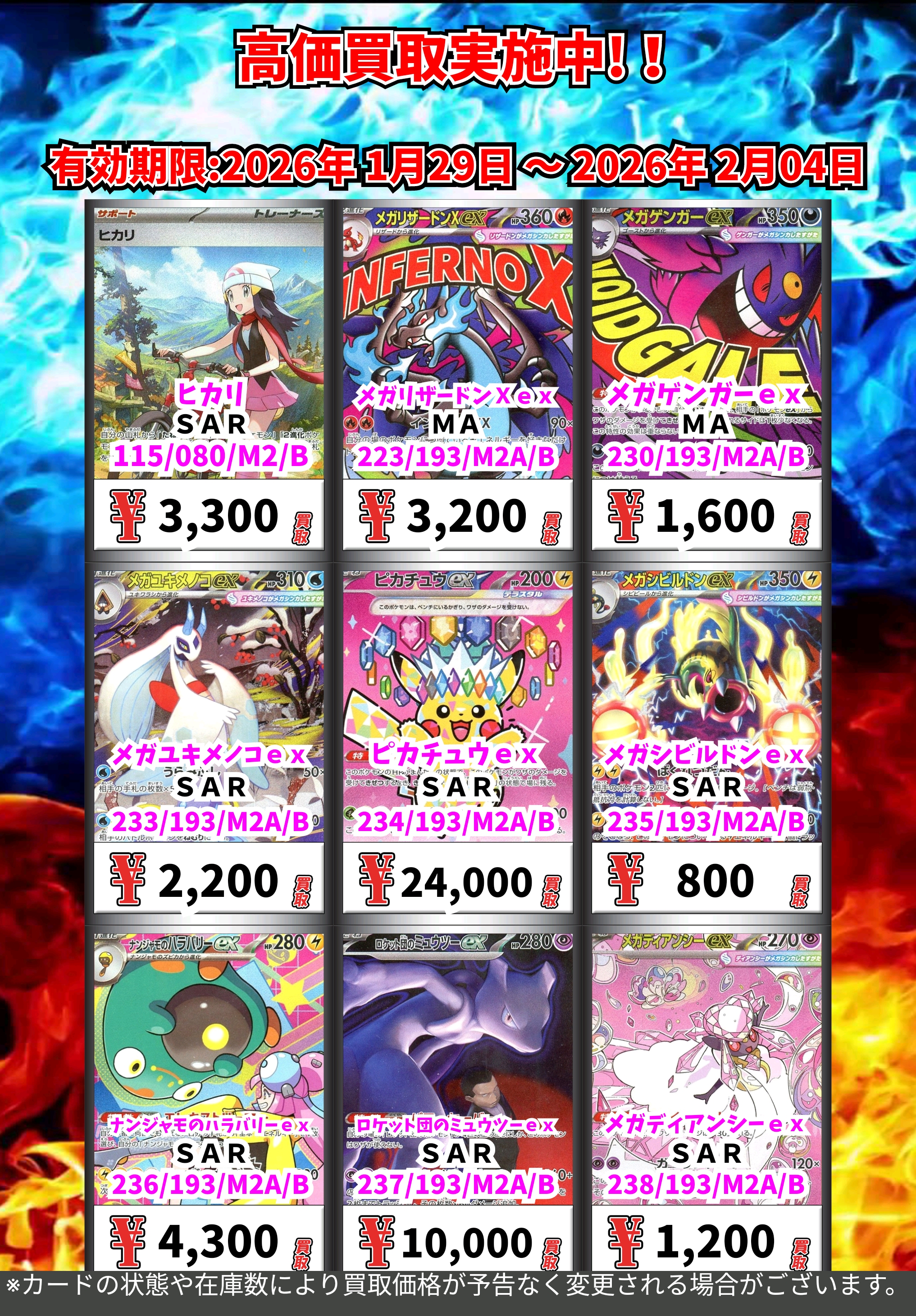 今日はこちらに一足先に明日からのポケカ超高価買取表を掲載します。
