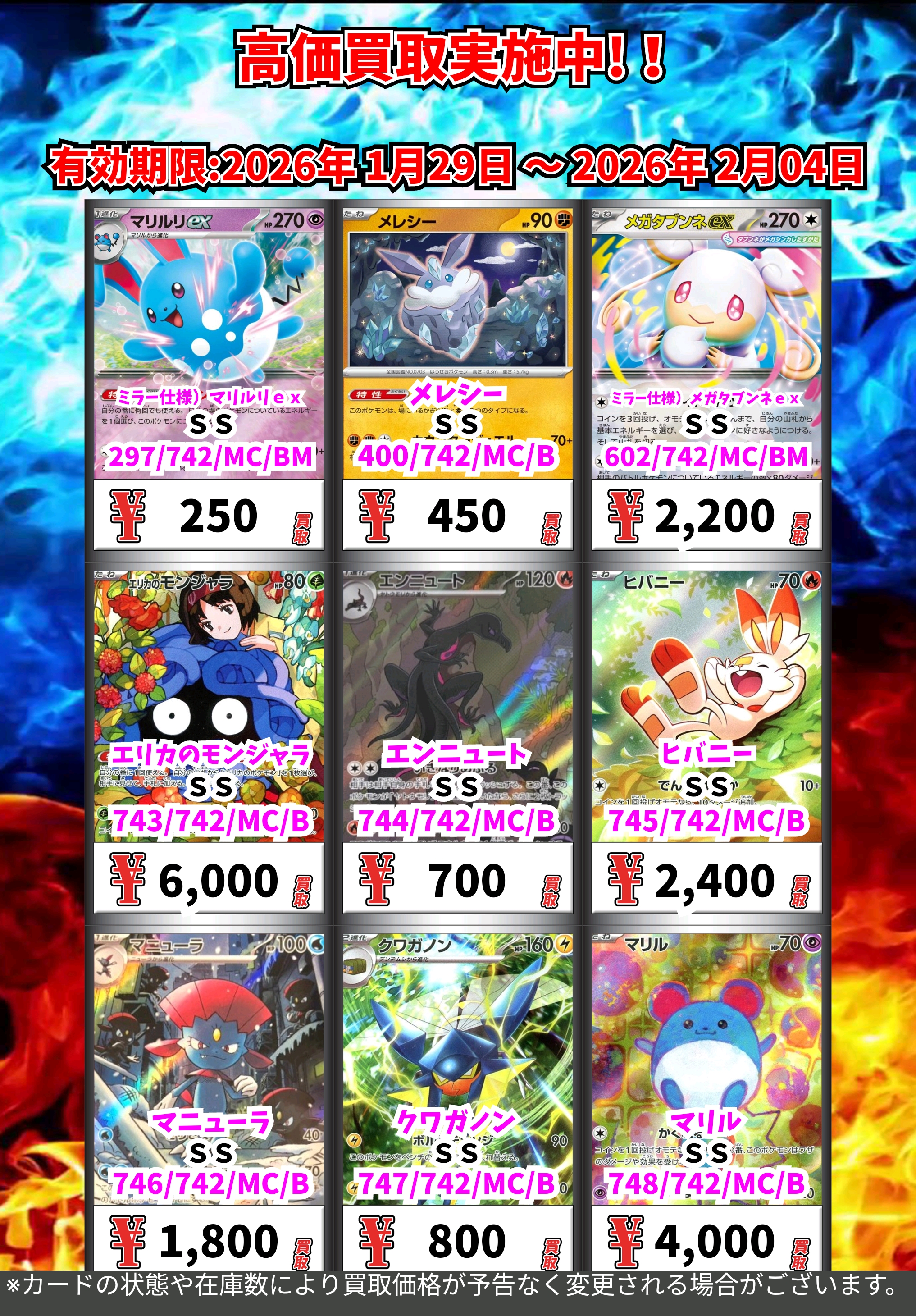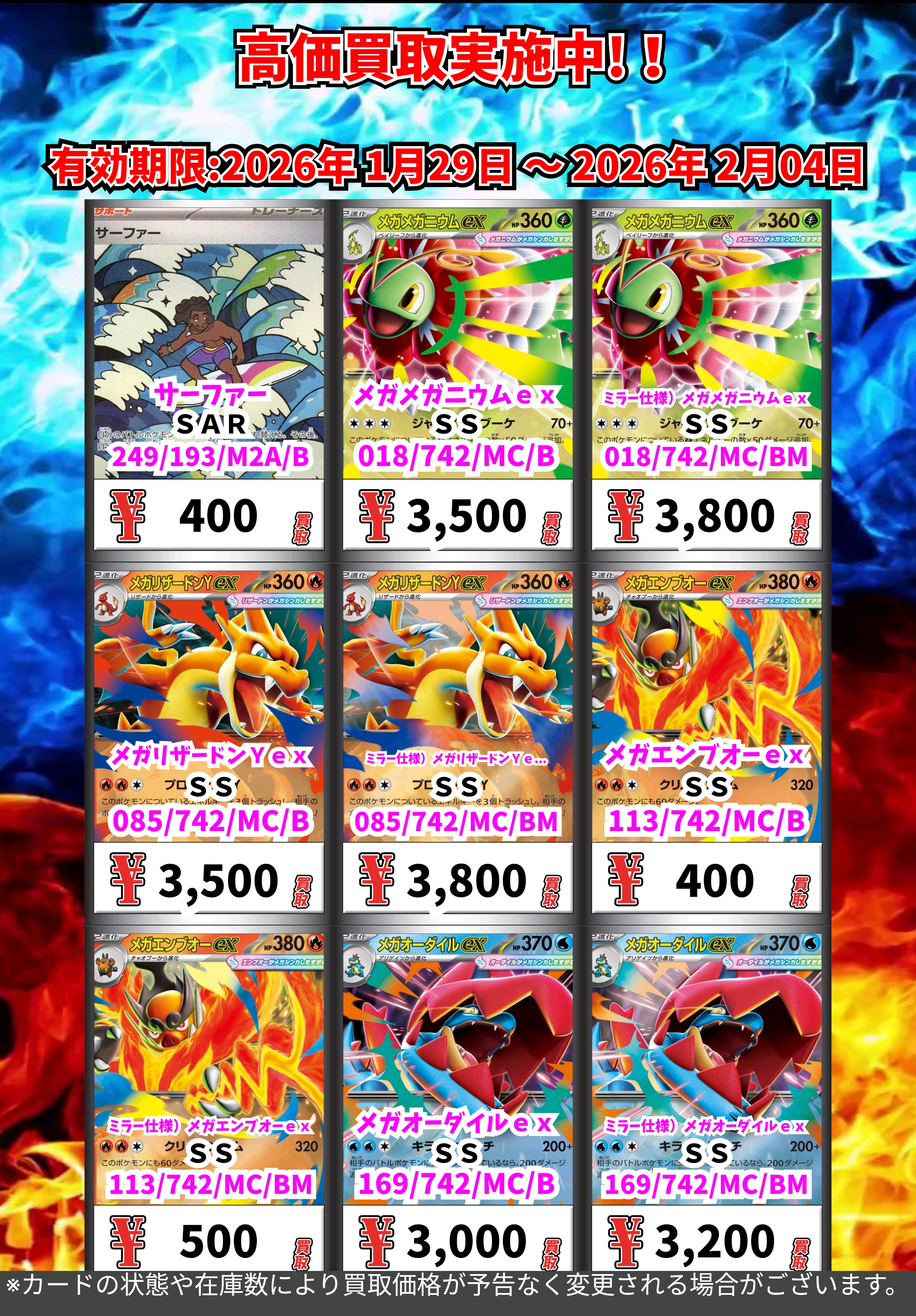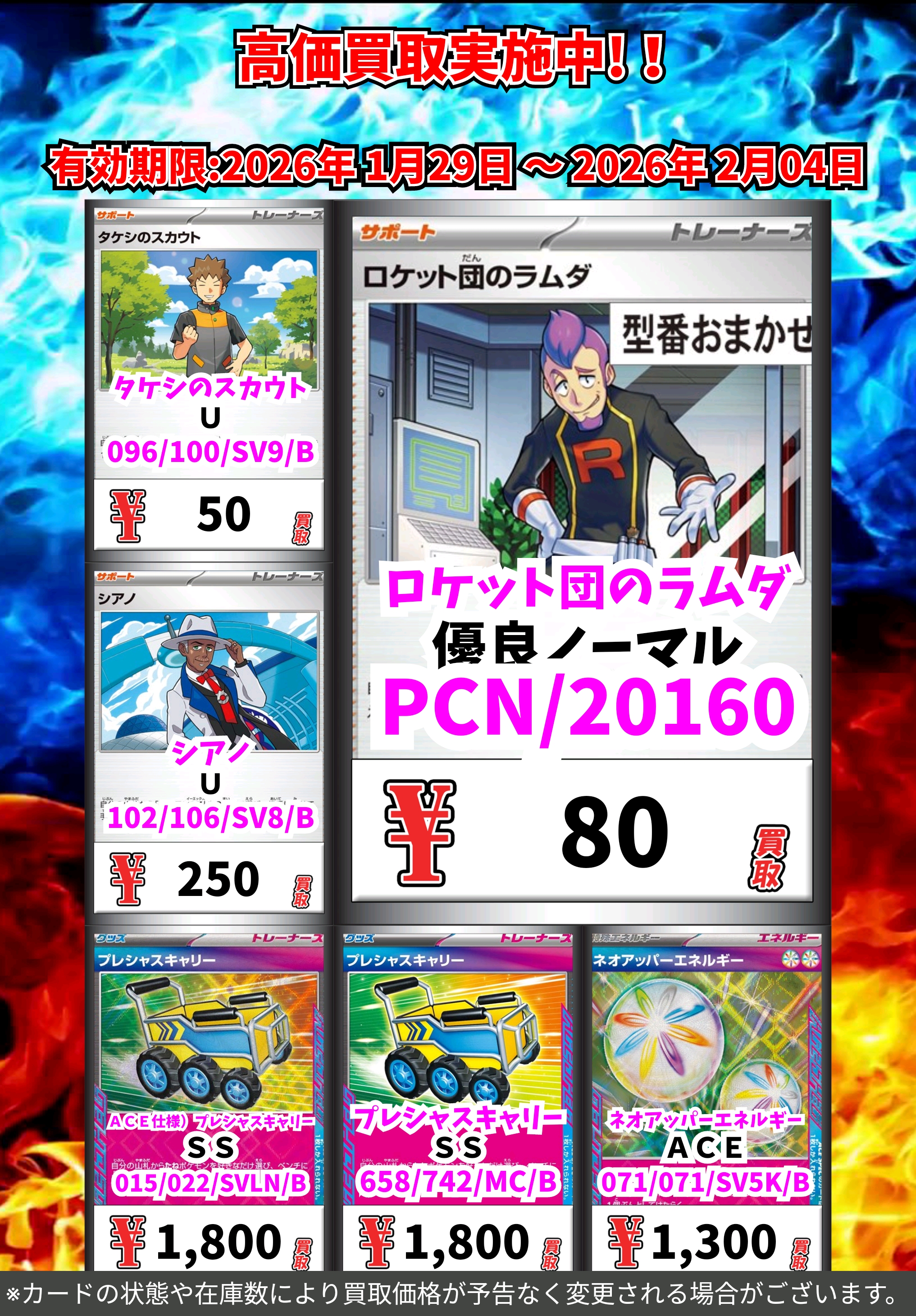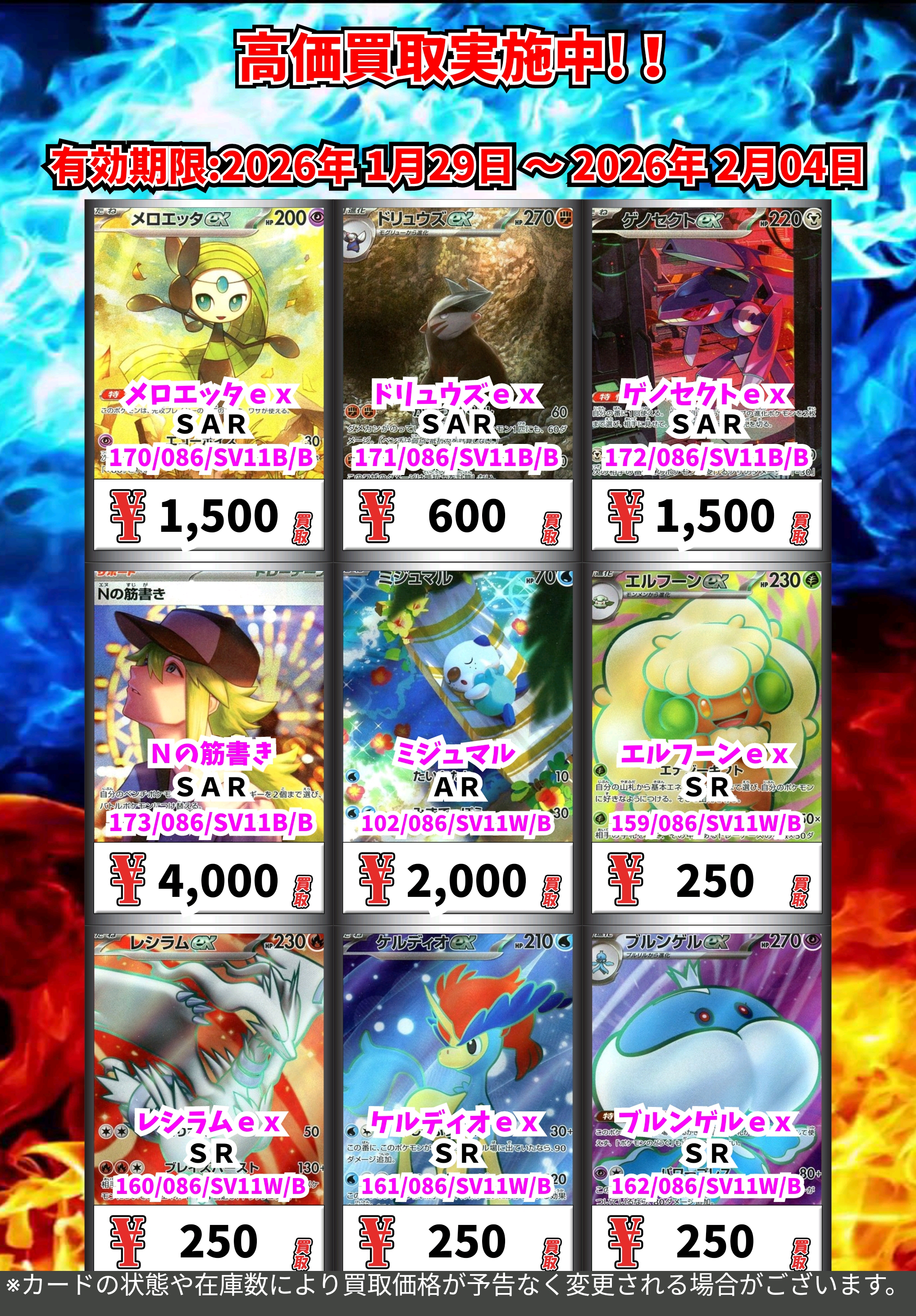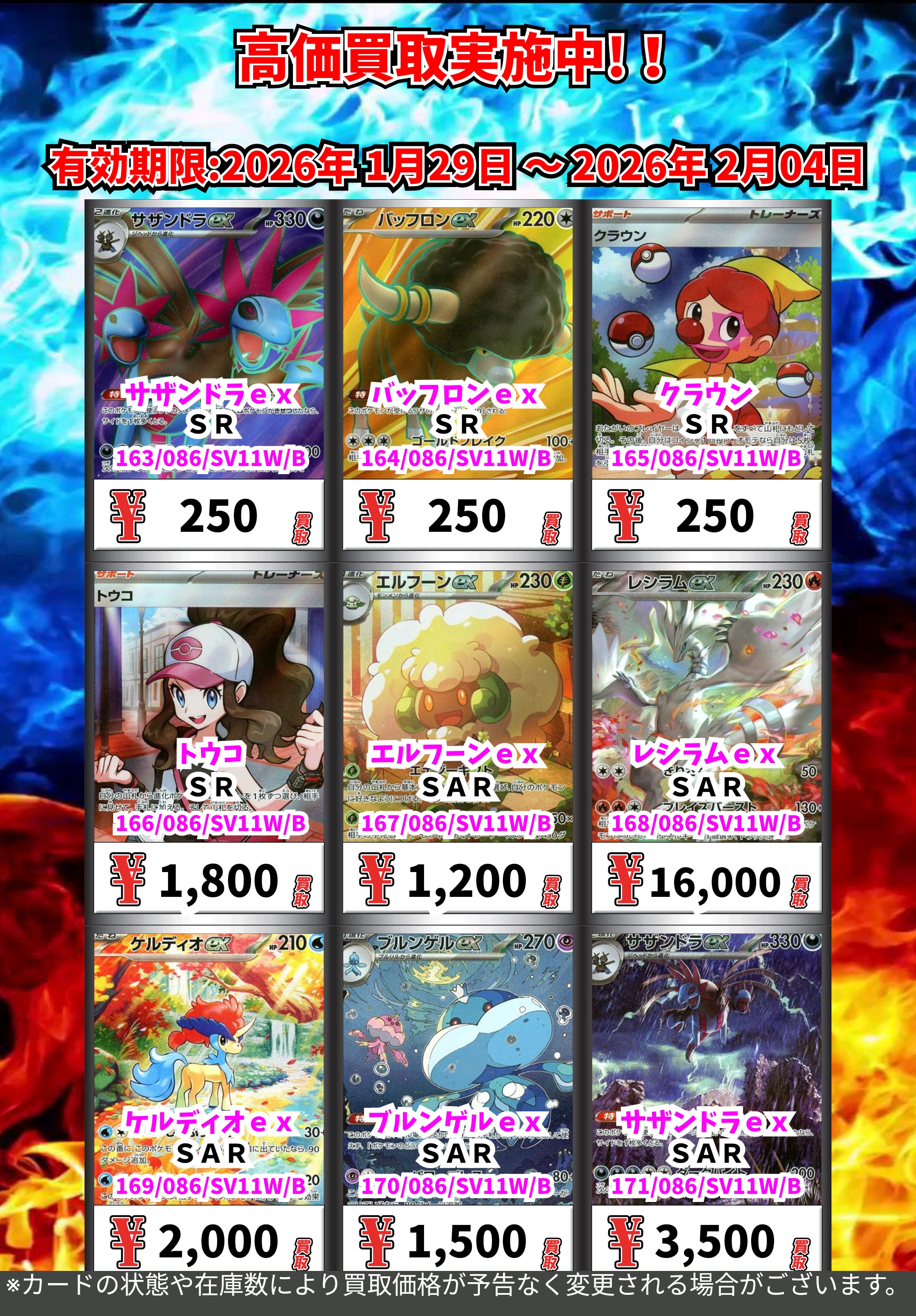 今日はこちらに一足先に明日からのポケカ超高価買取表を掲載します。