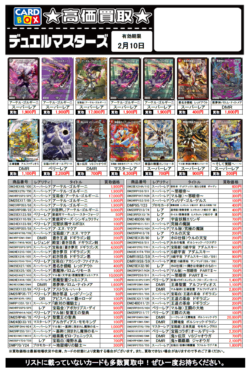 デュエルマスターズ買取チラシ更新(2/10まで)