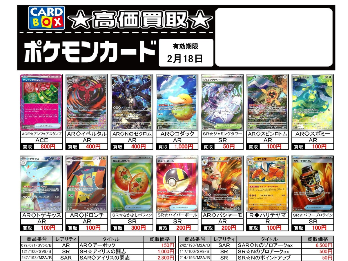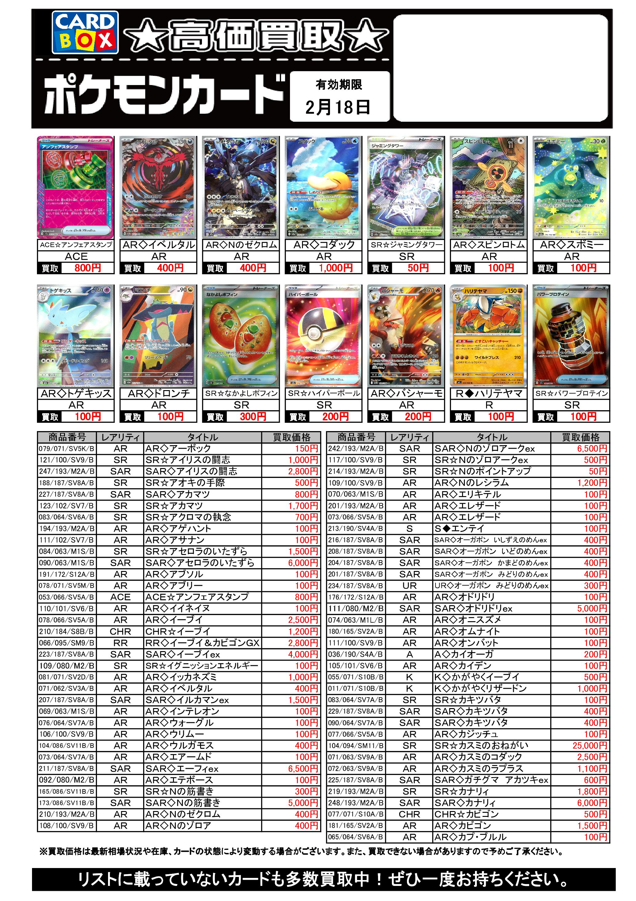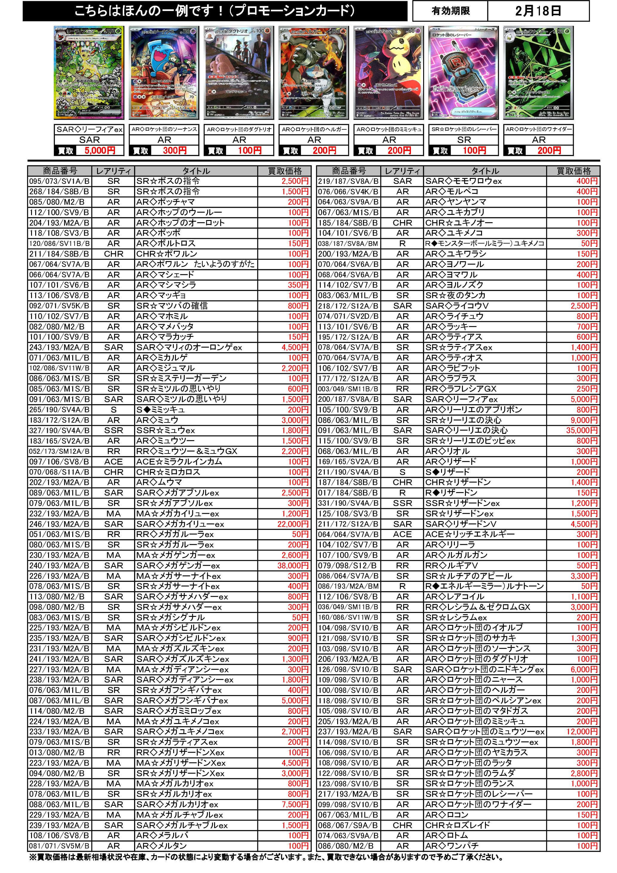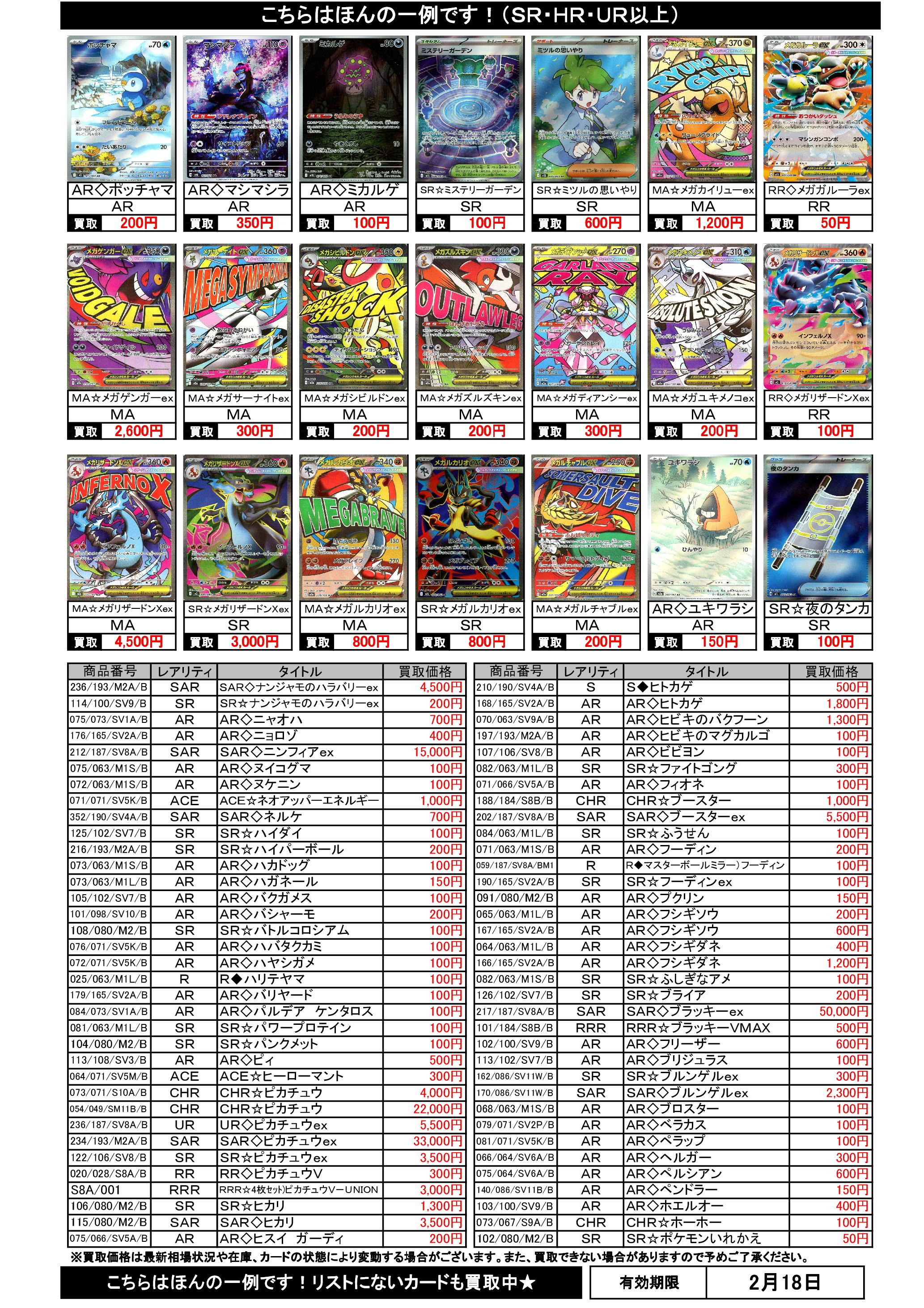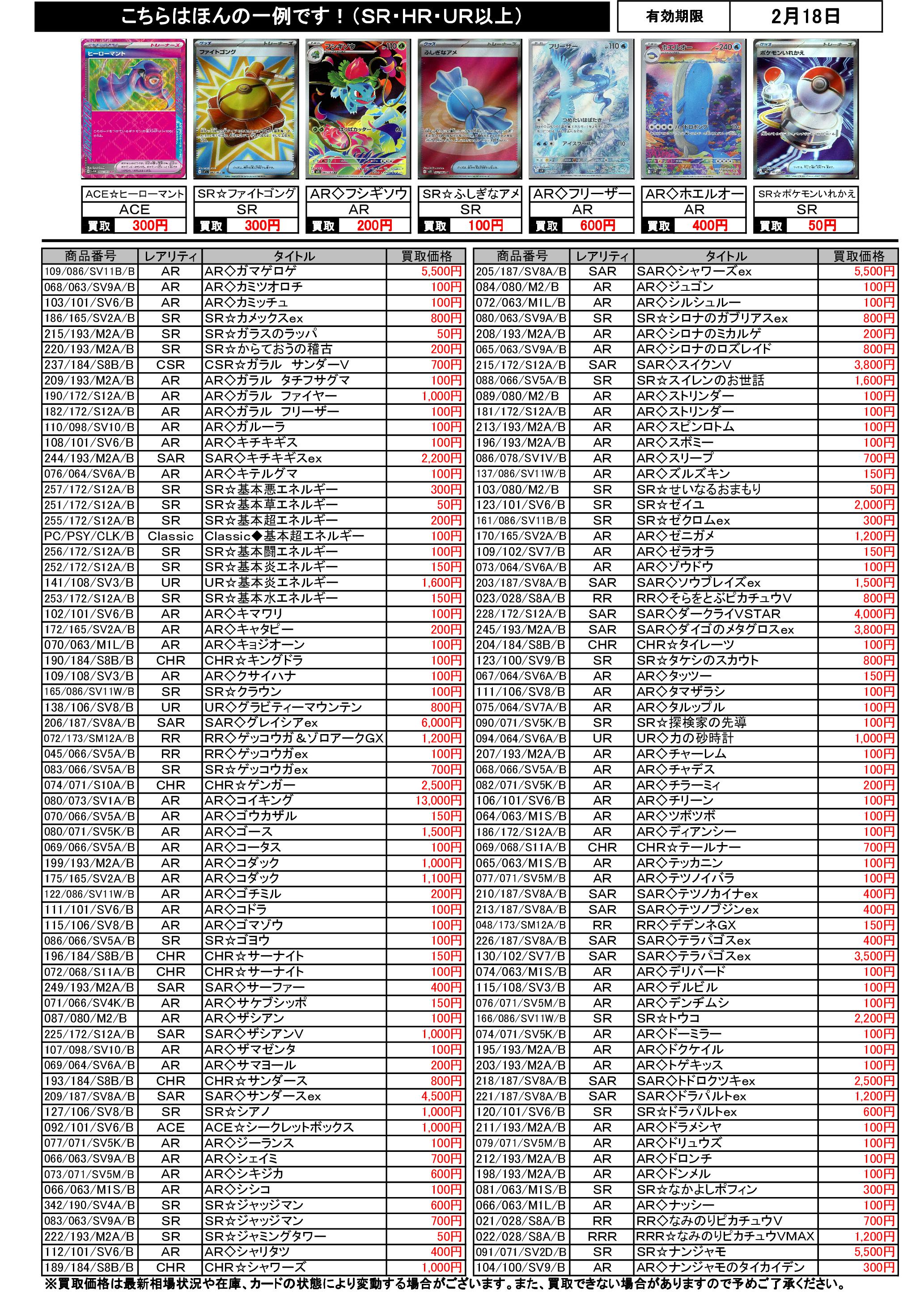 2/12~2/18のポケカ買取表です
