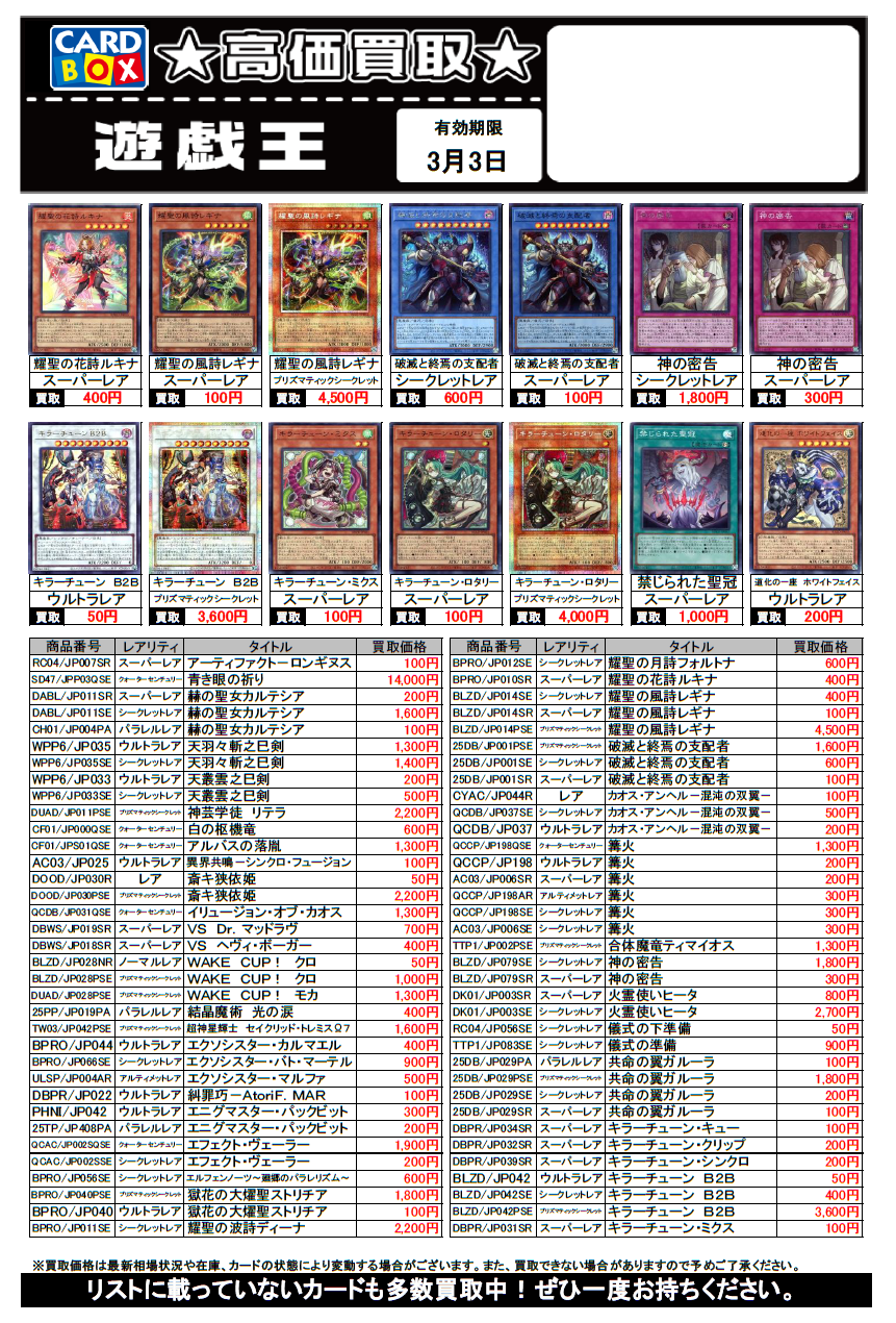 ※※買取価格は最新相場状況や在庫、カードの状態により変動する場合がございます。