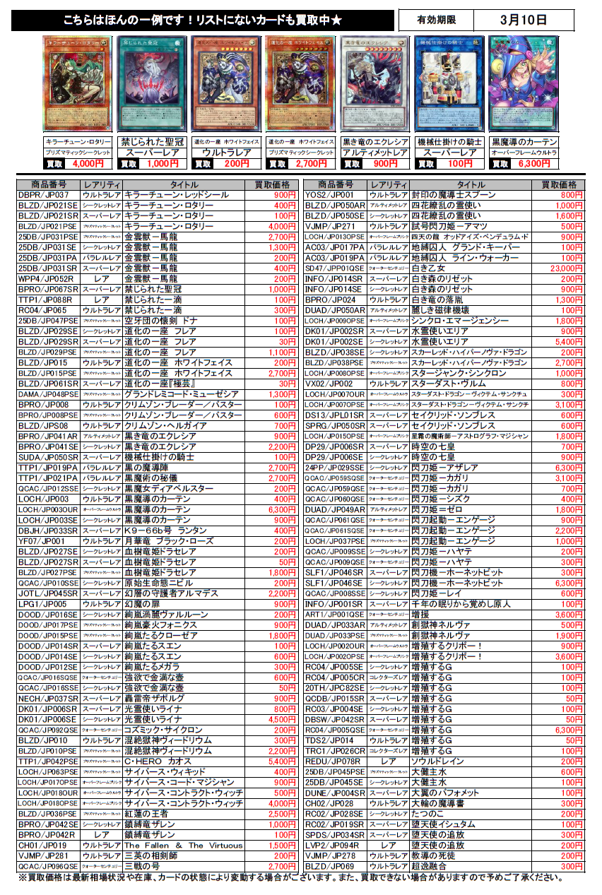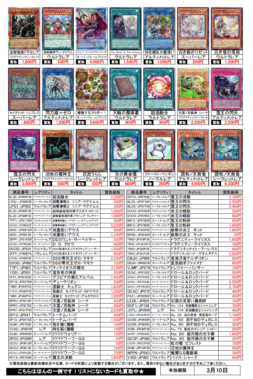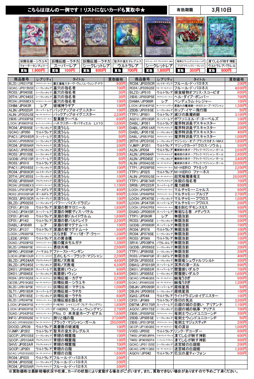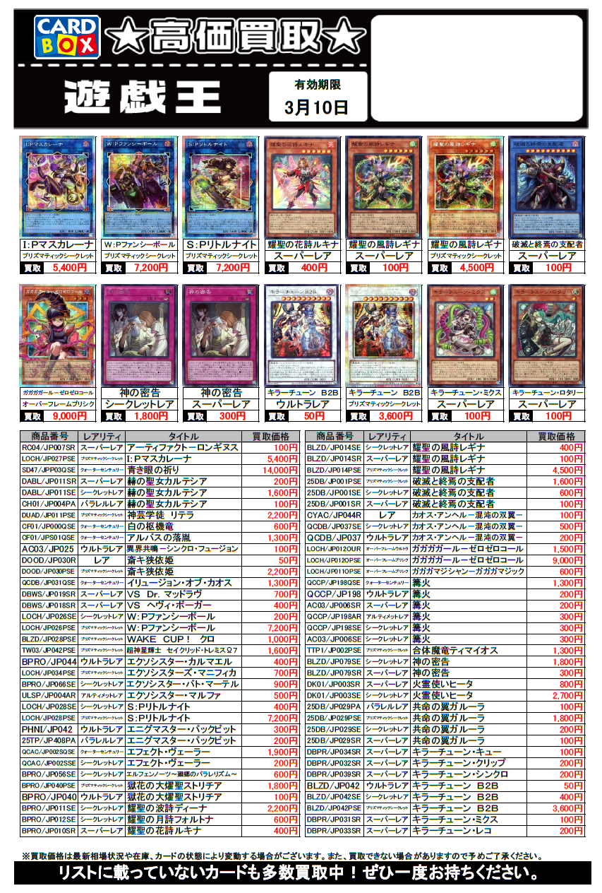 遊戯王買取チラシ更新(3/10まで)