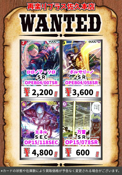 ワンピースシングルカードお売りください。