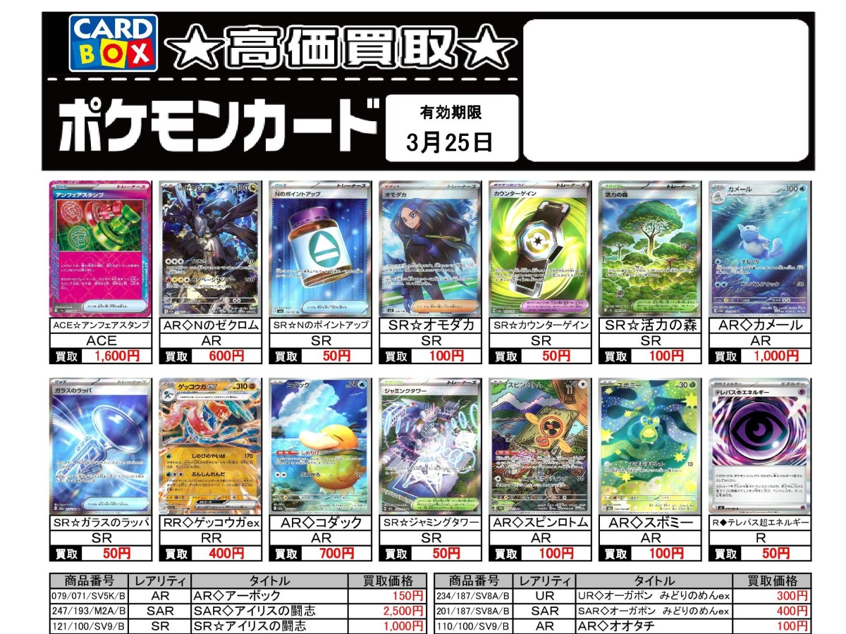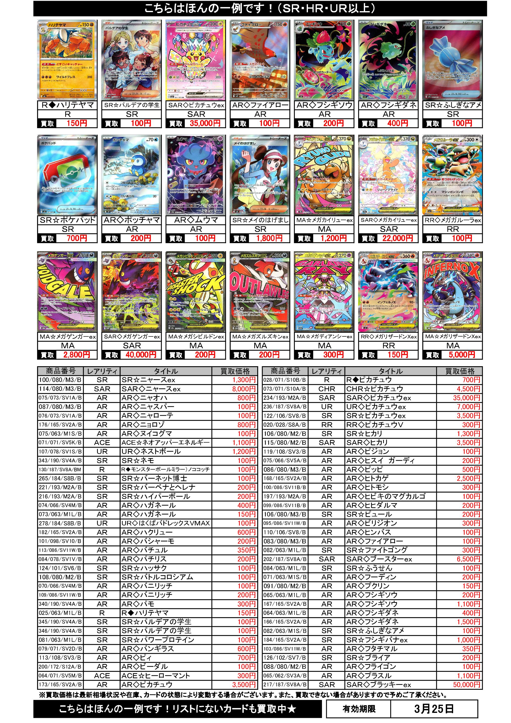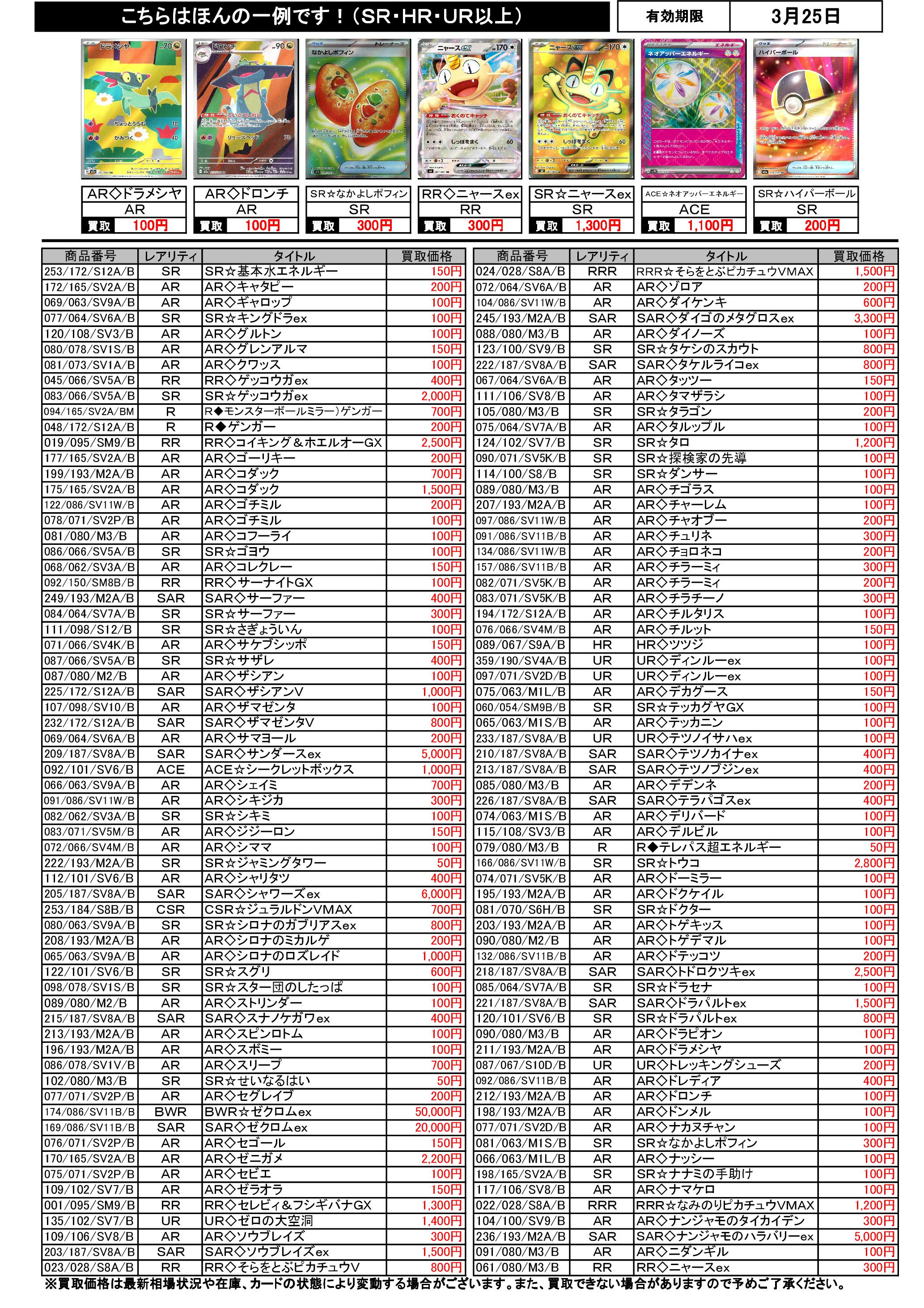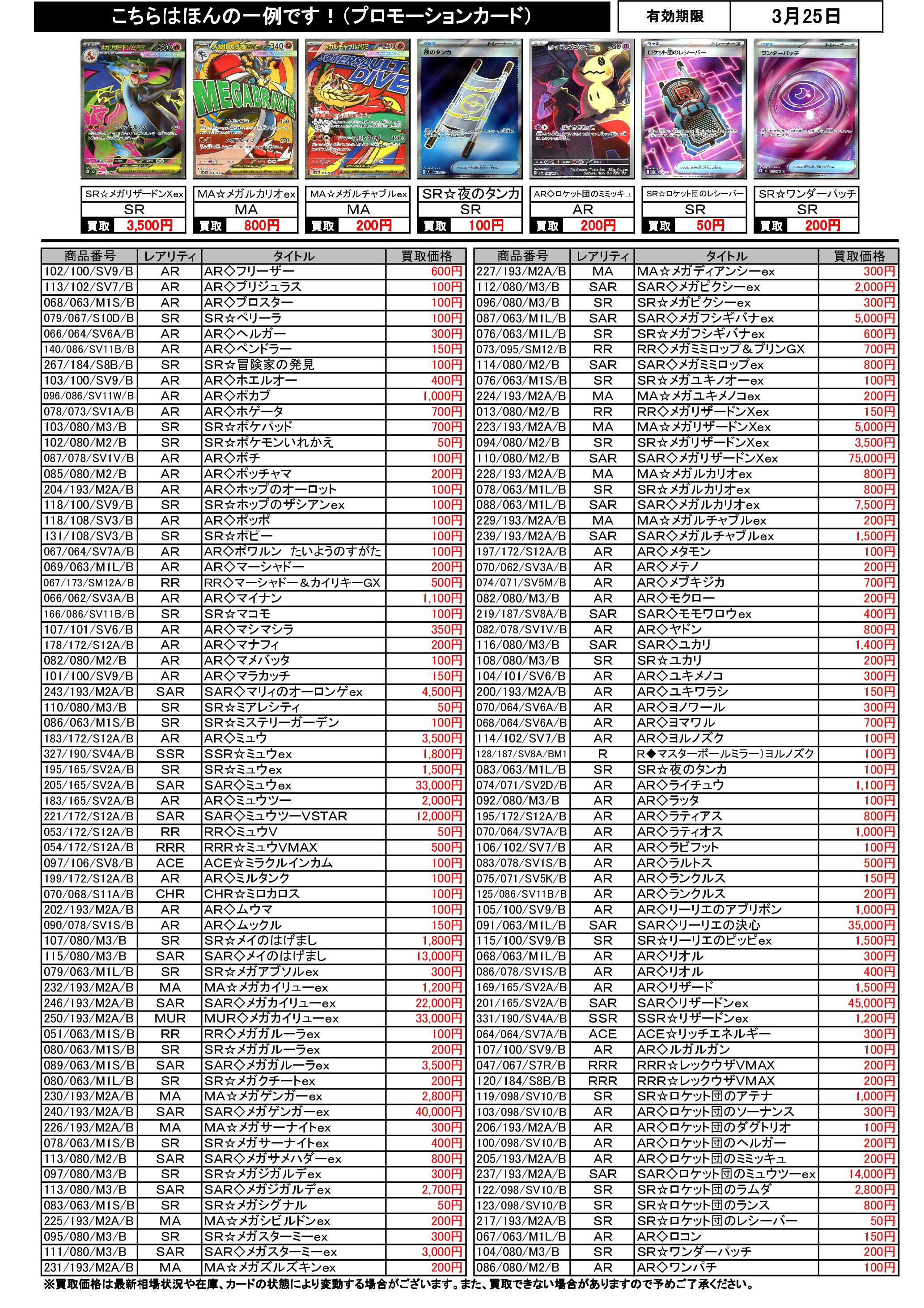 3/19~3/25のポケカ買取表です