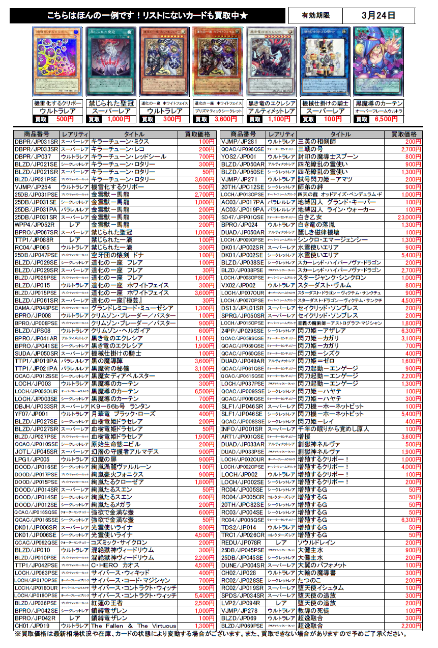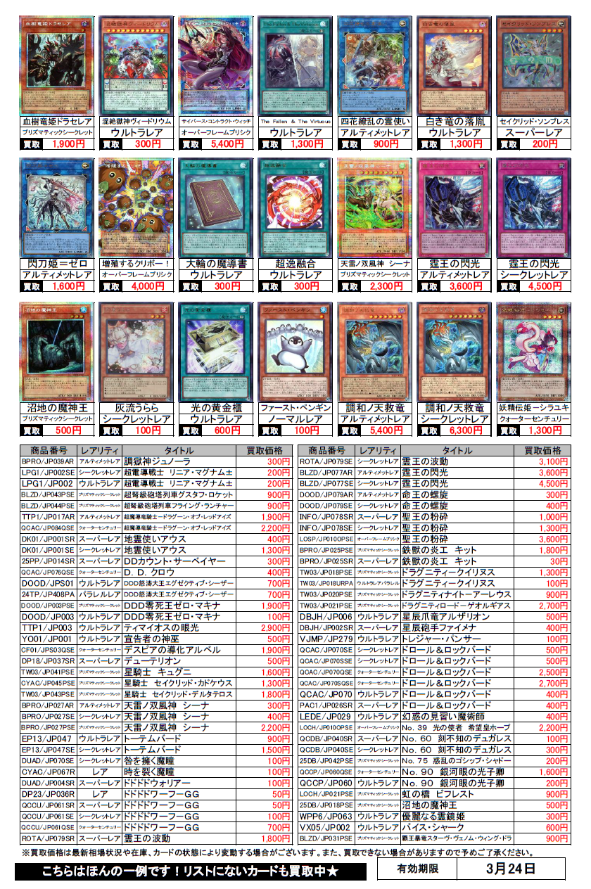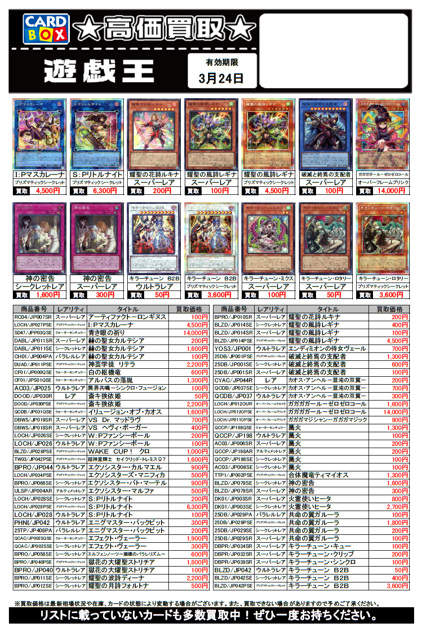 遊戯王買取チラシ更新(3/24まで)