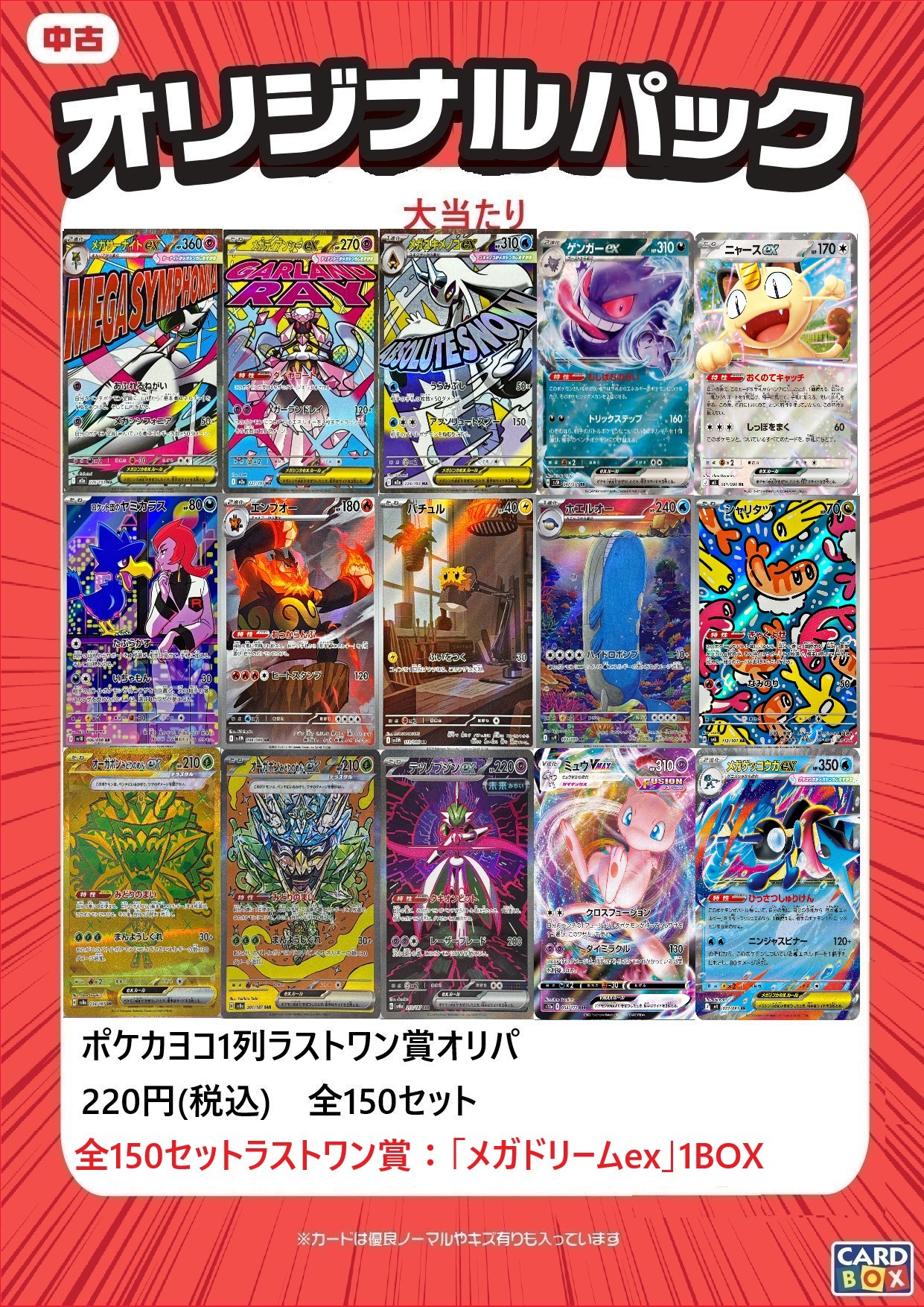 15段の全150セットのラストワン賞は「メガドリームex」を1BOXですっ!!