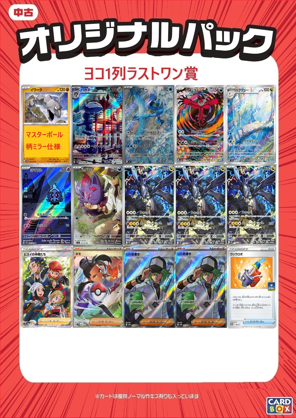 完売しておりましたポケカのヨコ1列(10セット)ごとにラストワン賞があるオリパを補充しました。