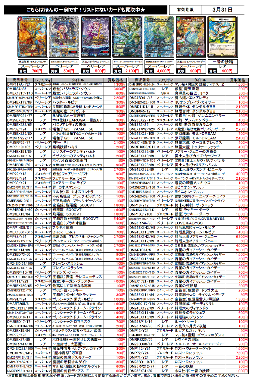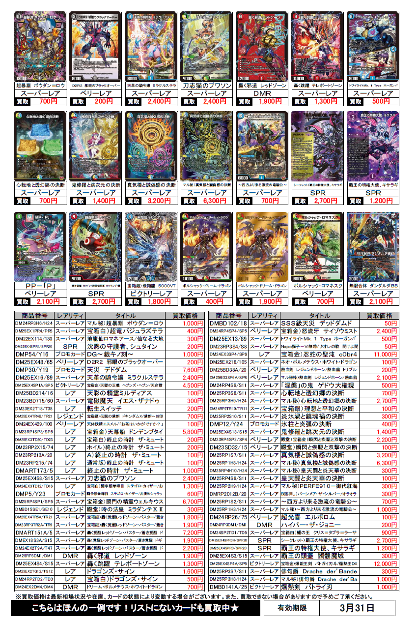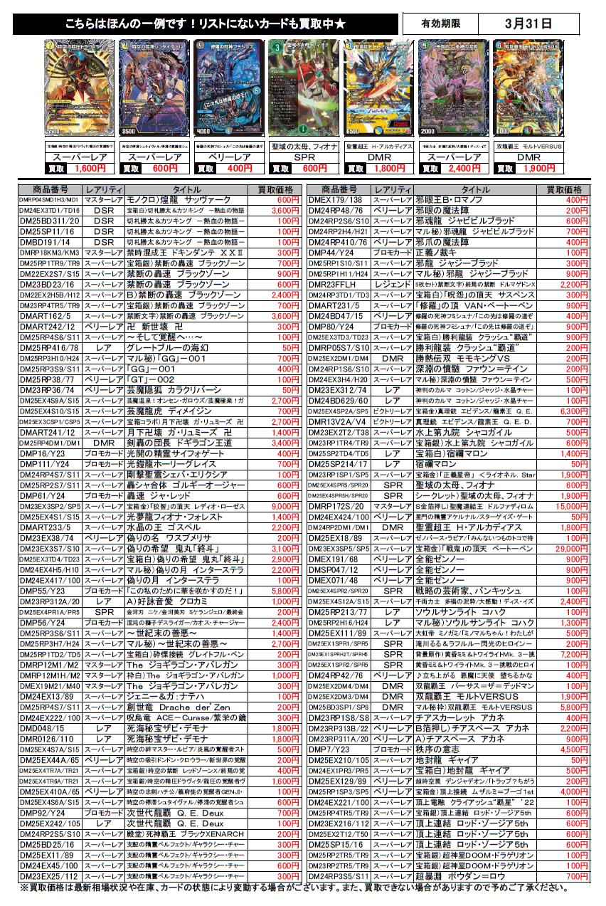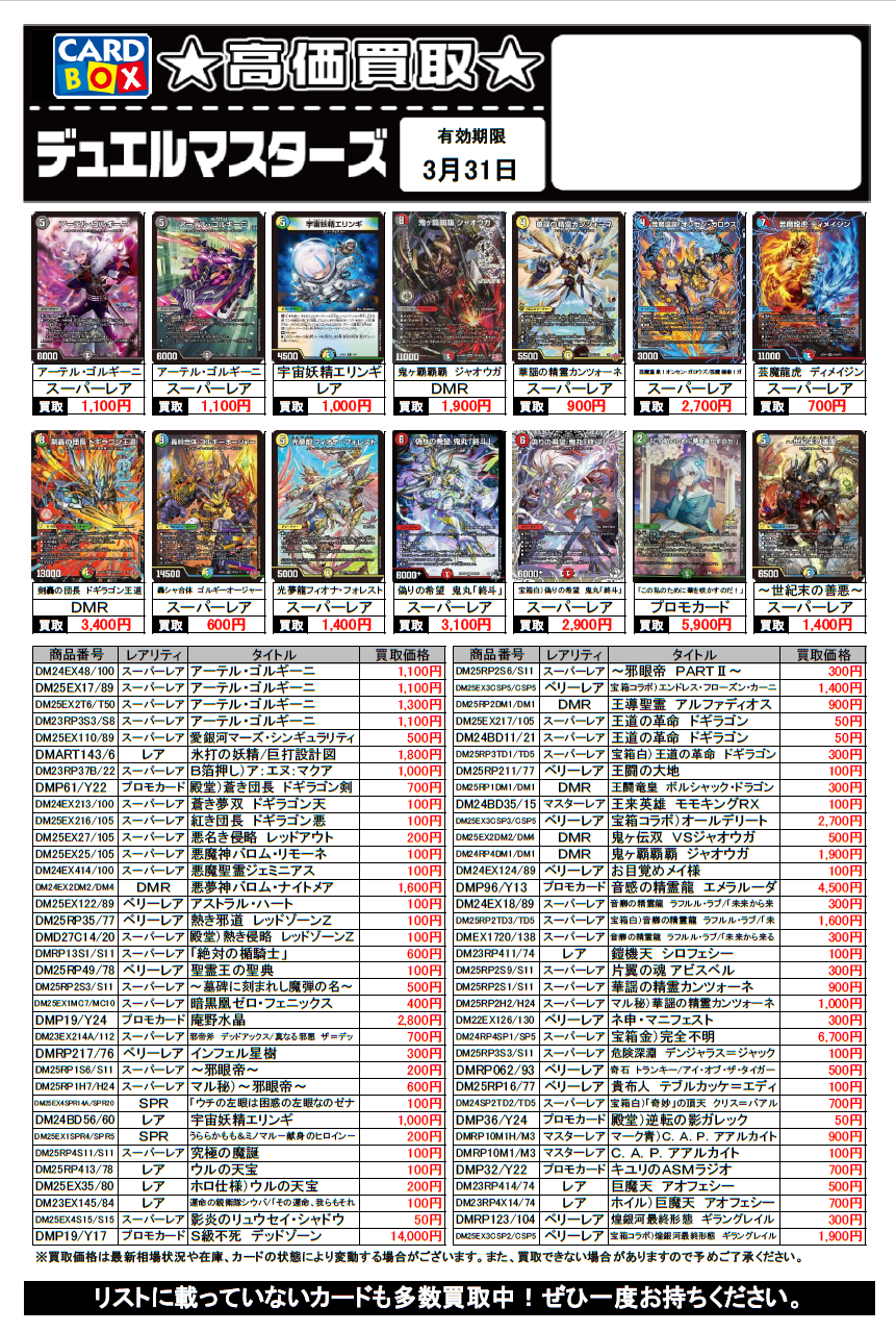 デュエルマスターズ買取チラシ更新(3/31まで)