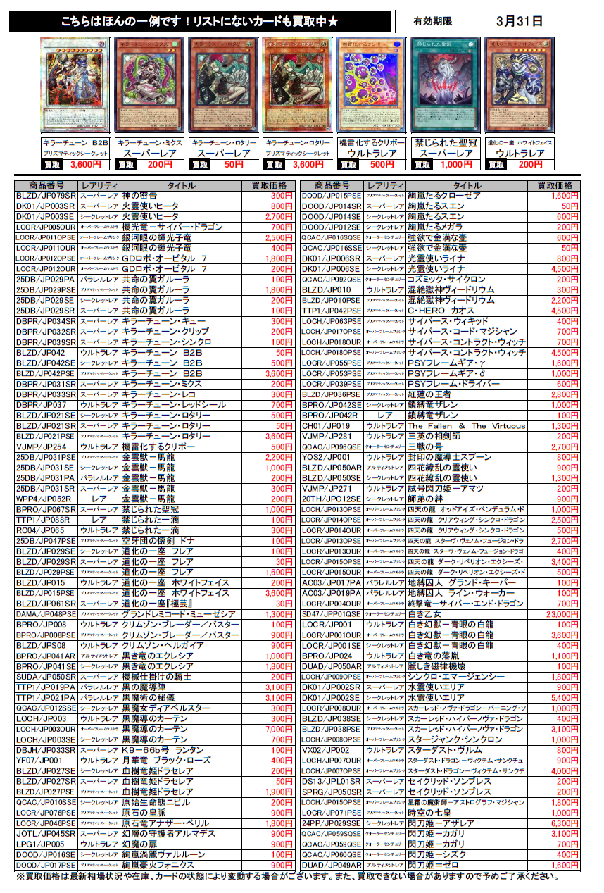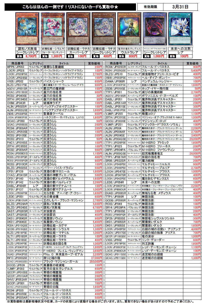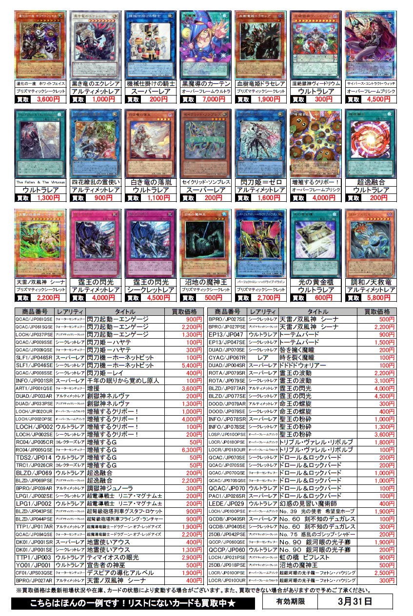 遊戯王買取チラシ更新(3/31まで)