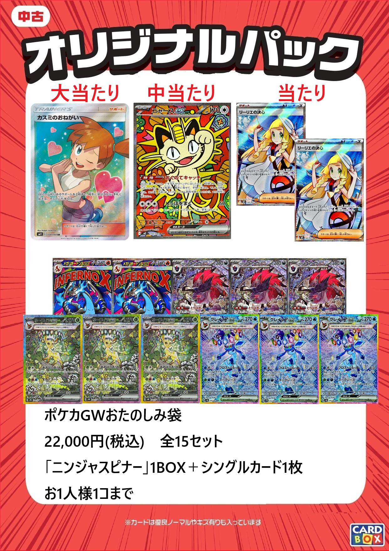 最大12連休のGWを記念してGW第1週にポケカのおたのしみ袋を作りました!