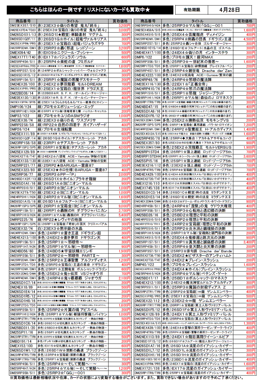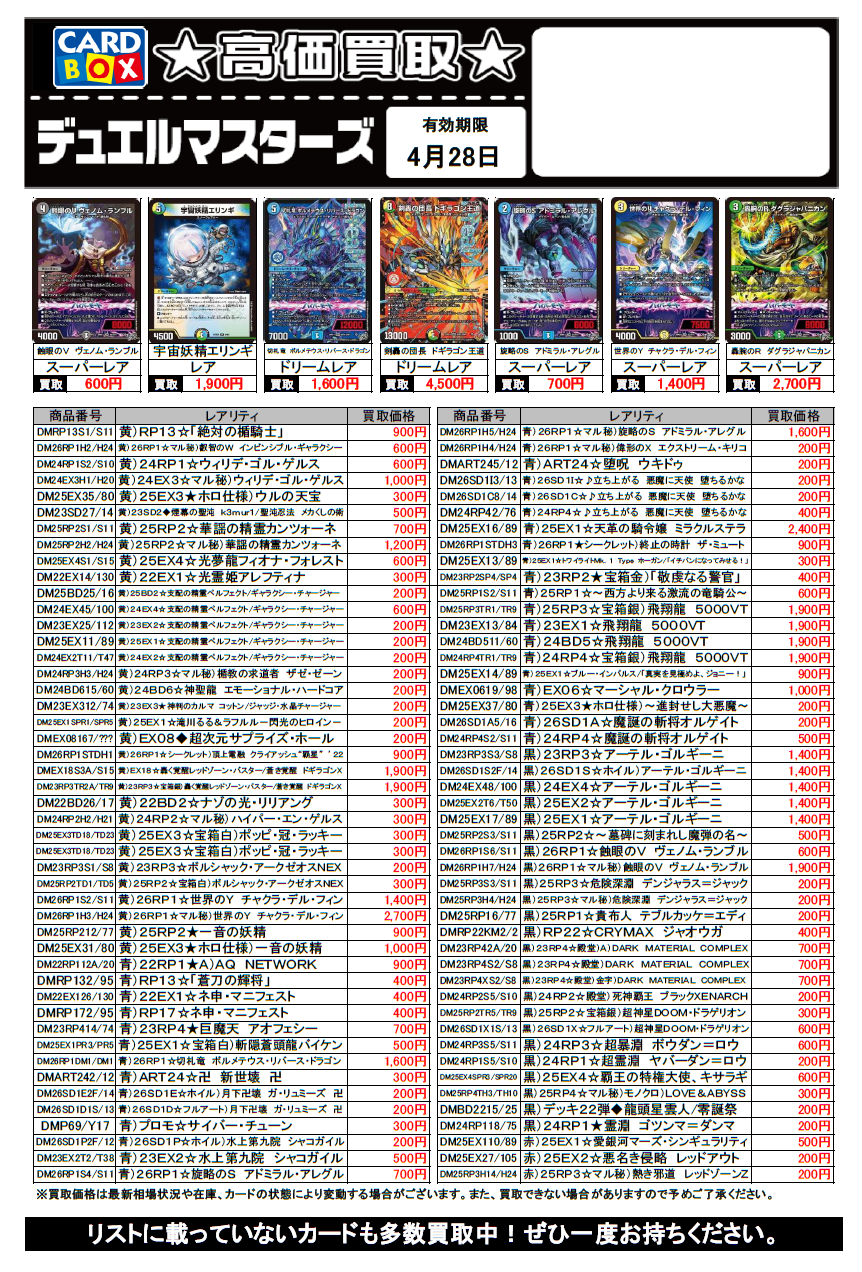 デュエルマスターズ買取チラシ更新(4/28まで)
