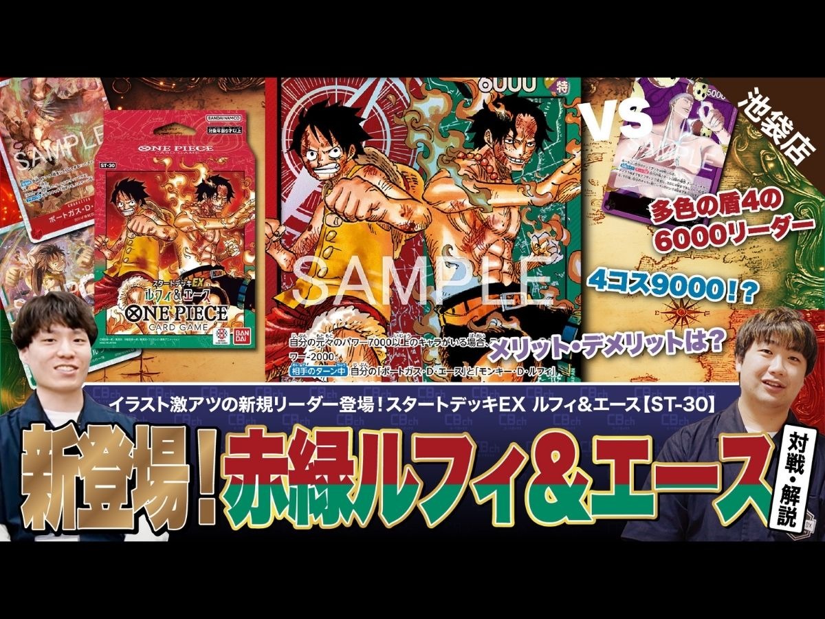 【ワンピースカード】スタートデッキEX発売!激アツイラストの赤緑ルフィ&エースvs紫エネルの対戦・解説!