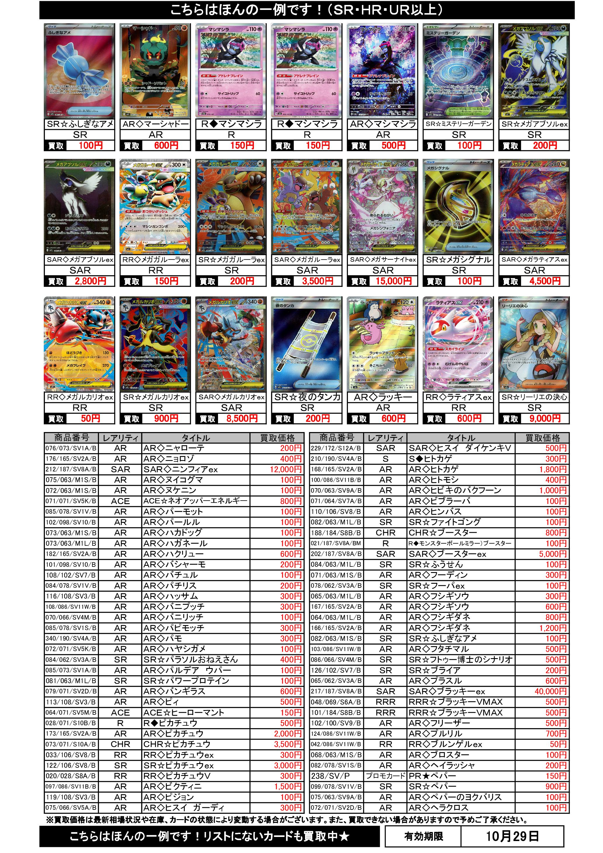 買取価格は最新相場状況や在庫、カードの状態により変動する場合がございます。また、買取できない場合がありますので予めご了承ください。