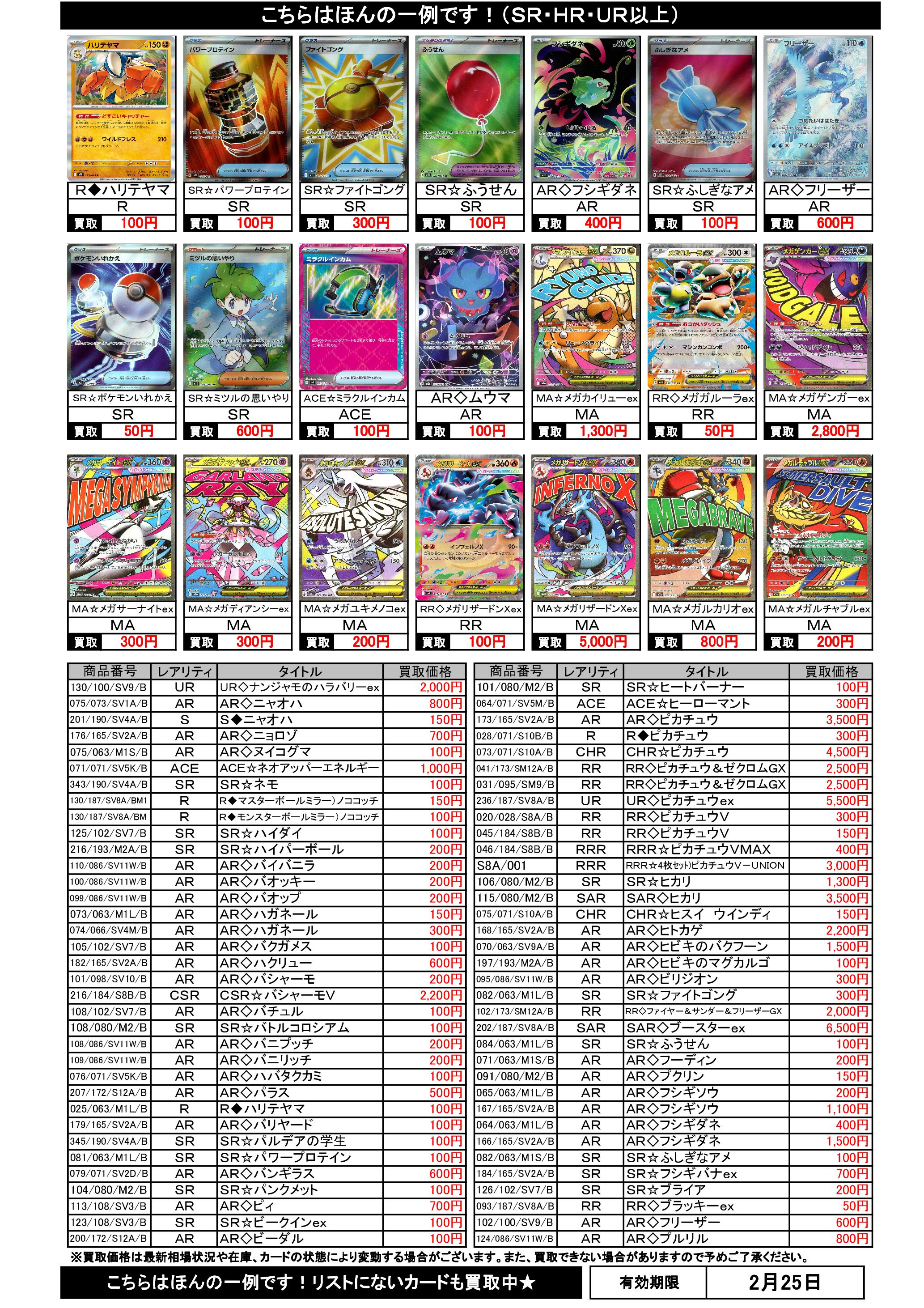 ポケカ買取リスト 2/15まで