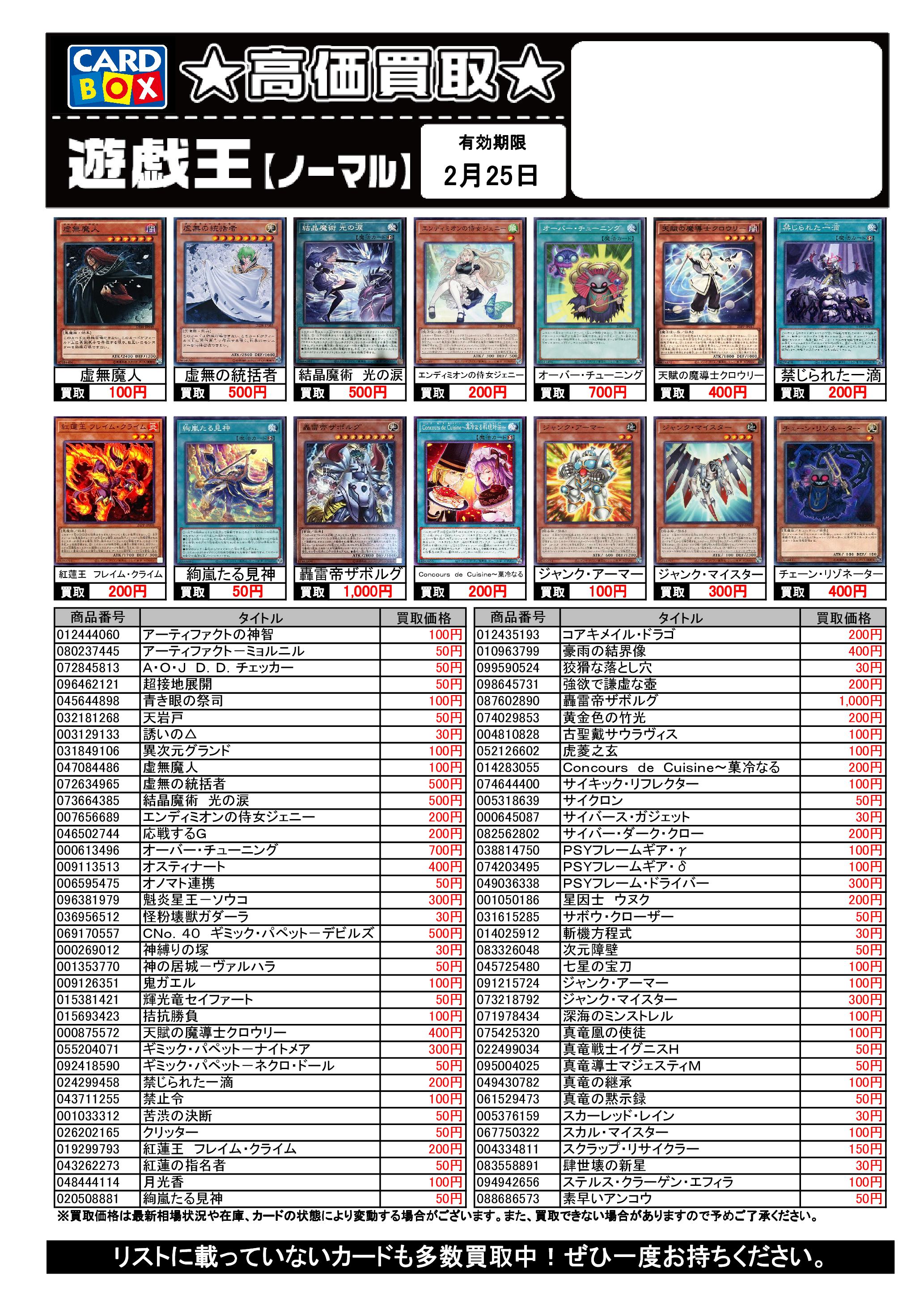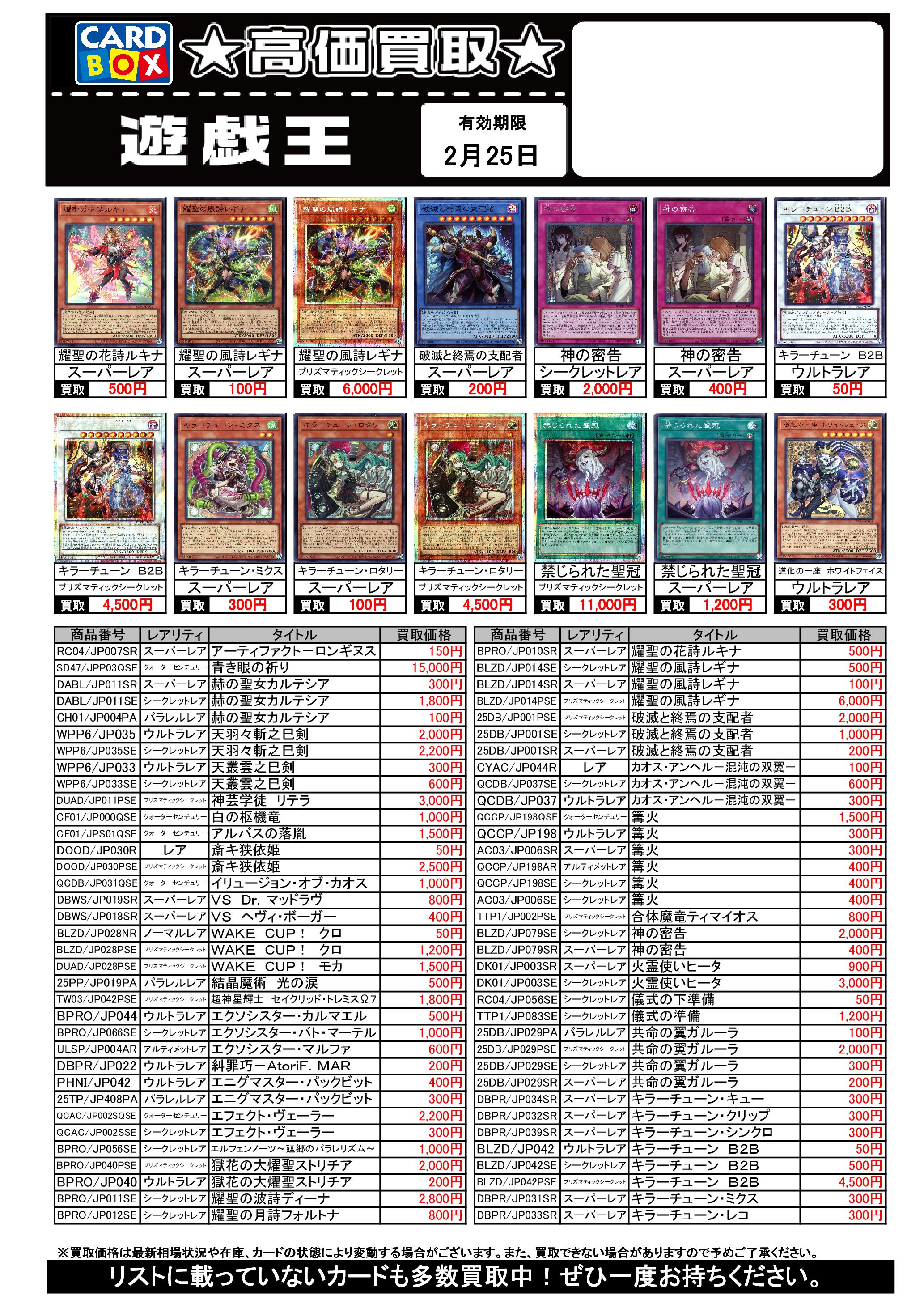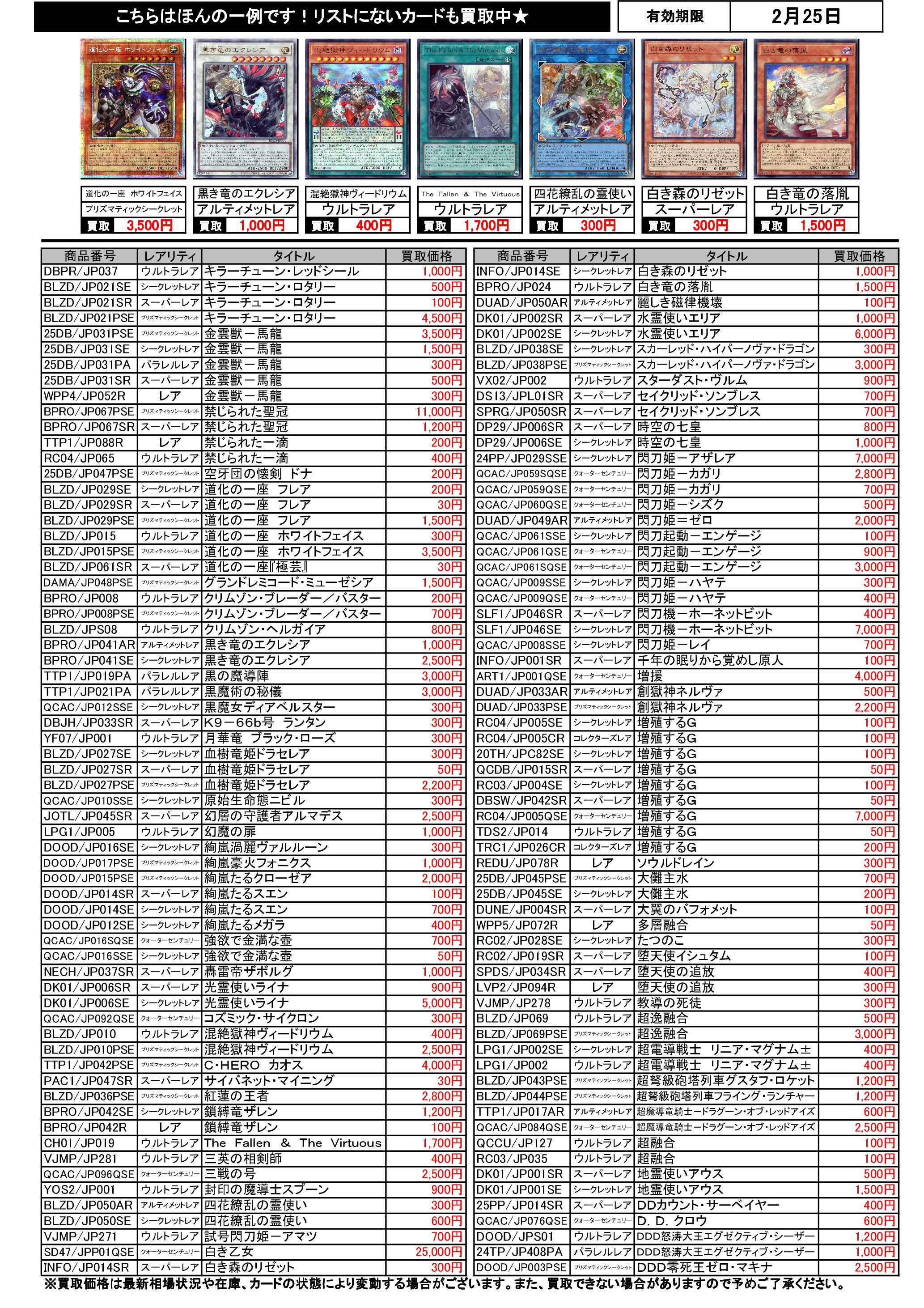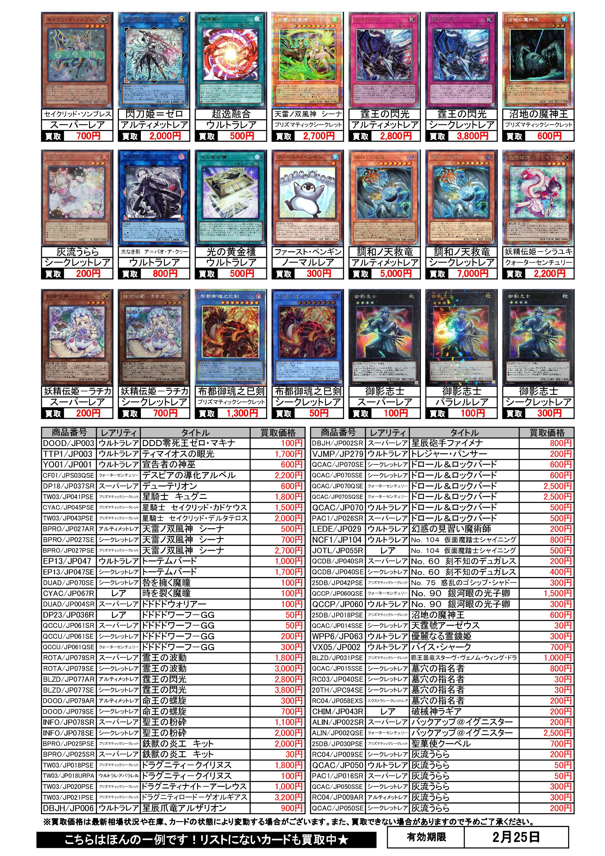 遊戯王買取リスト 2/25まで