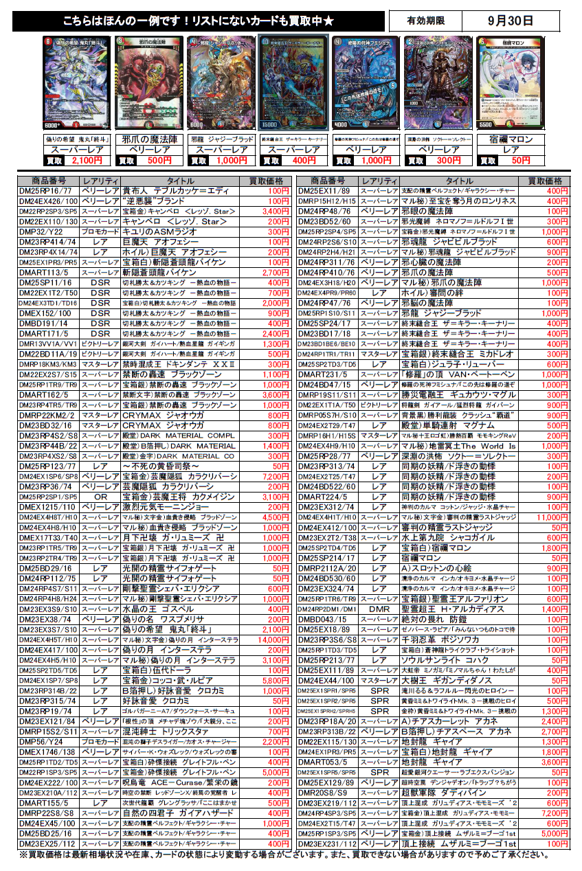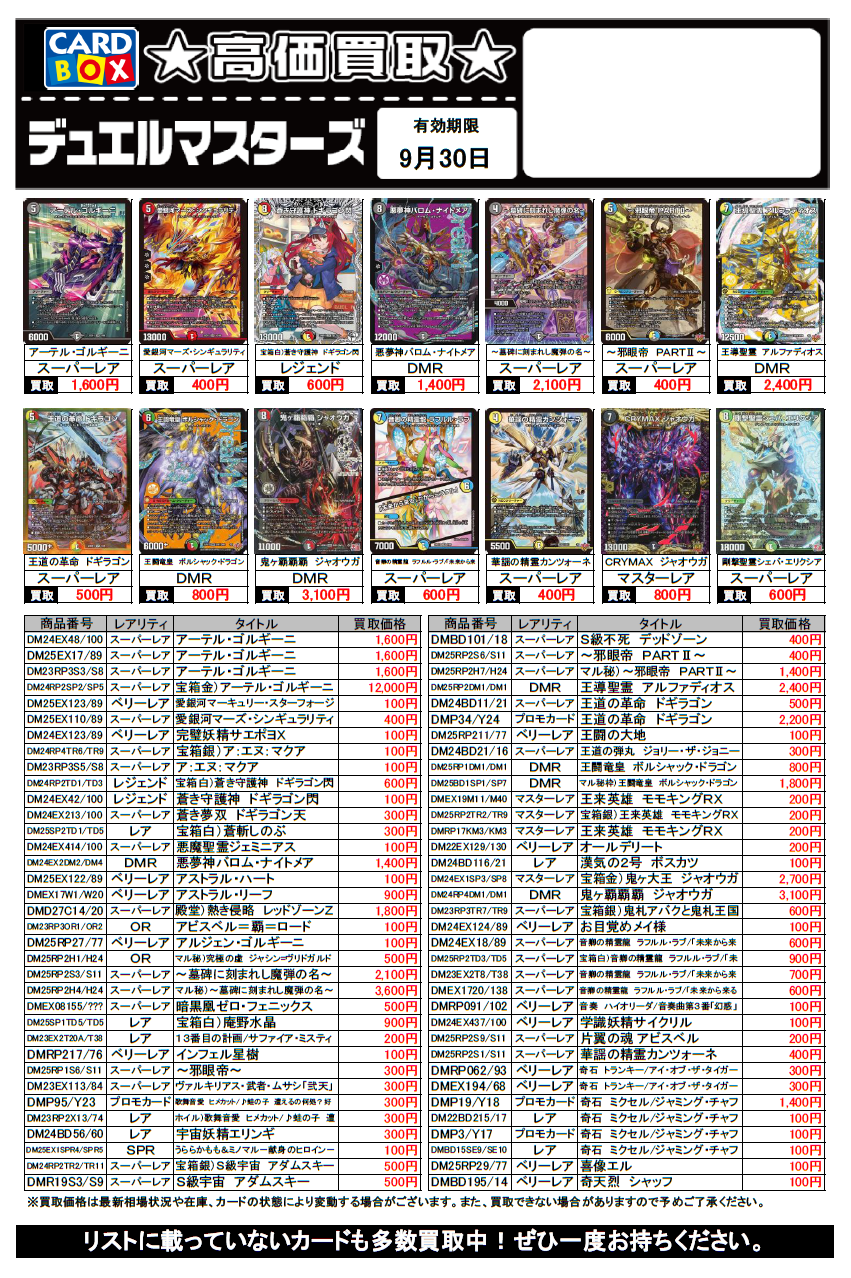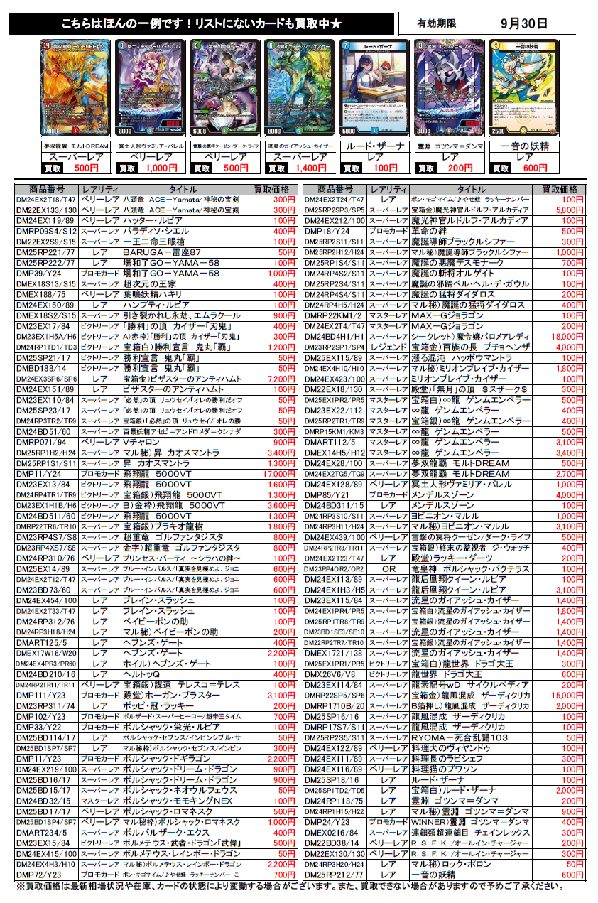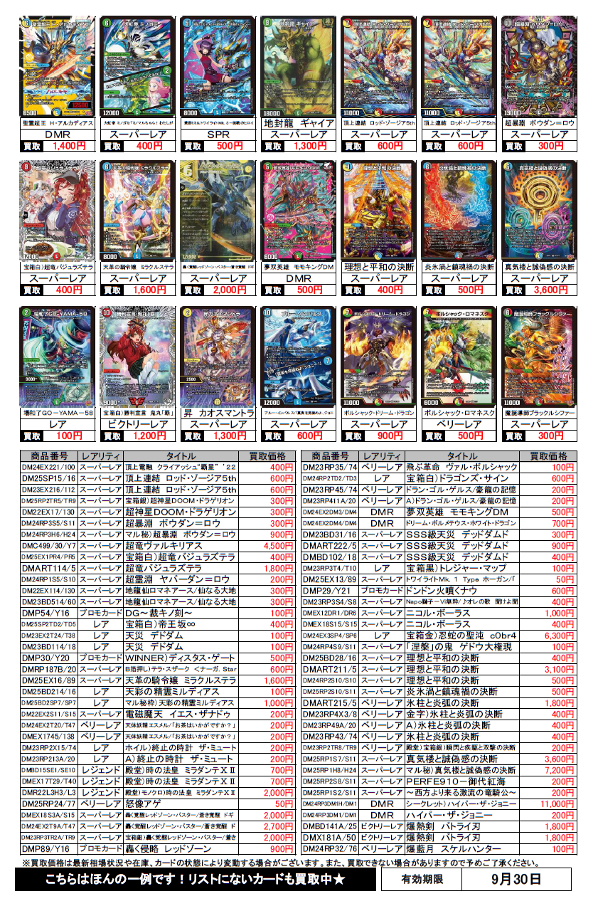 デュエルマスターズ買取チラシ更新(9/30まで)