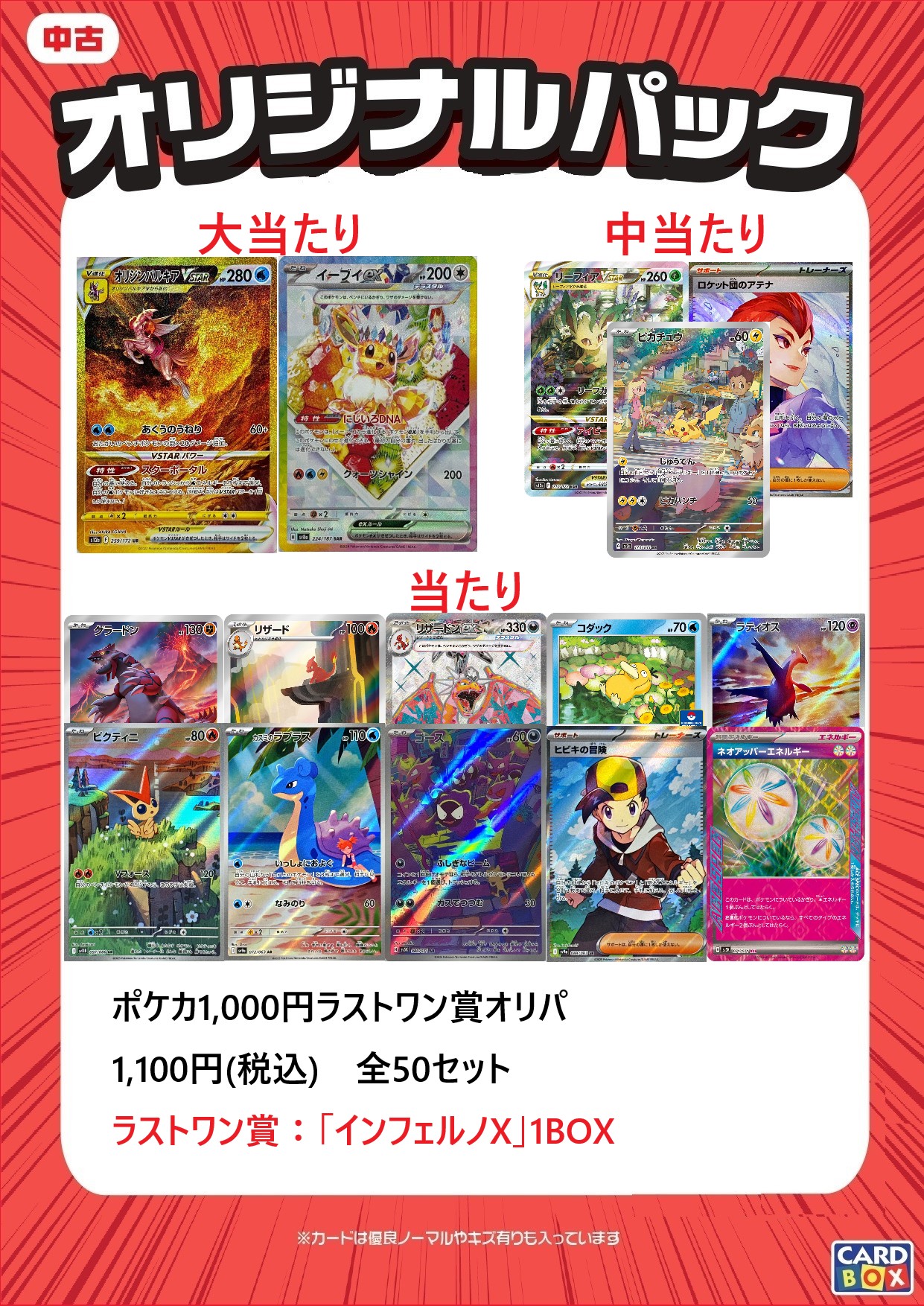 完売しておりましたポケカの1,000円ラストワン賞オリパを新たに補充しました!