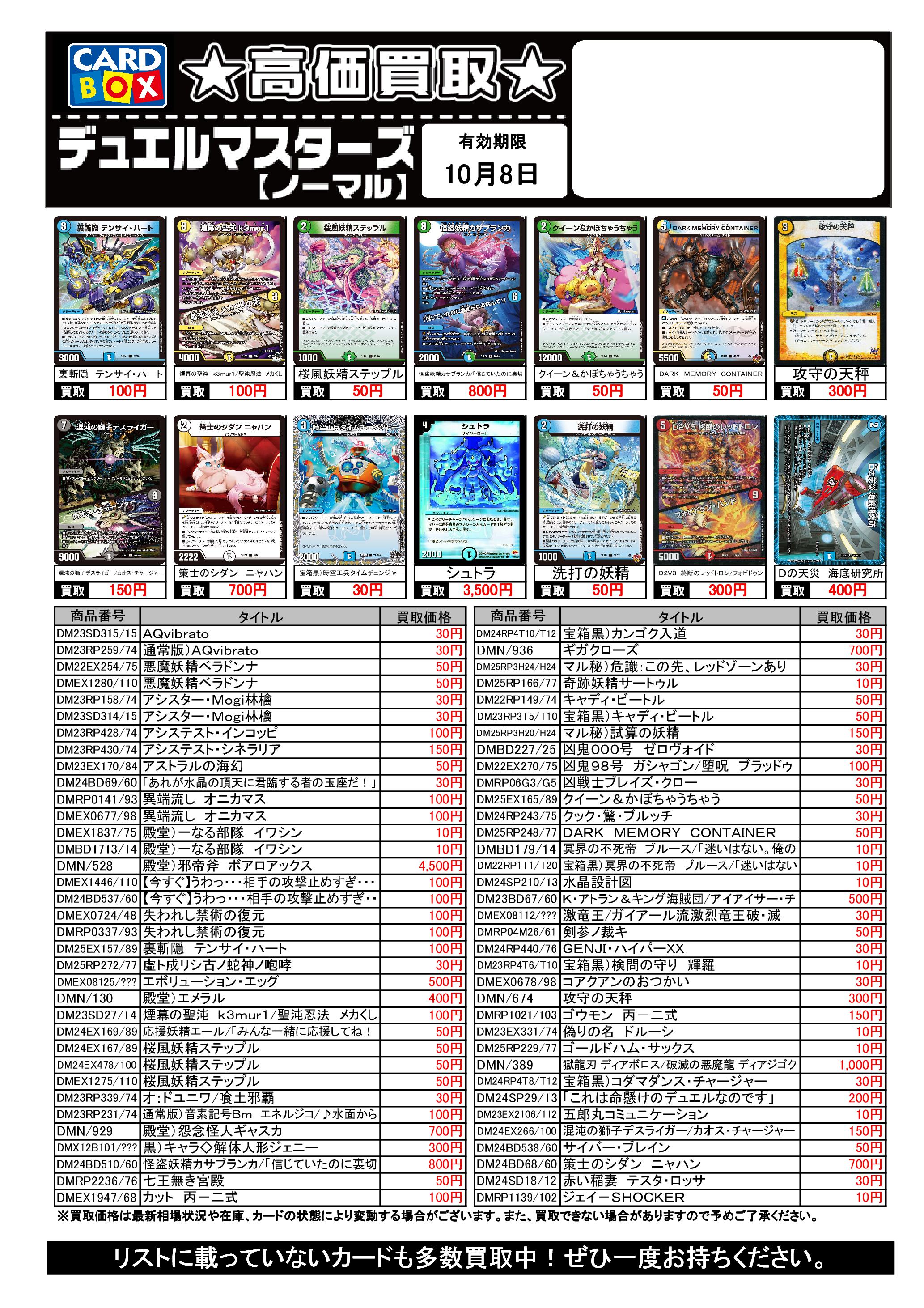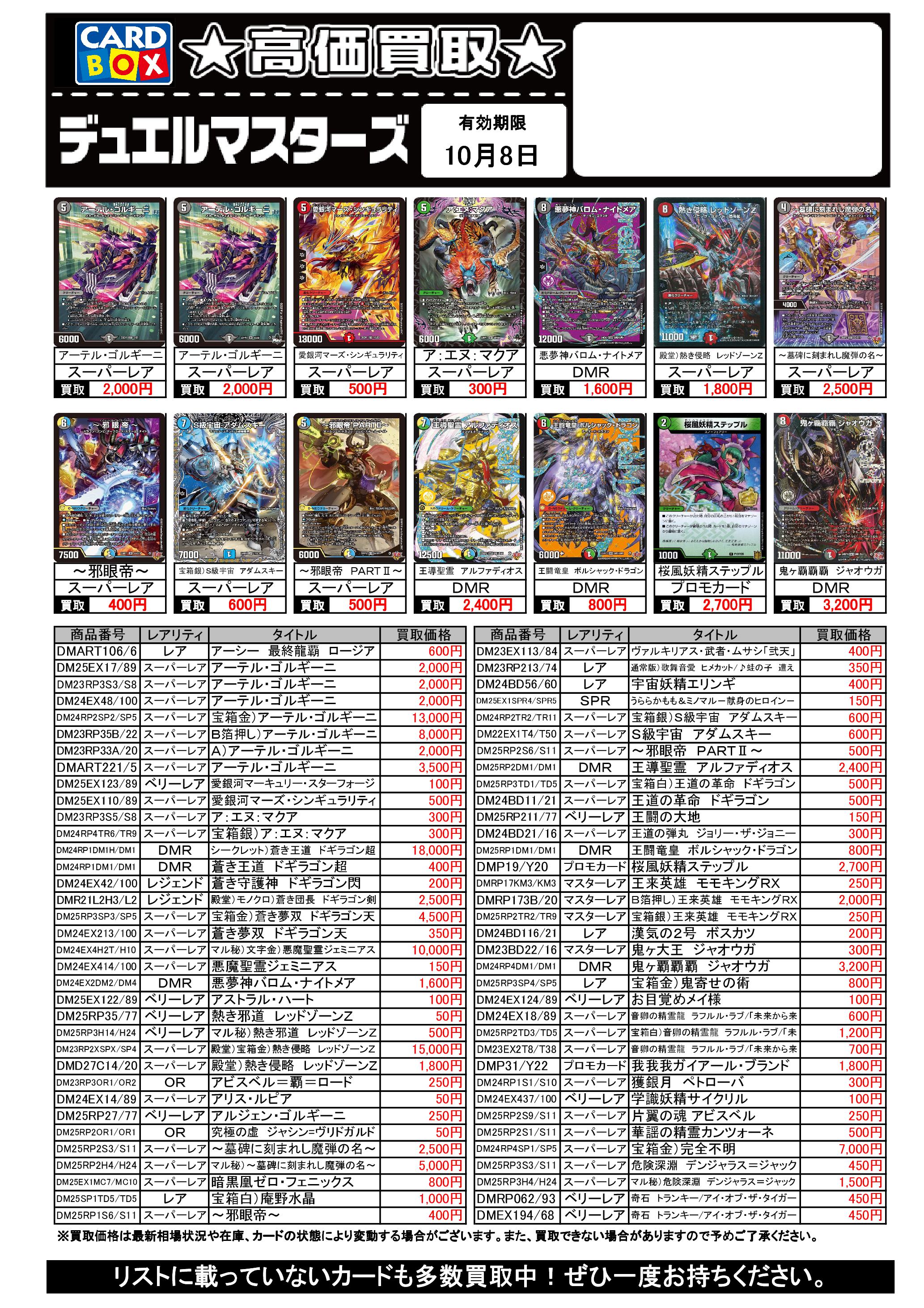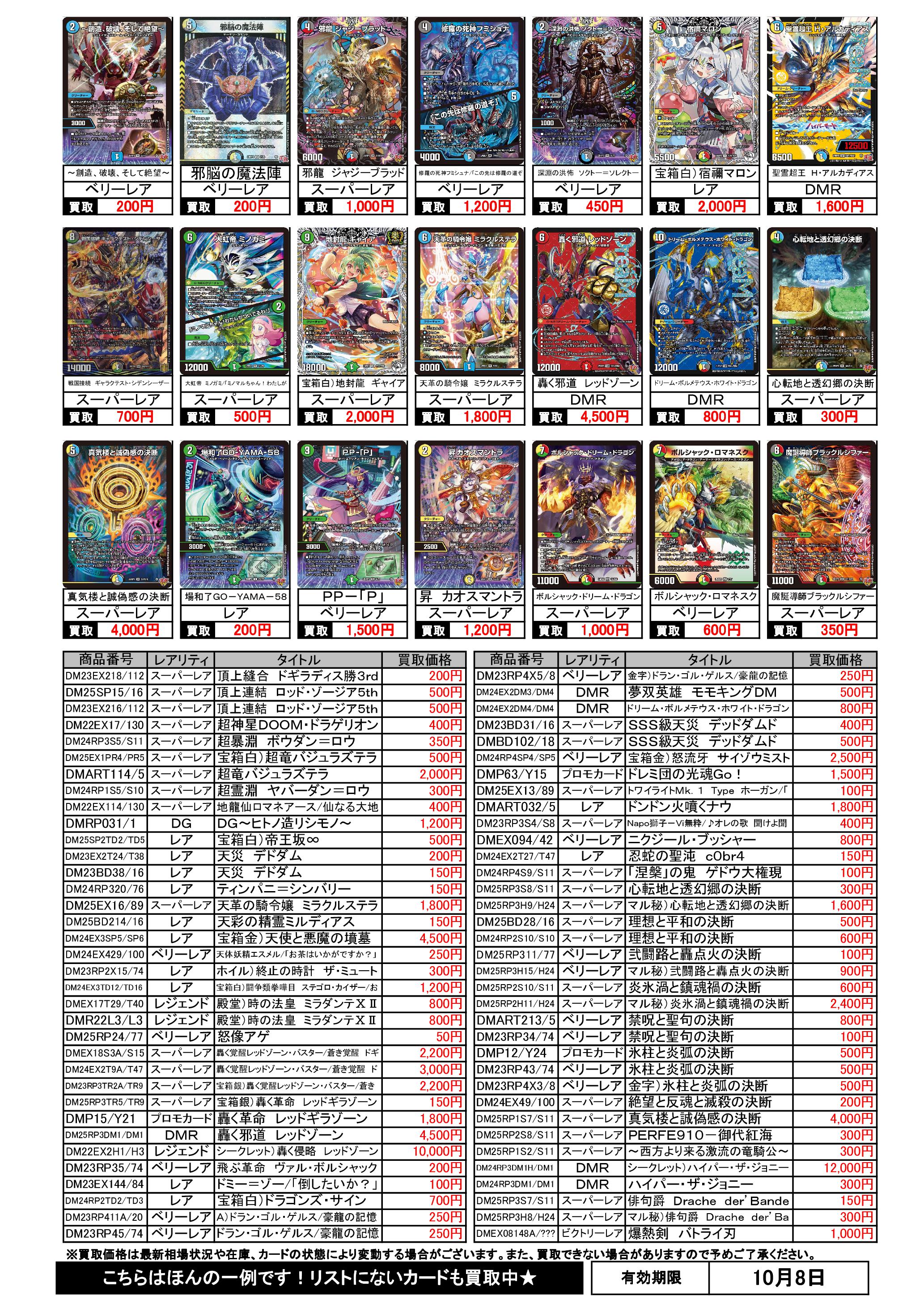 10/2~10/8のデュエマ買取表です
