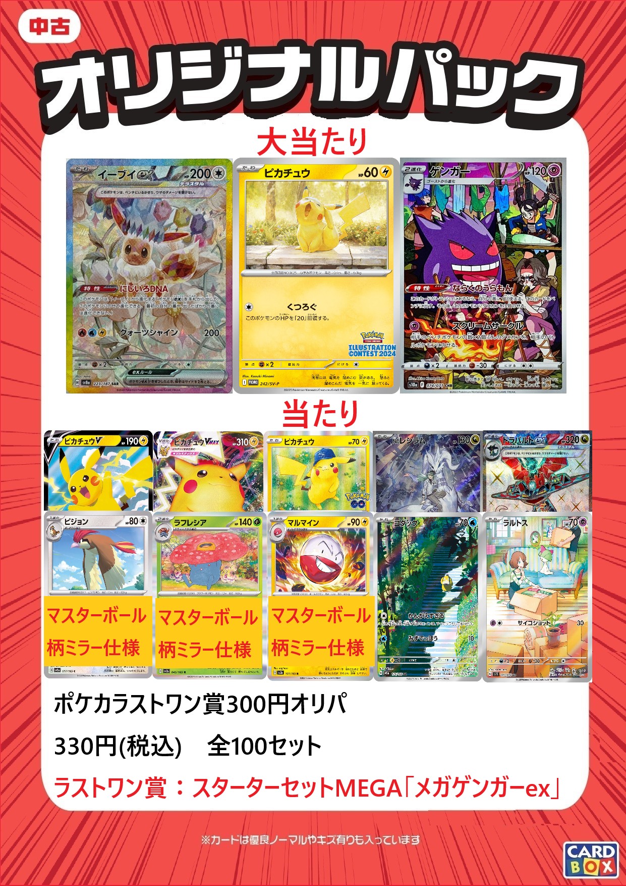 完売しておりましたポケカのラストワン賞300円オリパを補充しました。