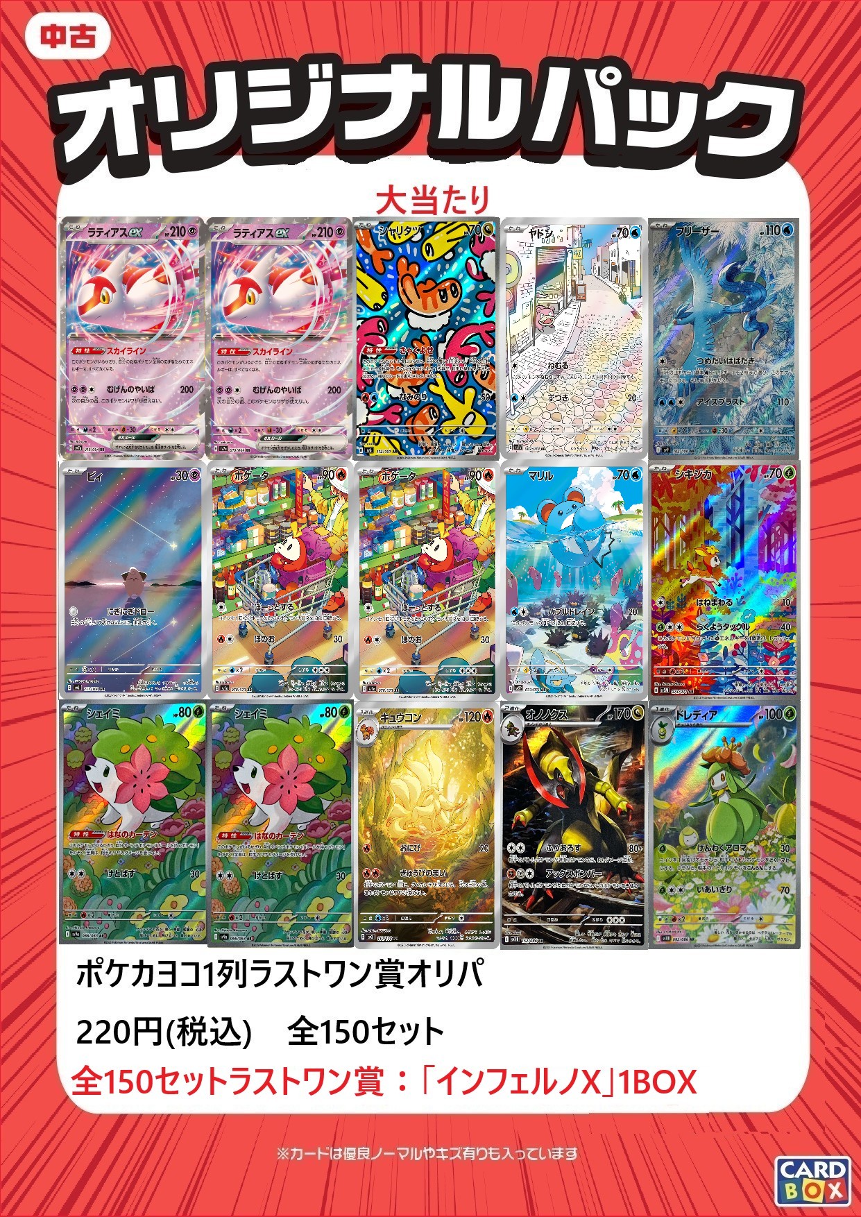 大変好評なポケカのヨコ一列ごとにラストワン賞があるヨコ1列オリパを補充しました!