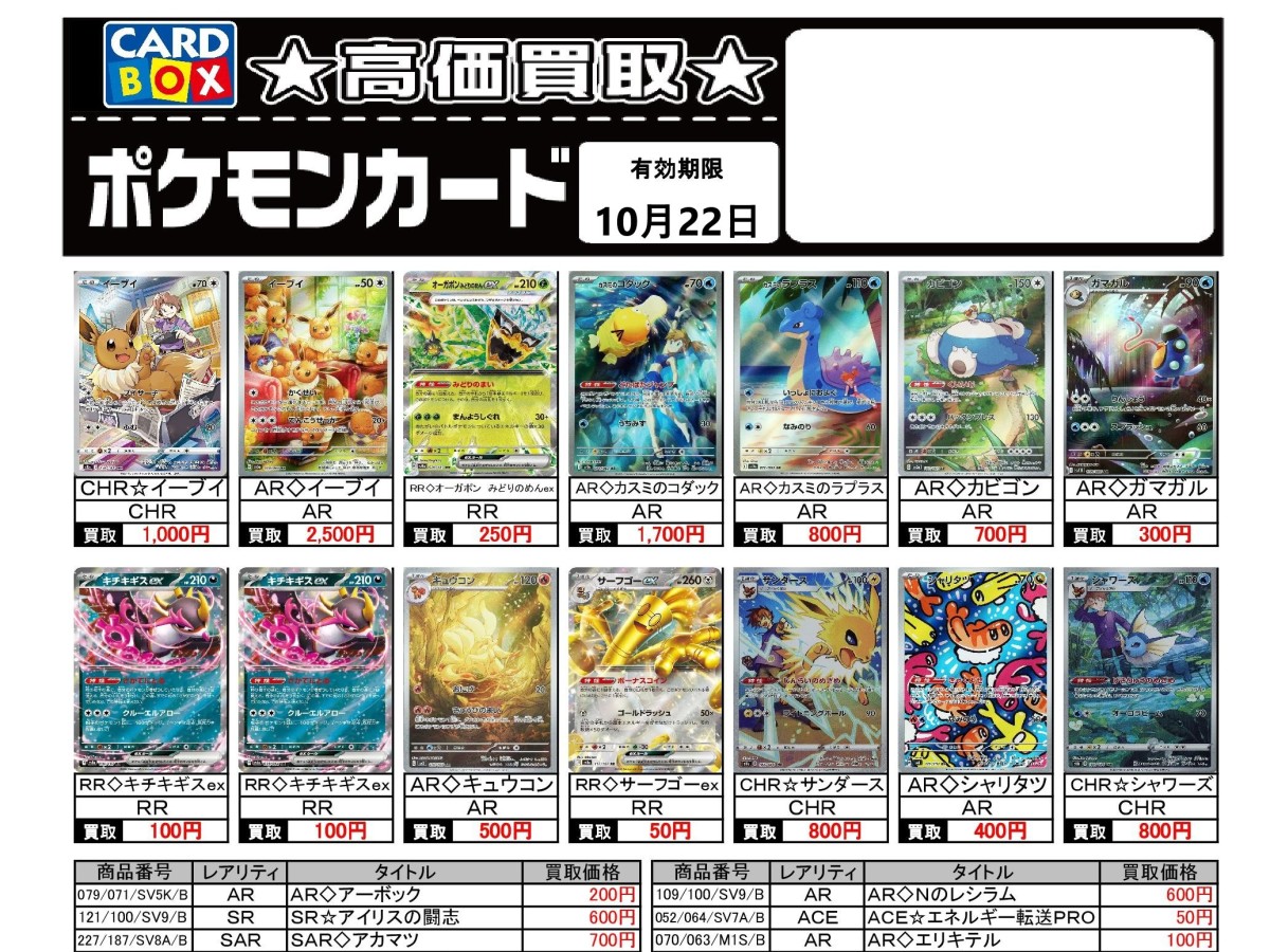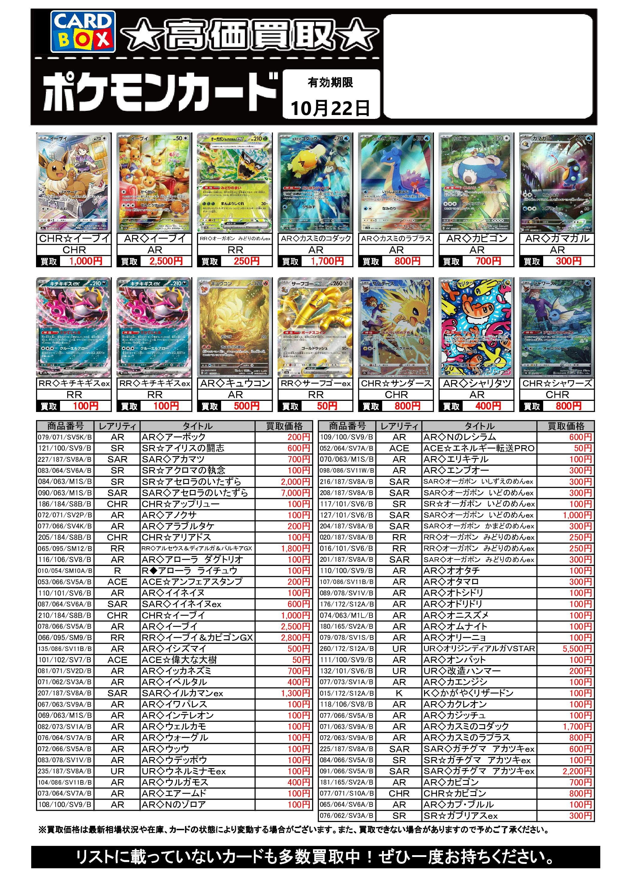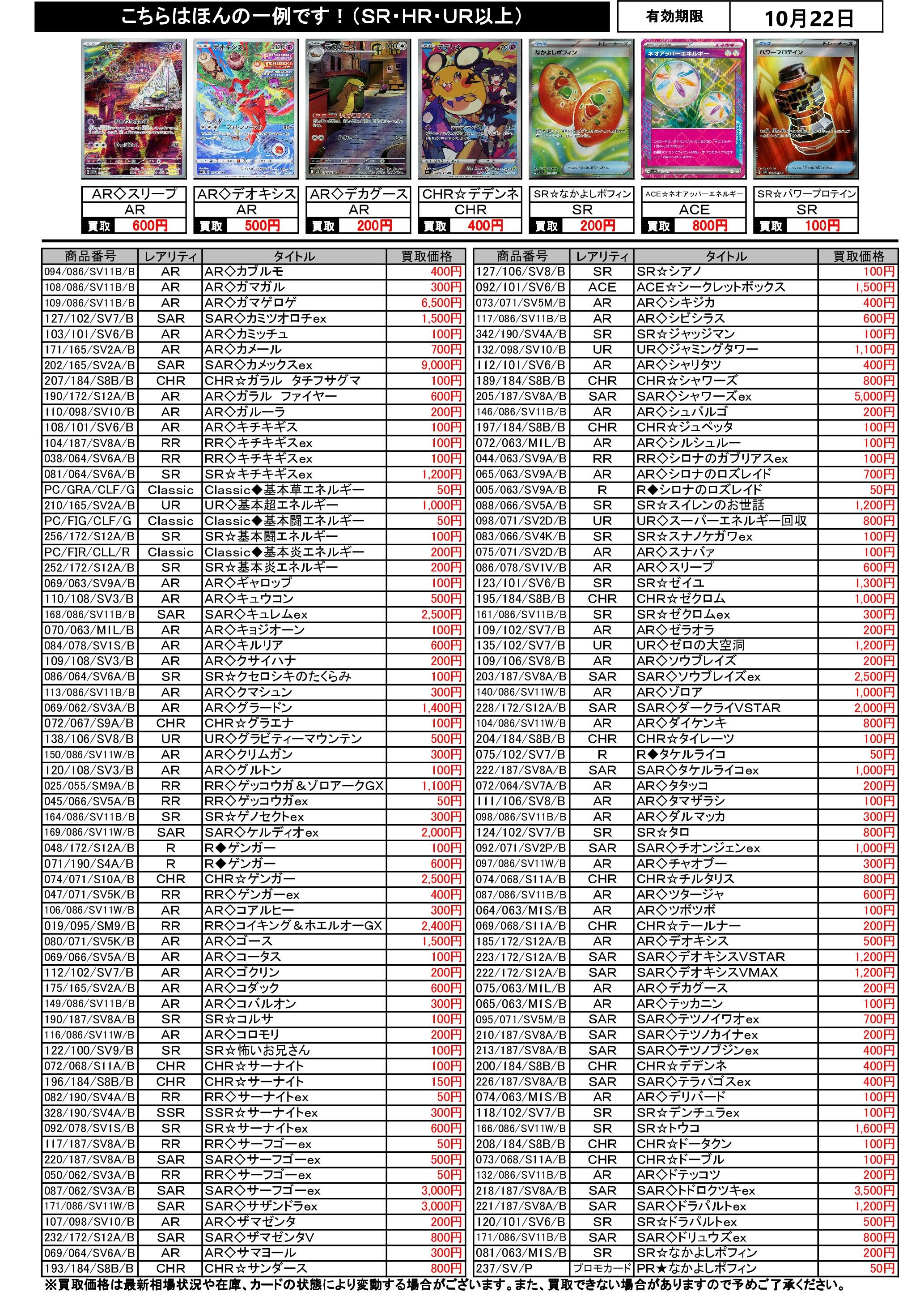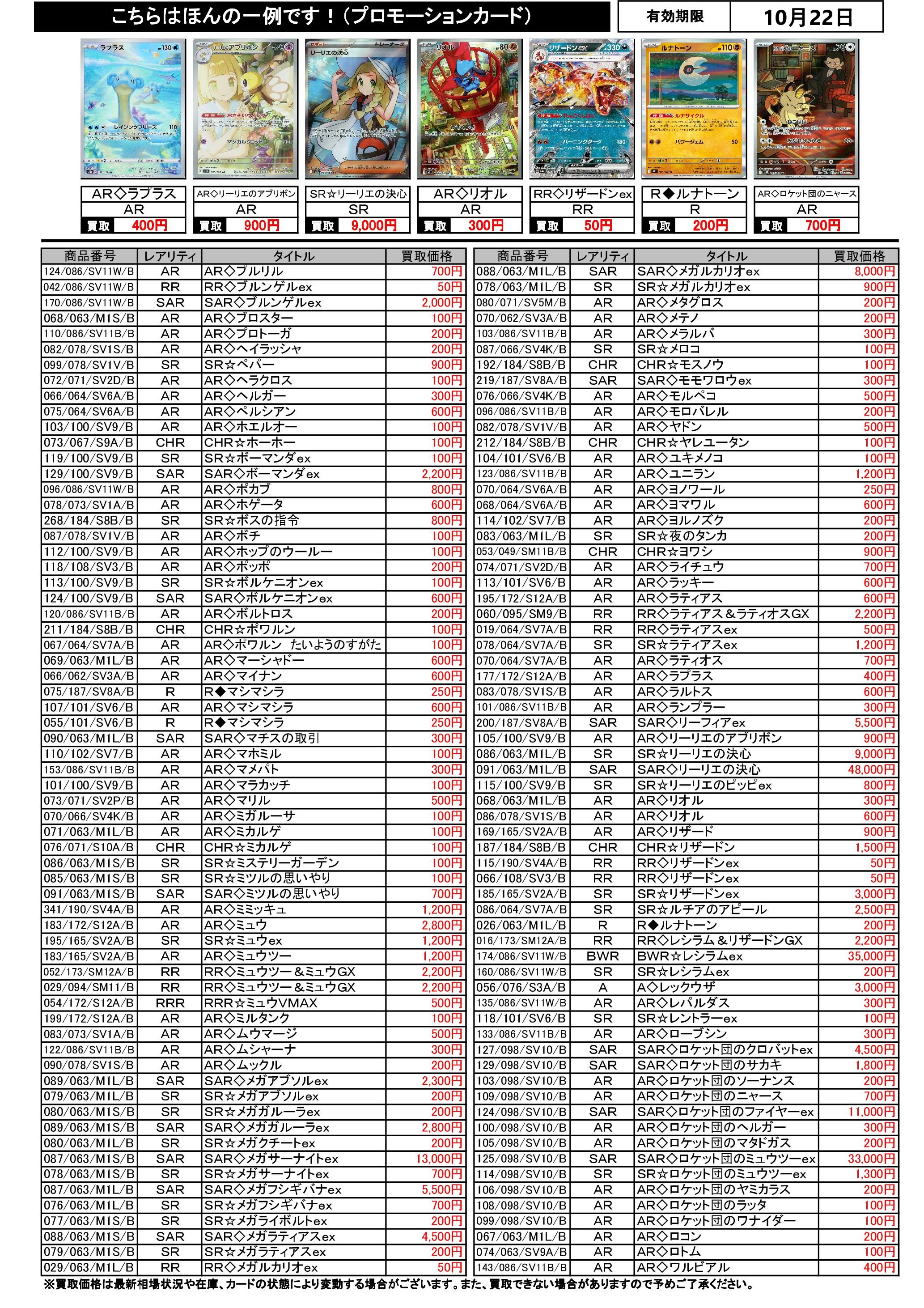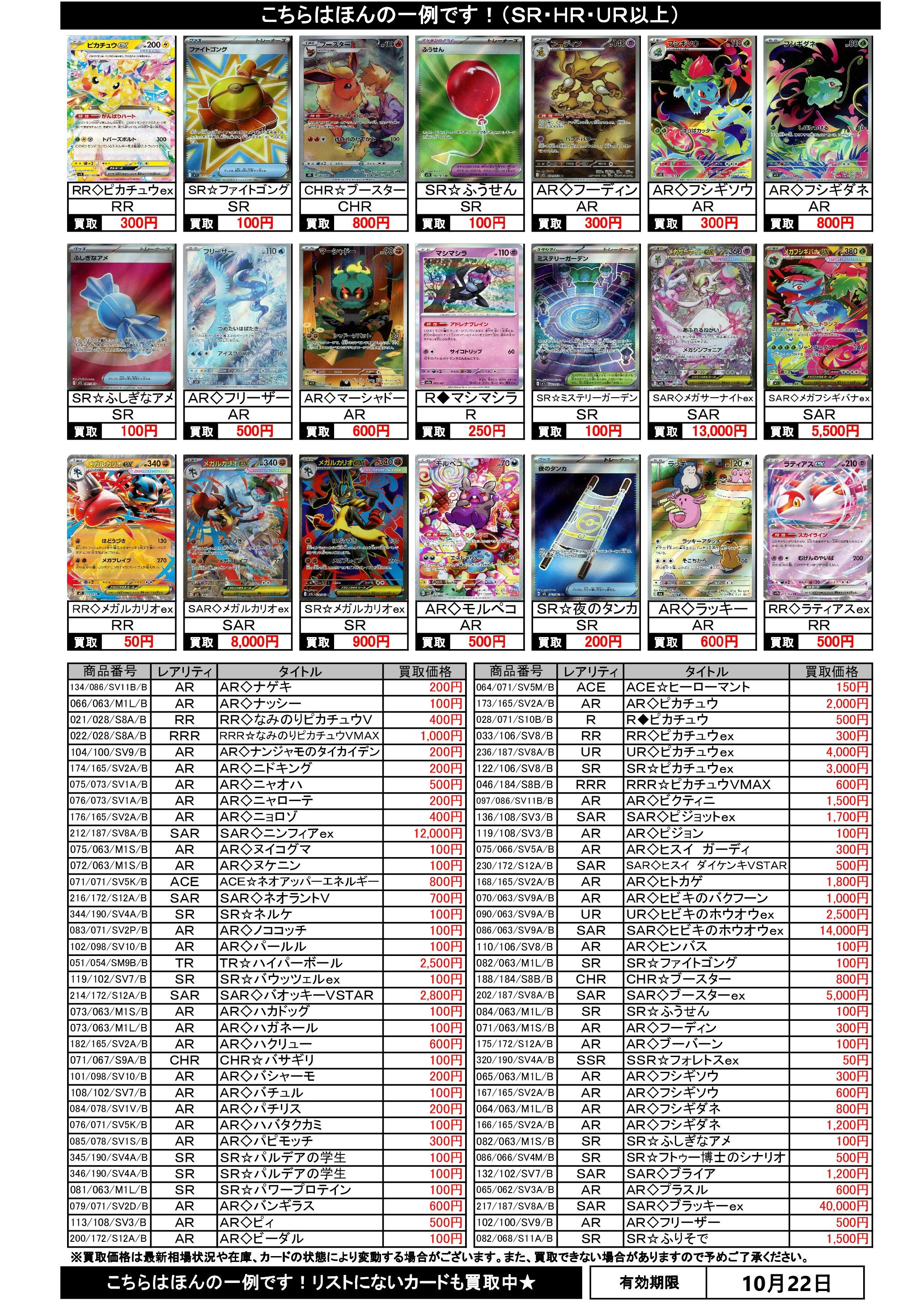 10/16~10/22のポケカ買取表です